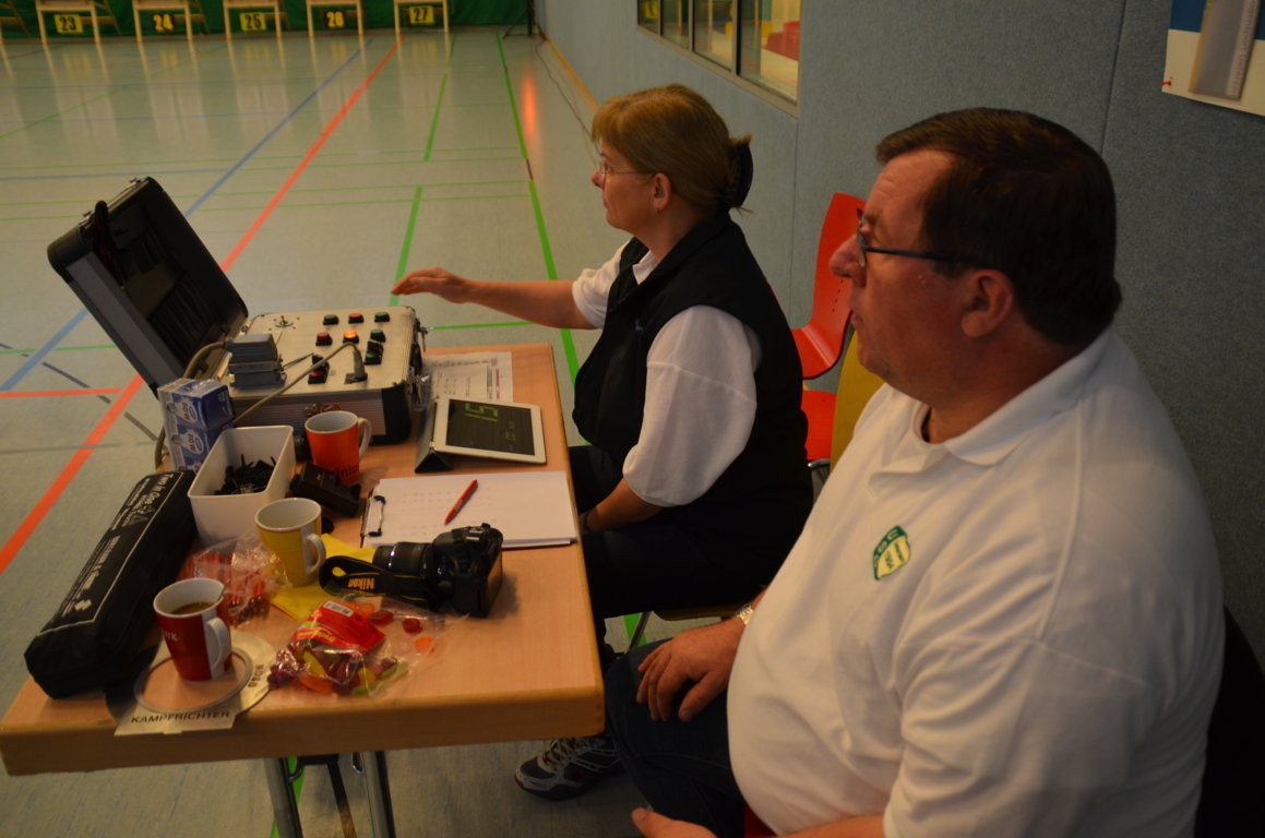 Schon kurz nach 8 Uhr trafen die ersten Schützen in der Halle ein. Man orientierte sich, für welche Scheibe man eingeteilt war und die Startnummern wurden abgeholt.