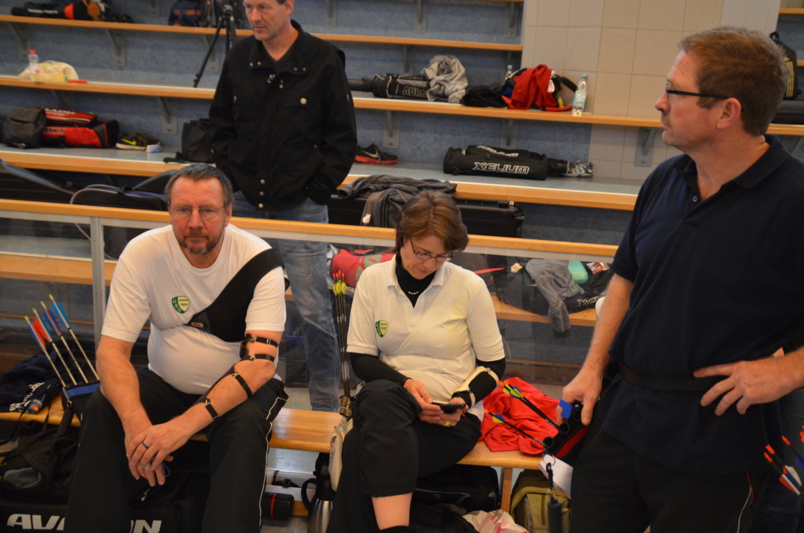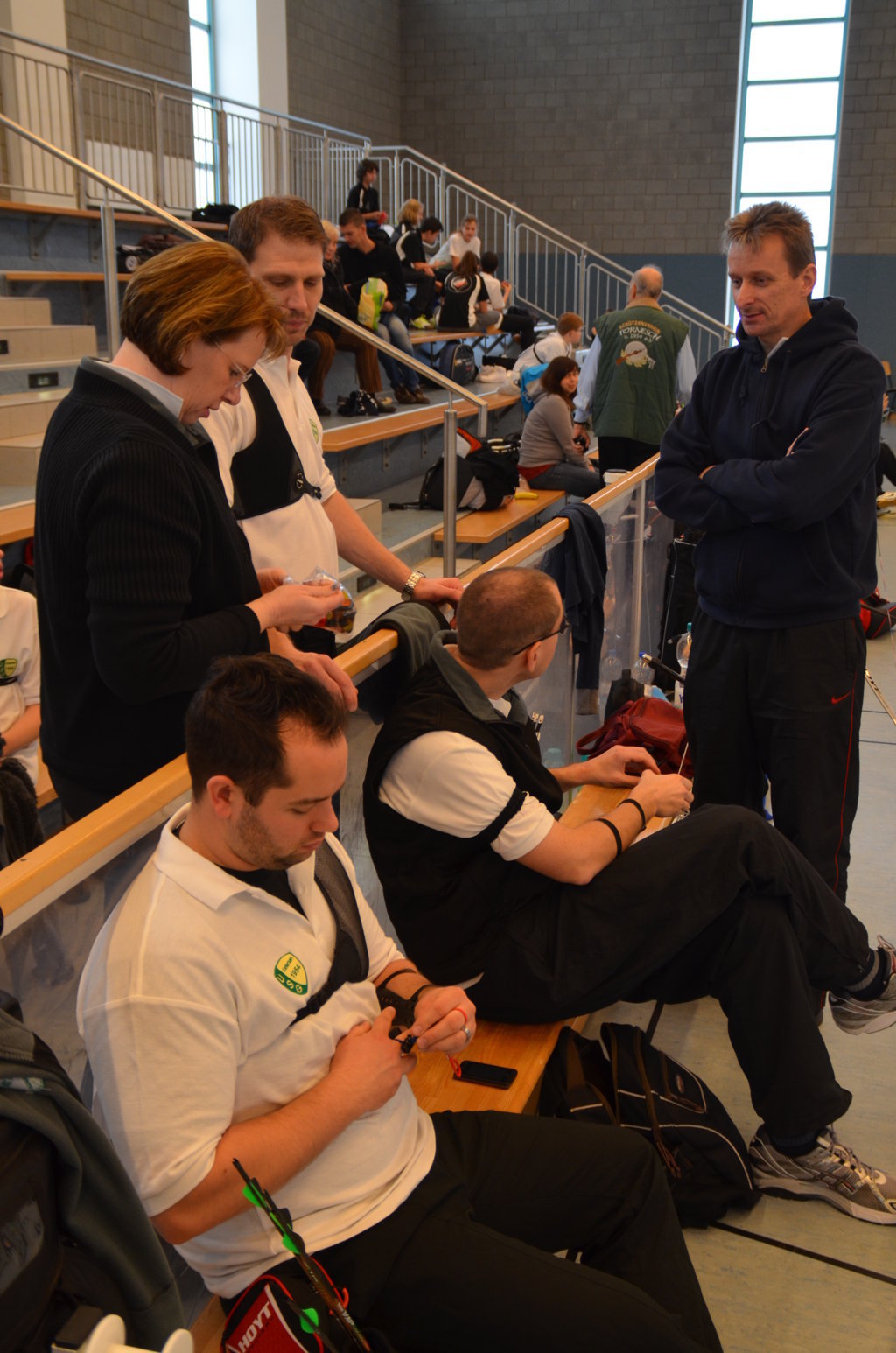 Zu gleicher Zeit wertete das Team um den Kreisbogenreferenten die Ergebnisse des ersten Durchganges aus. Die Schützen selber vertrieben sich die Zeit auf recht unterschiedliche Art und Weise bis zum Fortgang des Wettbewerbes ...