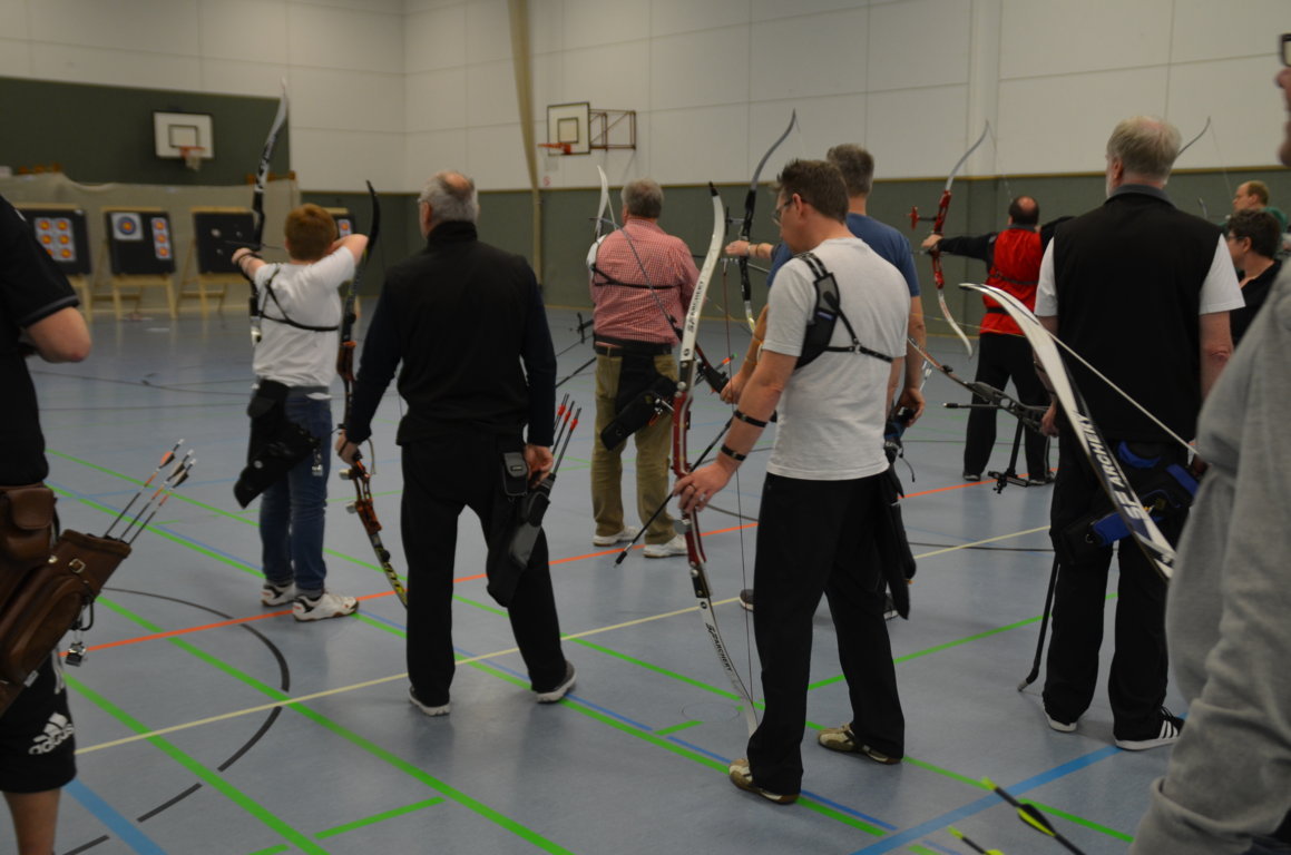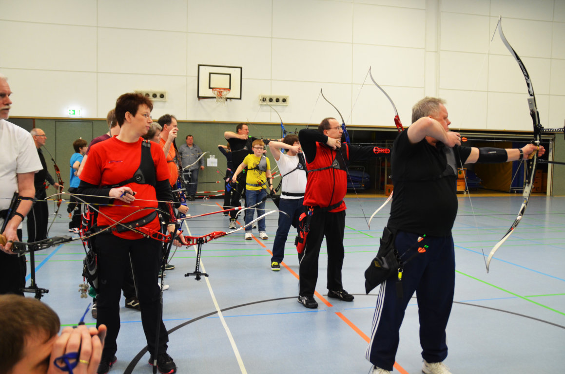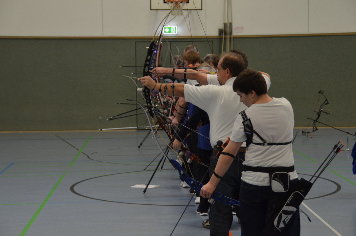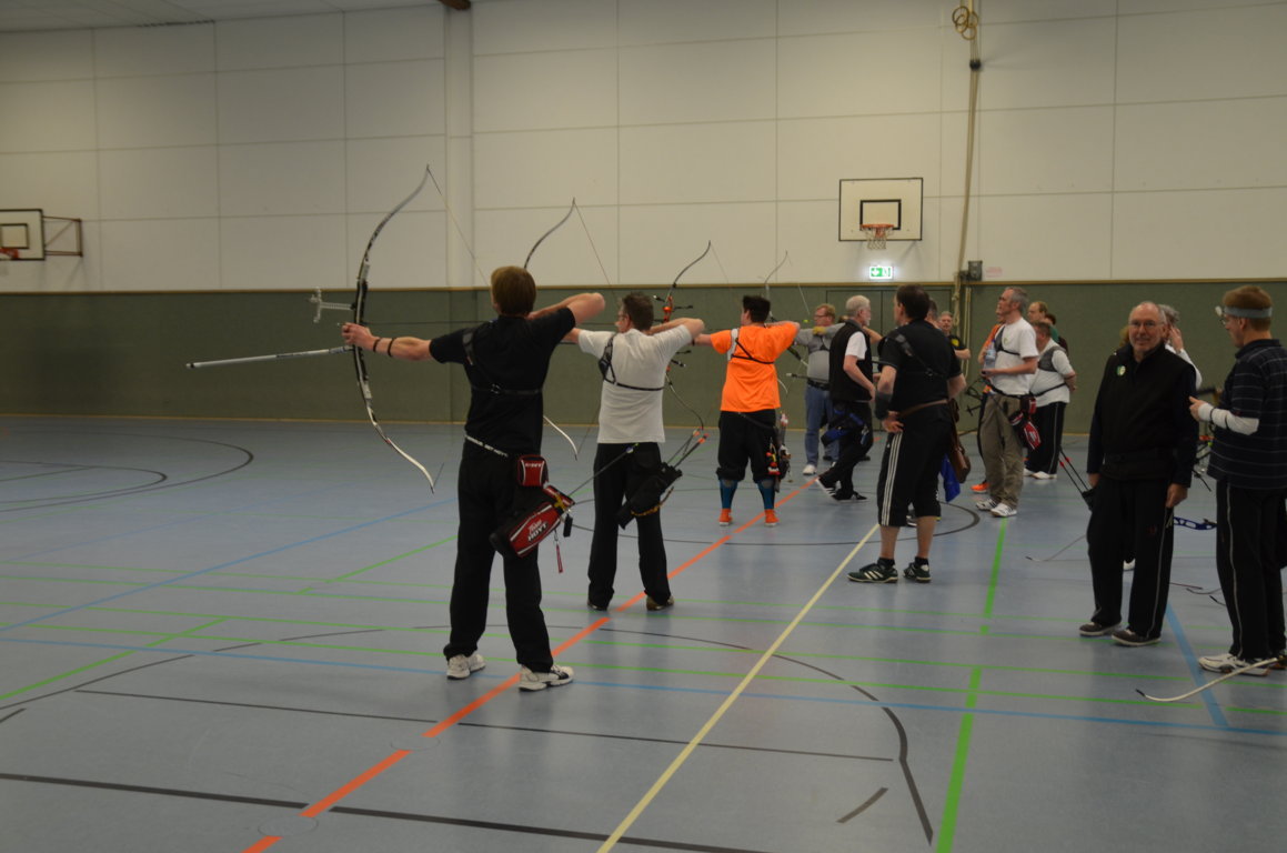 Schön zu erkennen ist hier, wie die zweiten und dritten Schützen schon bereit stehen, denn es darf keine Sekunde verschenkt werden, um mit der nötigen Ruhe seine Pfeile schiessen zu können.