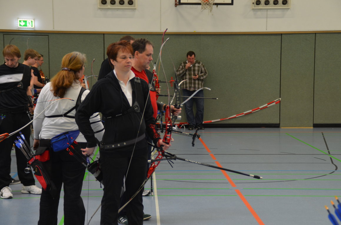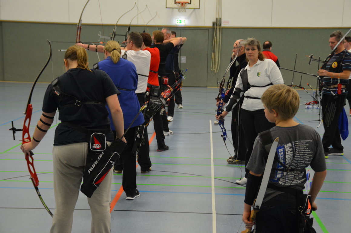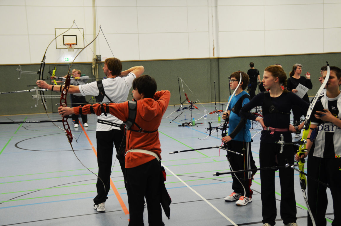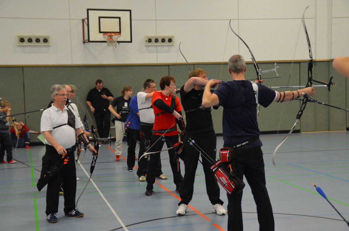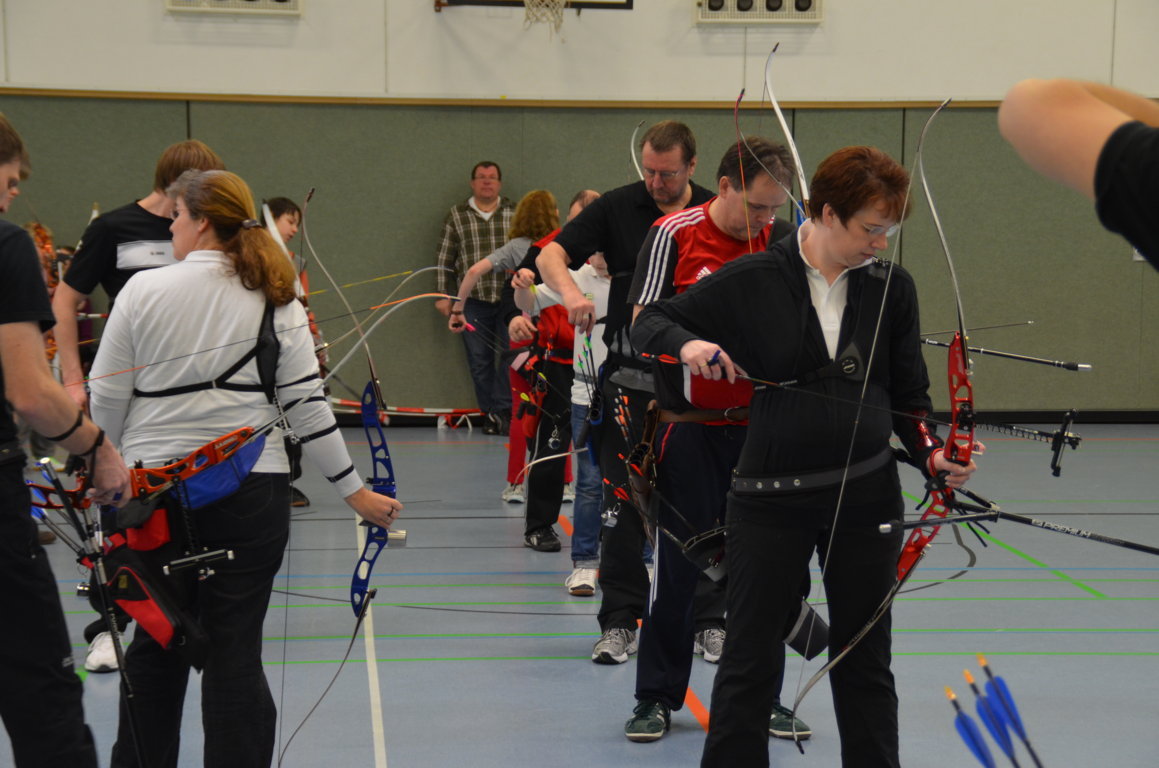 Schön zu erkennen ist hier, wie die zweiten und dritten Schützen schon bereit stehen, denn es darf keine Sekunde verschenkt werden, um mit der nötigen Ruhe seine Pfeile schiessen zu können.