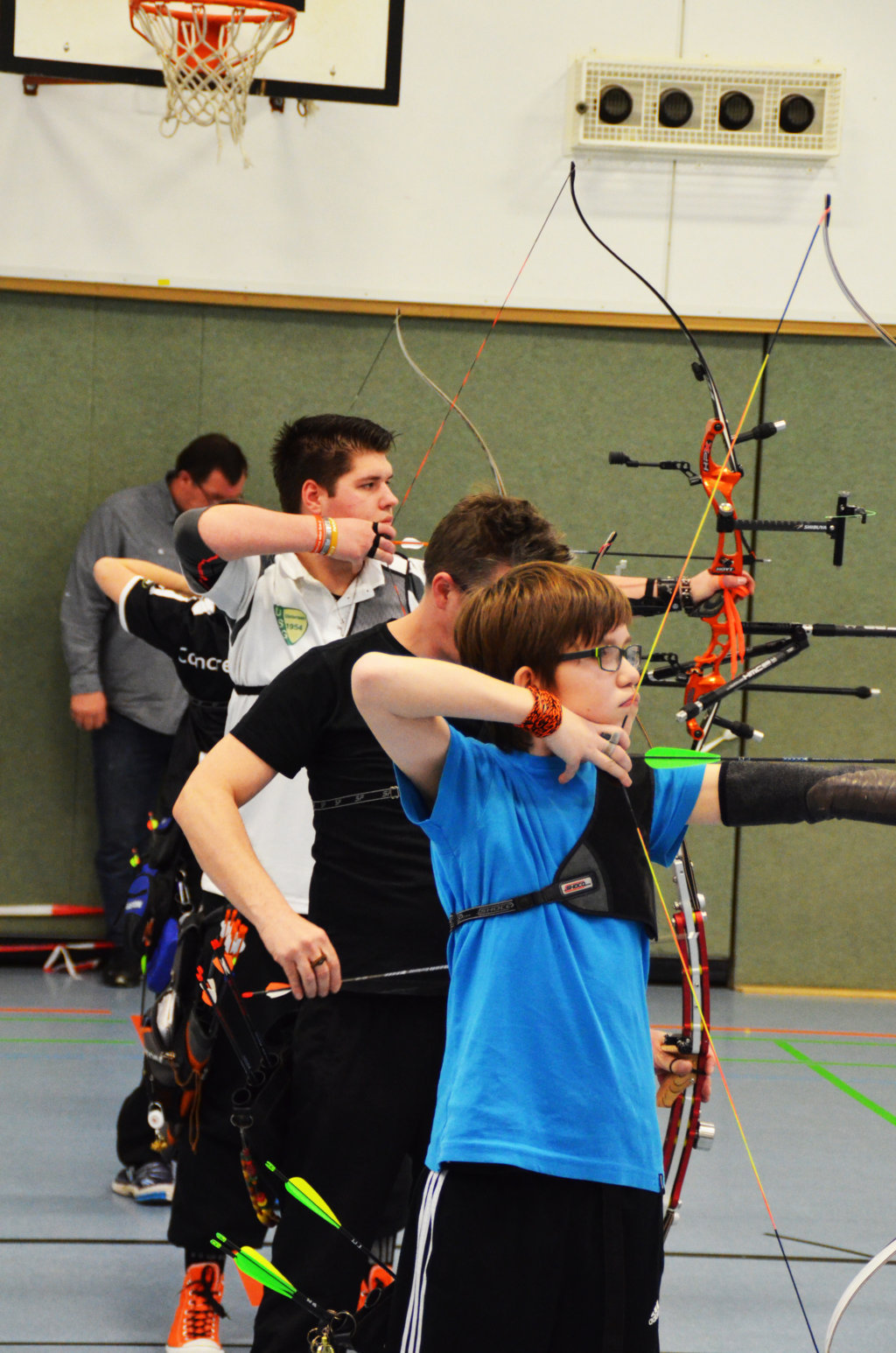 | Mannschaft 4 bis 6: Recurveschützen, 18 m Distanz, 3er-Spot |