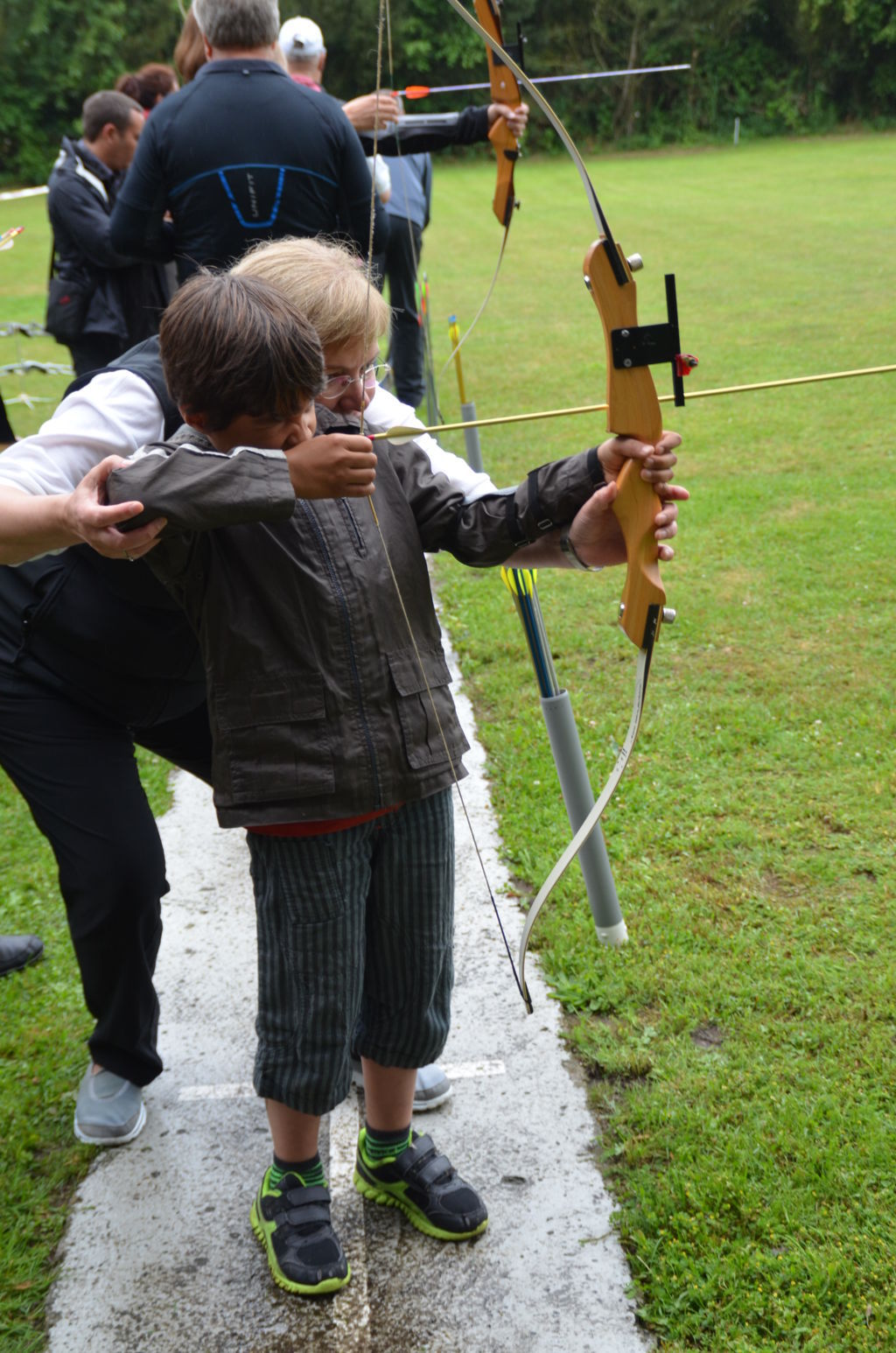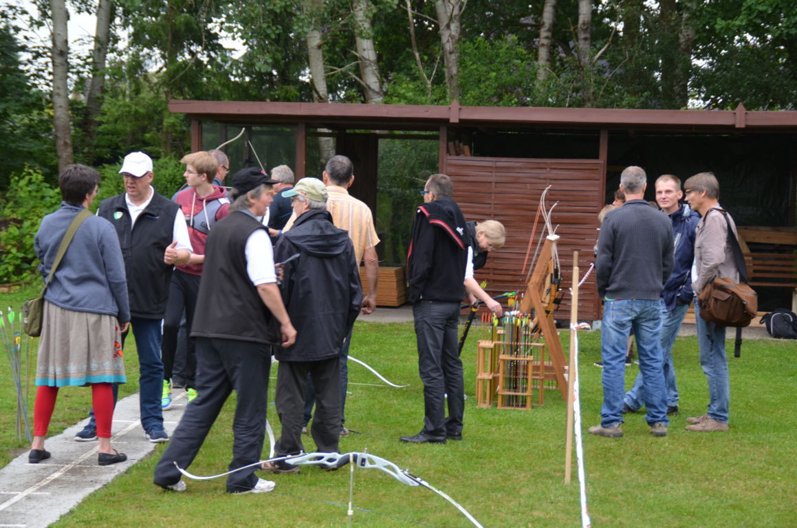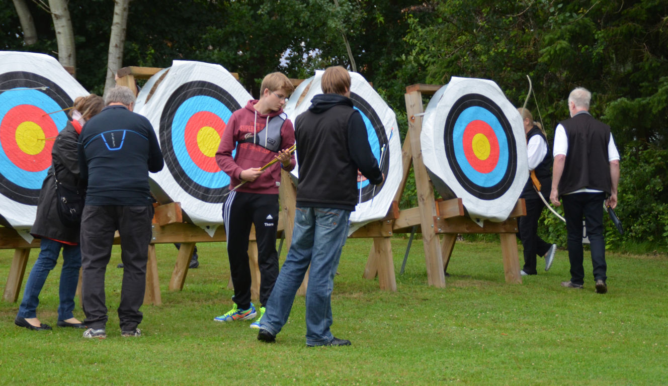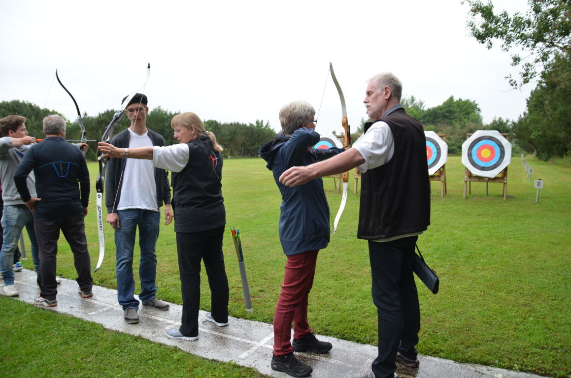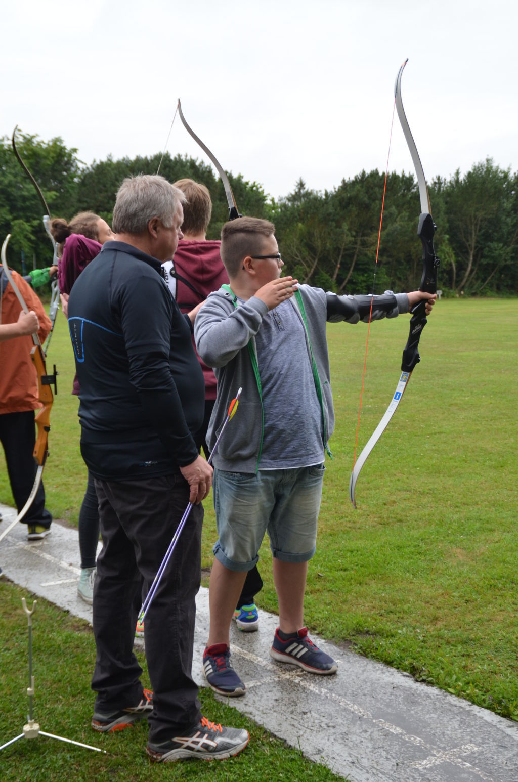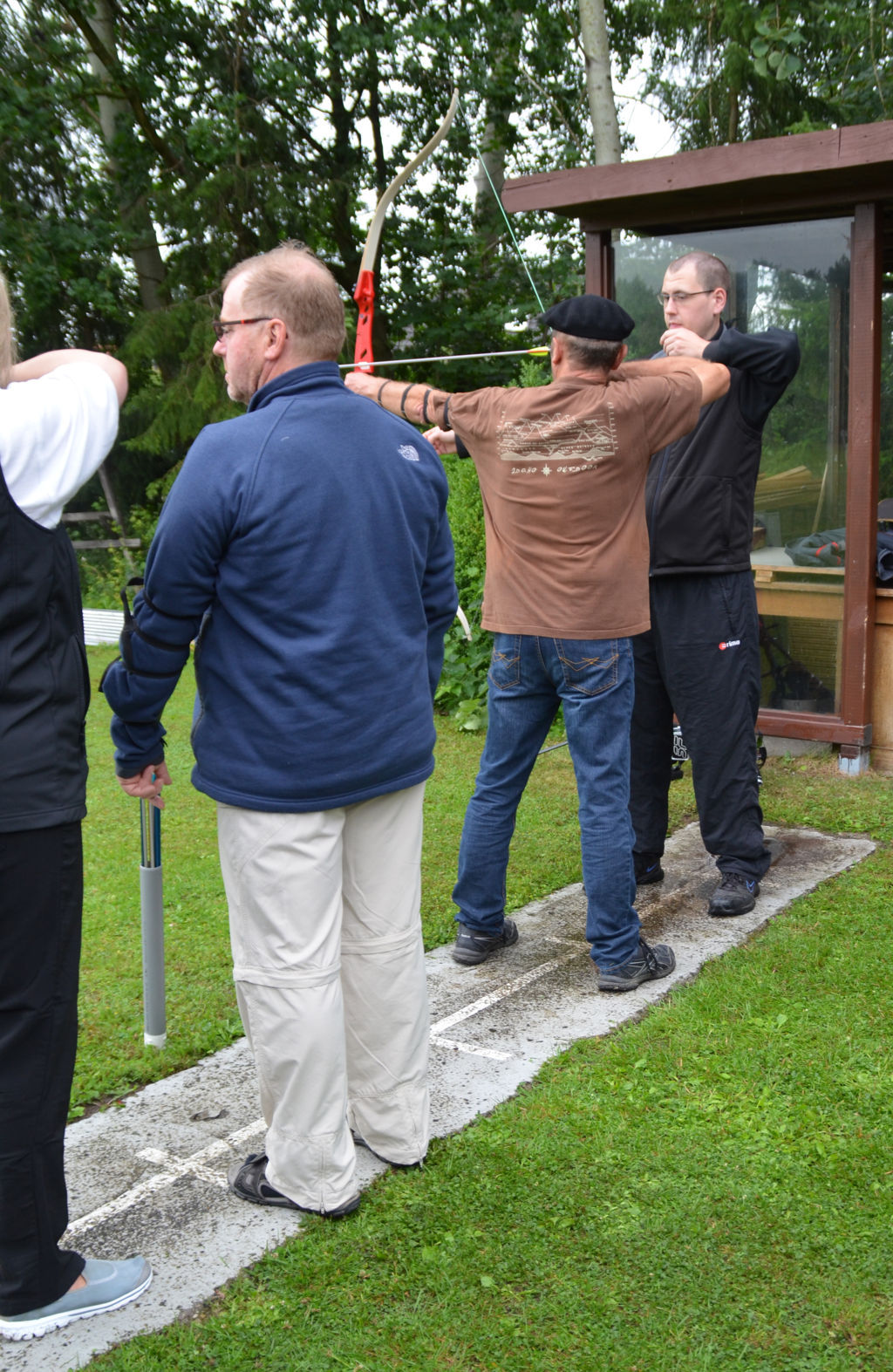 Auf die Frage, wer nicht das Bogenschießen probieren will, meldete sich kaum einer. So konnte Jeder, ob Klein oder Groß, mal sein Geschick unter Beweis stellen. |