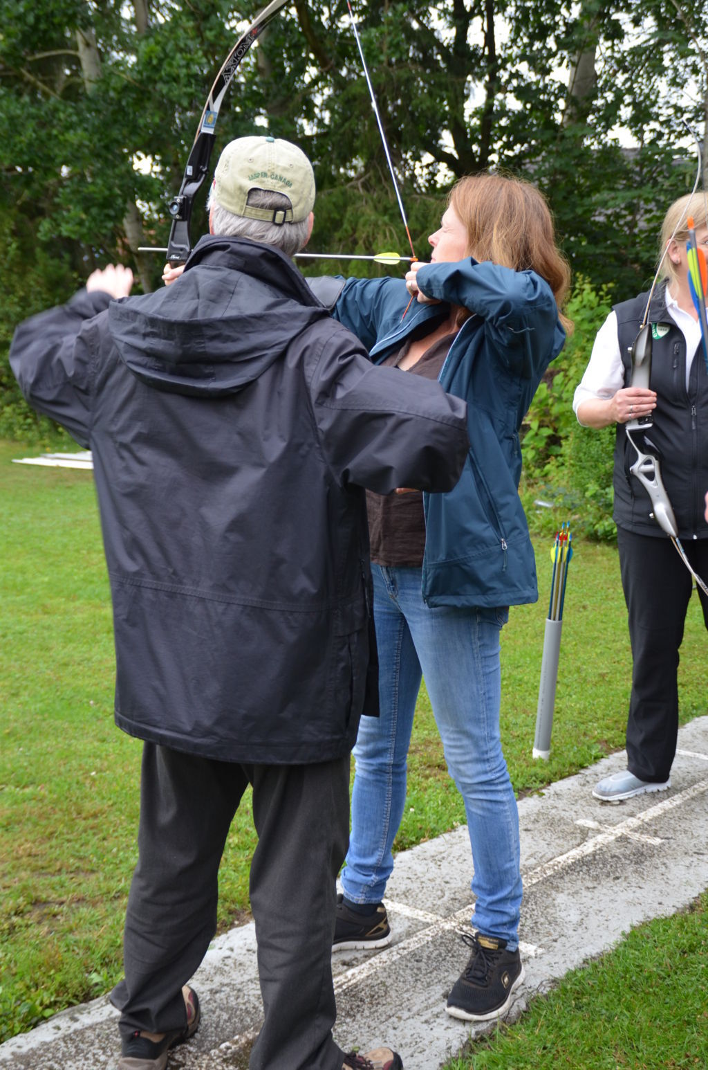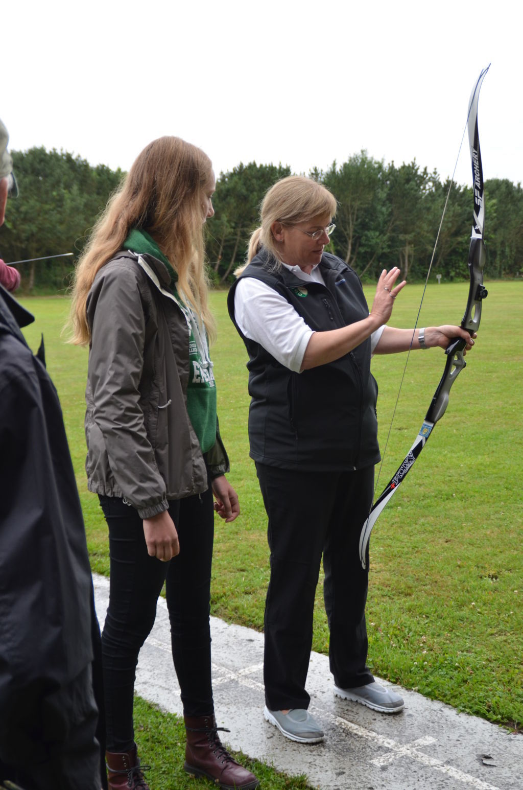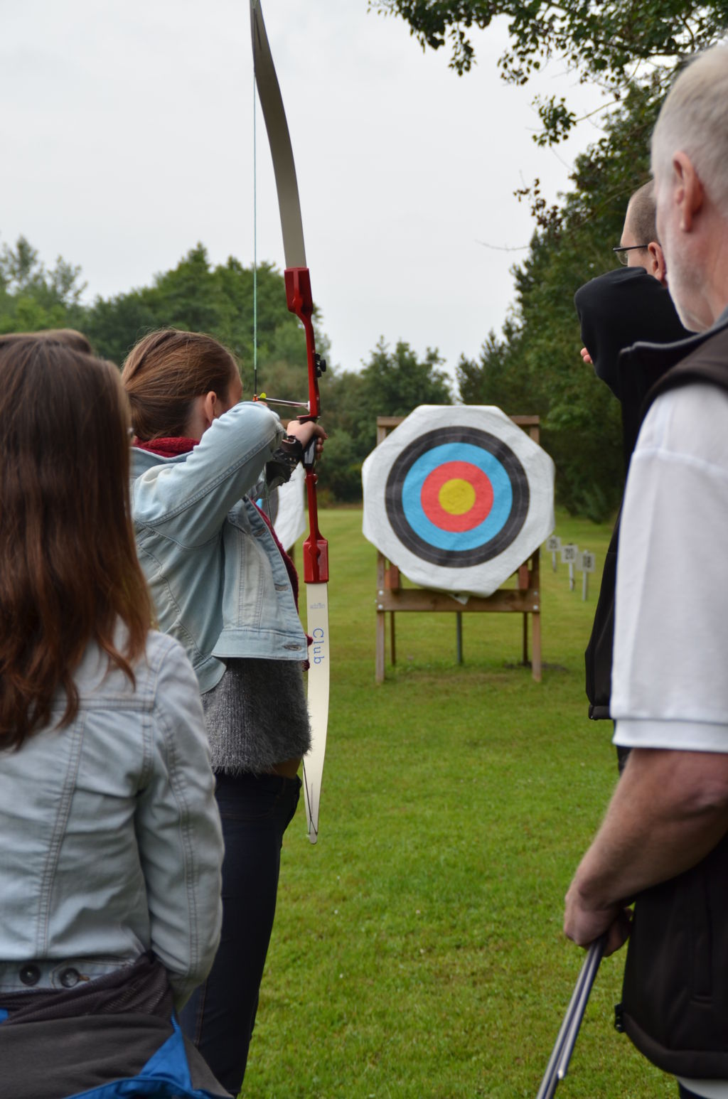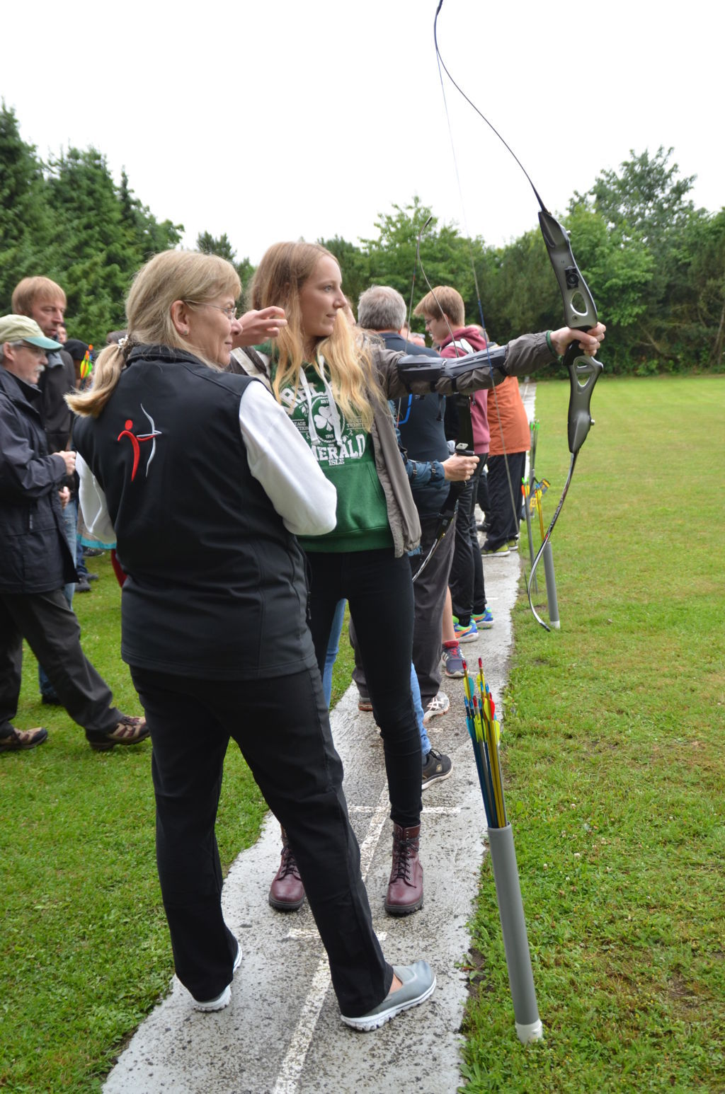 Auf die Frage, wer nicht das Bogenschießen probieren will, meldete sich kaum einer. So konnte Jeder, ob Klein oder Groß, mal sein Geschick unter Beweis stellen. |
