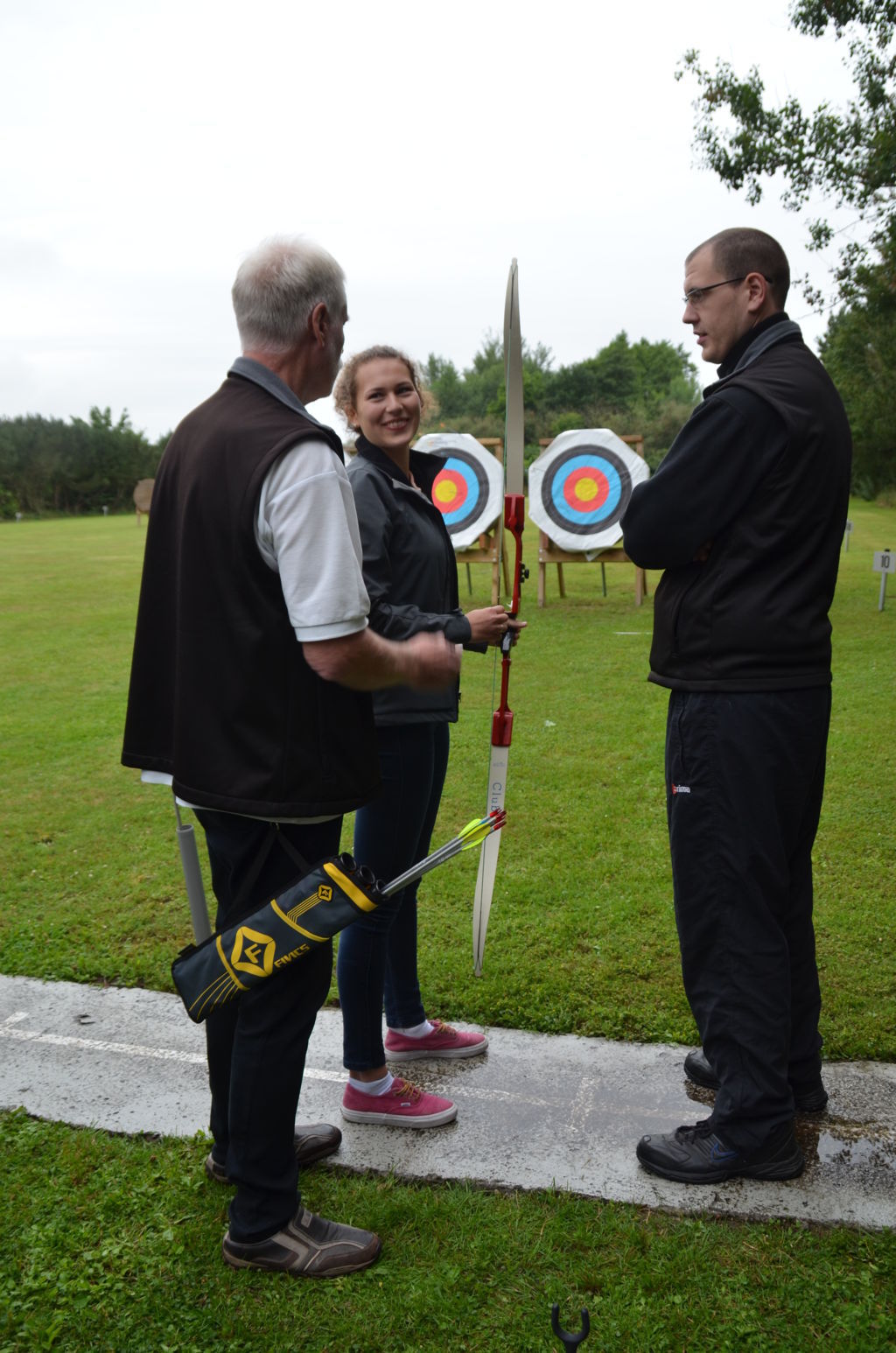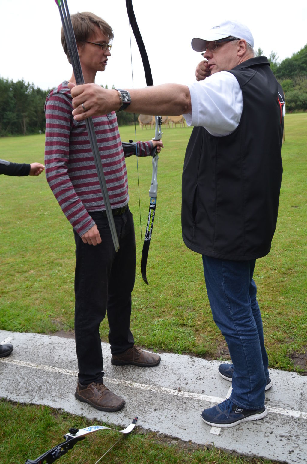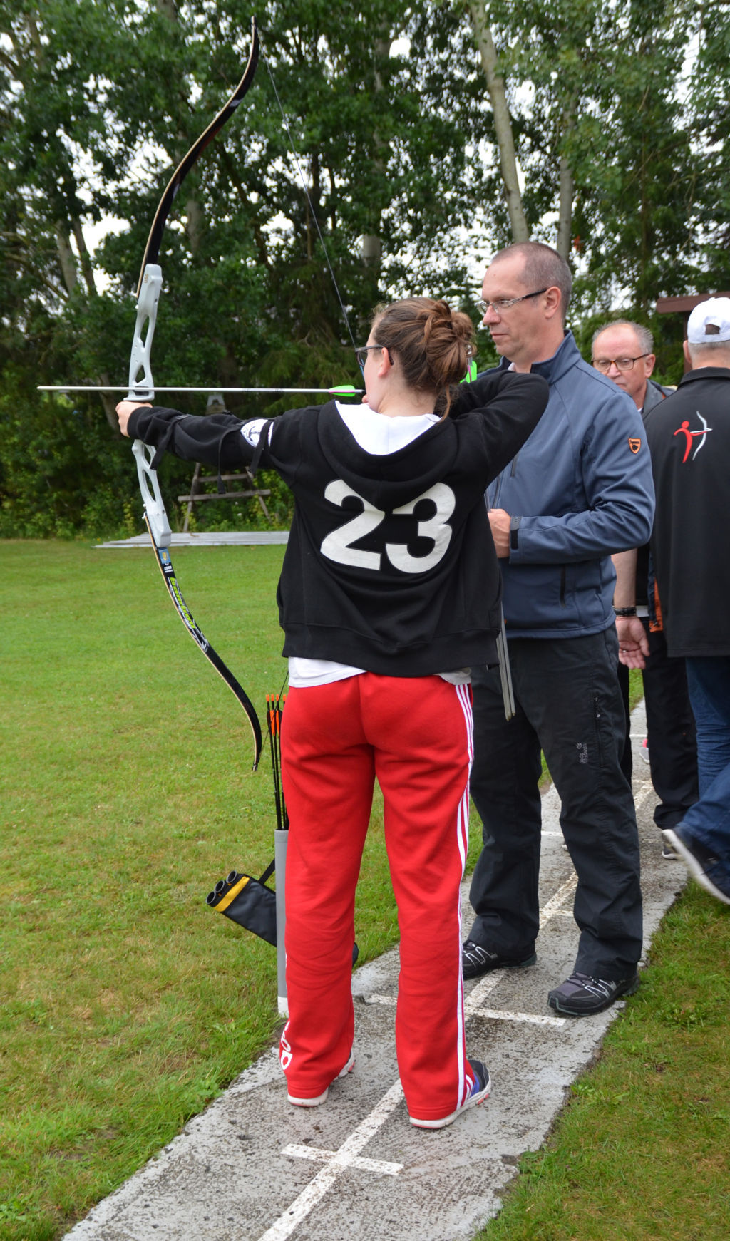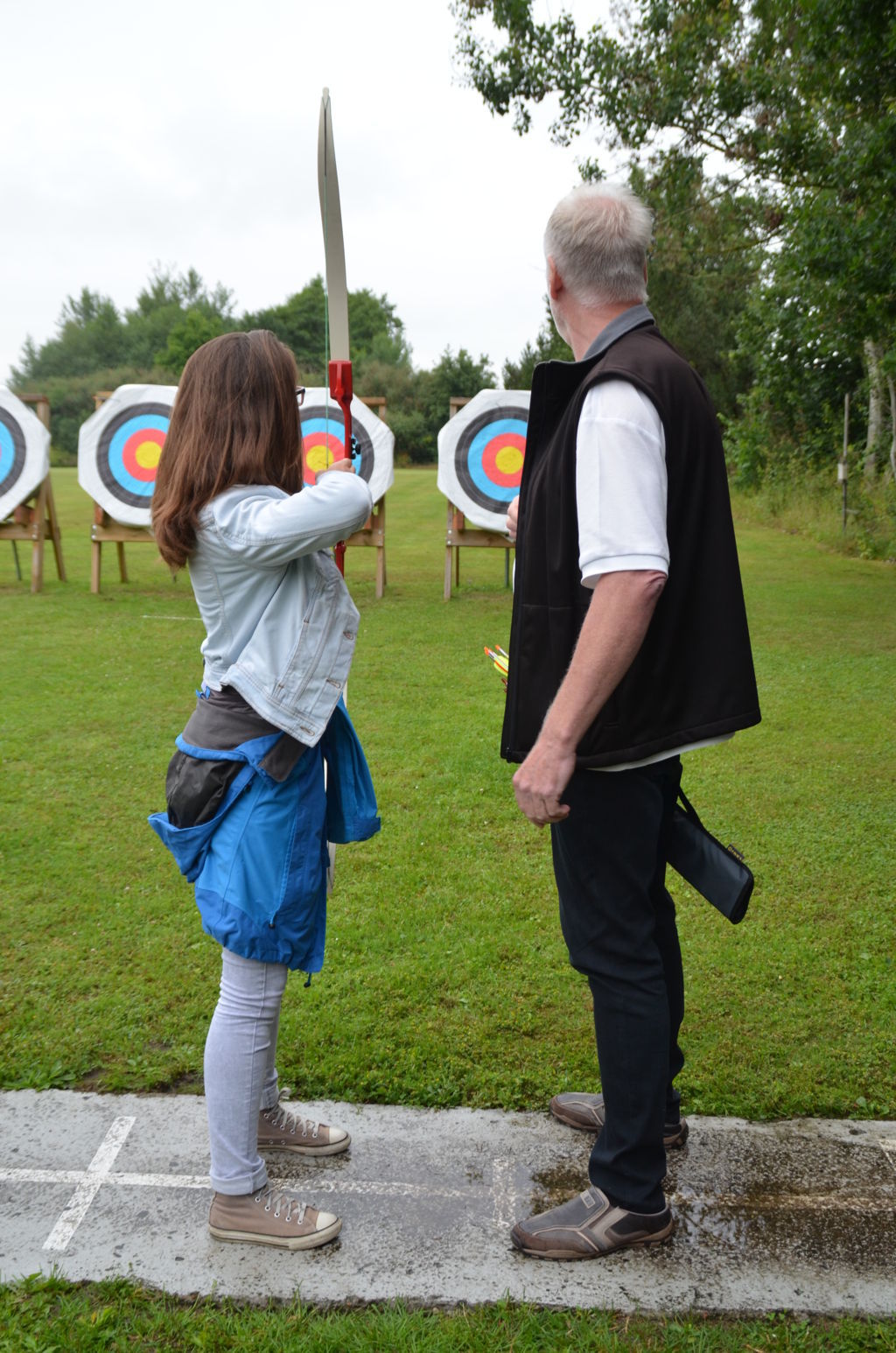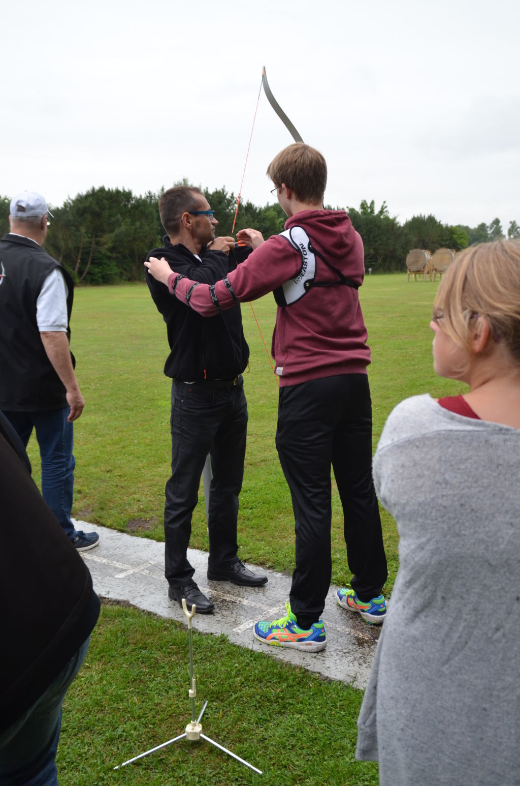 Auf die Frage, wer nicht das Bogenschießen probieren will, meldete sich kaum einer. So konnte Jeder, ob Klein oder Groß, mal sein Geschick unter Beweis stellen. |