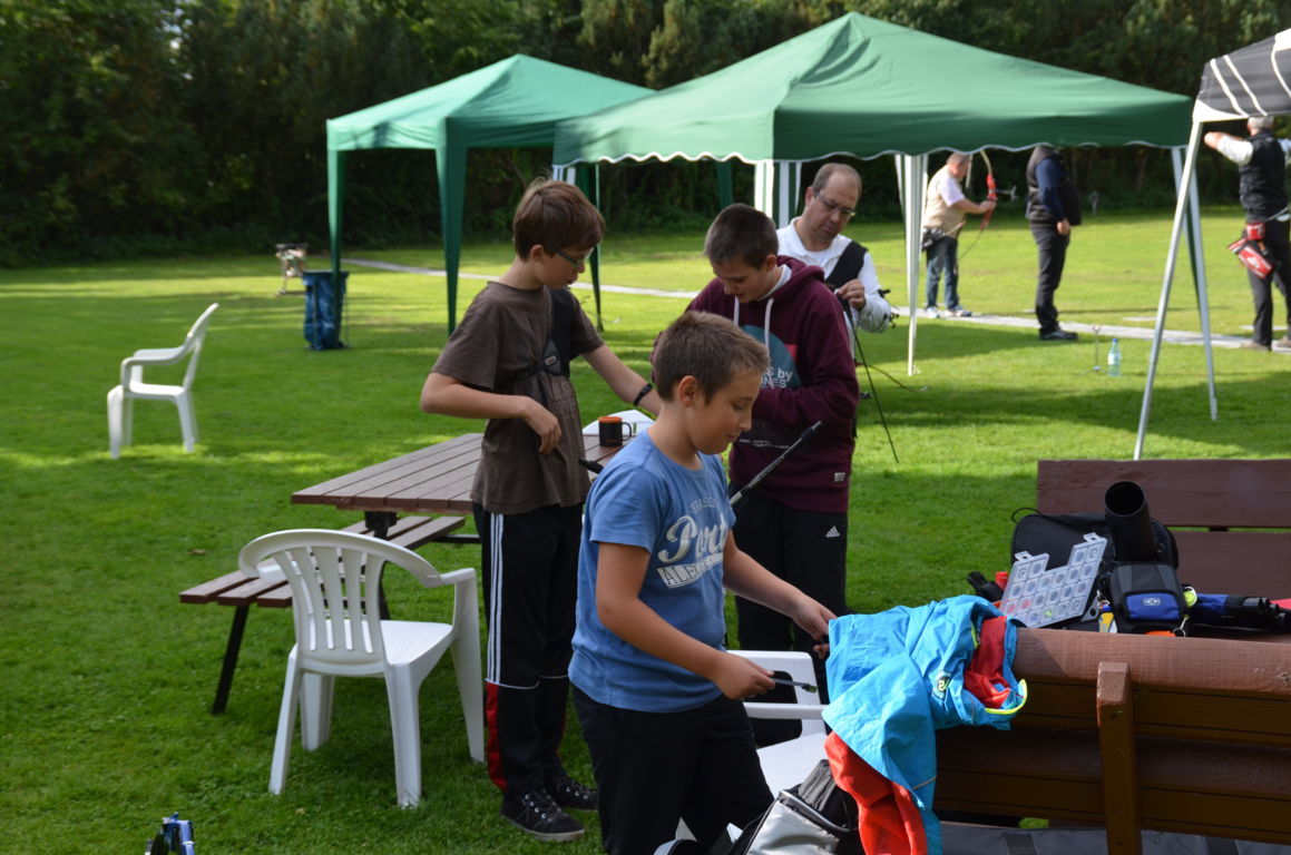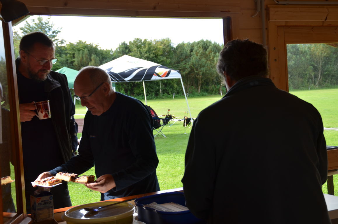 Das Wetter war unsicher: zum Nachmittag konnten kurze Regenschauer erwartet werden. Dafür hatten wir zwei Pavillons aufgestellt. Gastschützen aus anderen Vereinen brachten auch noch zwei weitere Pavillons zum Regenschutz mit.