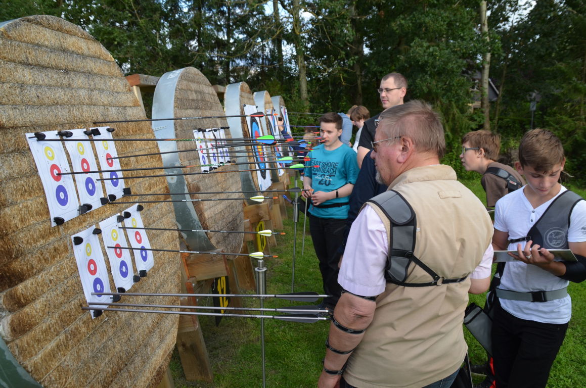 Es begann mit den Spielen Fuchsjagd, Tannenbaum und der verflixten Sieben. Die Herausforderung bei diesen Spielen liegt darin, dass jeder Schütze mit dem gleichen Bogen aus dem Vereinsbestand schießen musste, also nicht seinen eigenen, gewohnten Bogen verwenden durfte.