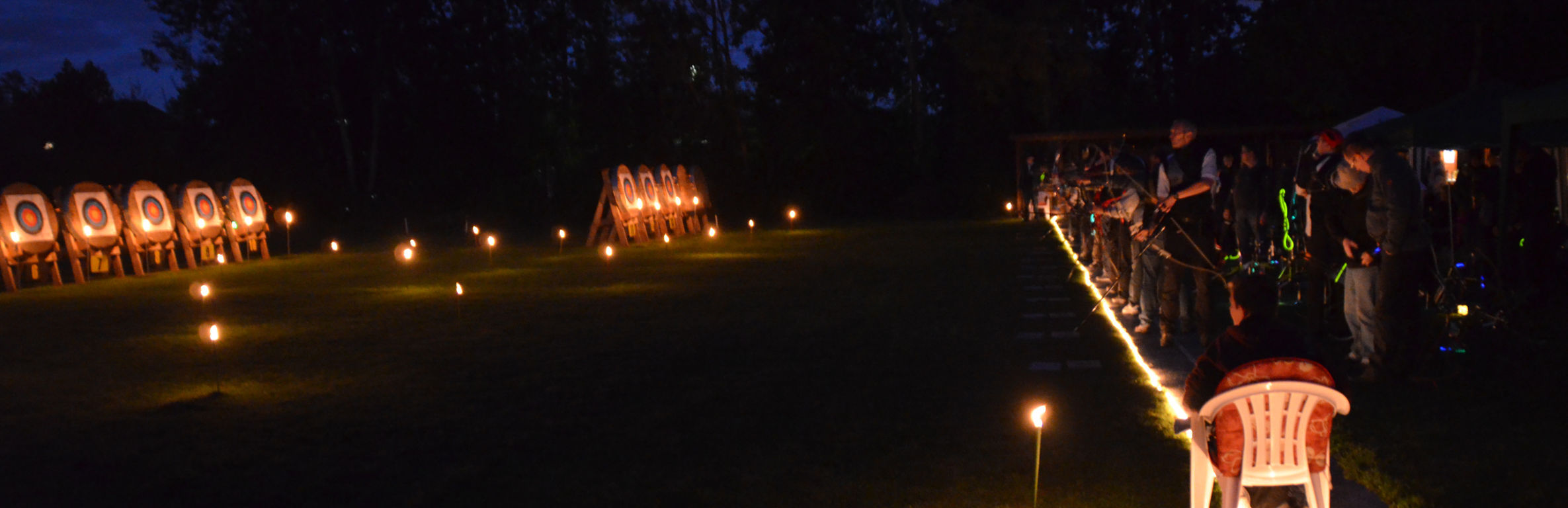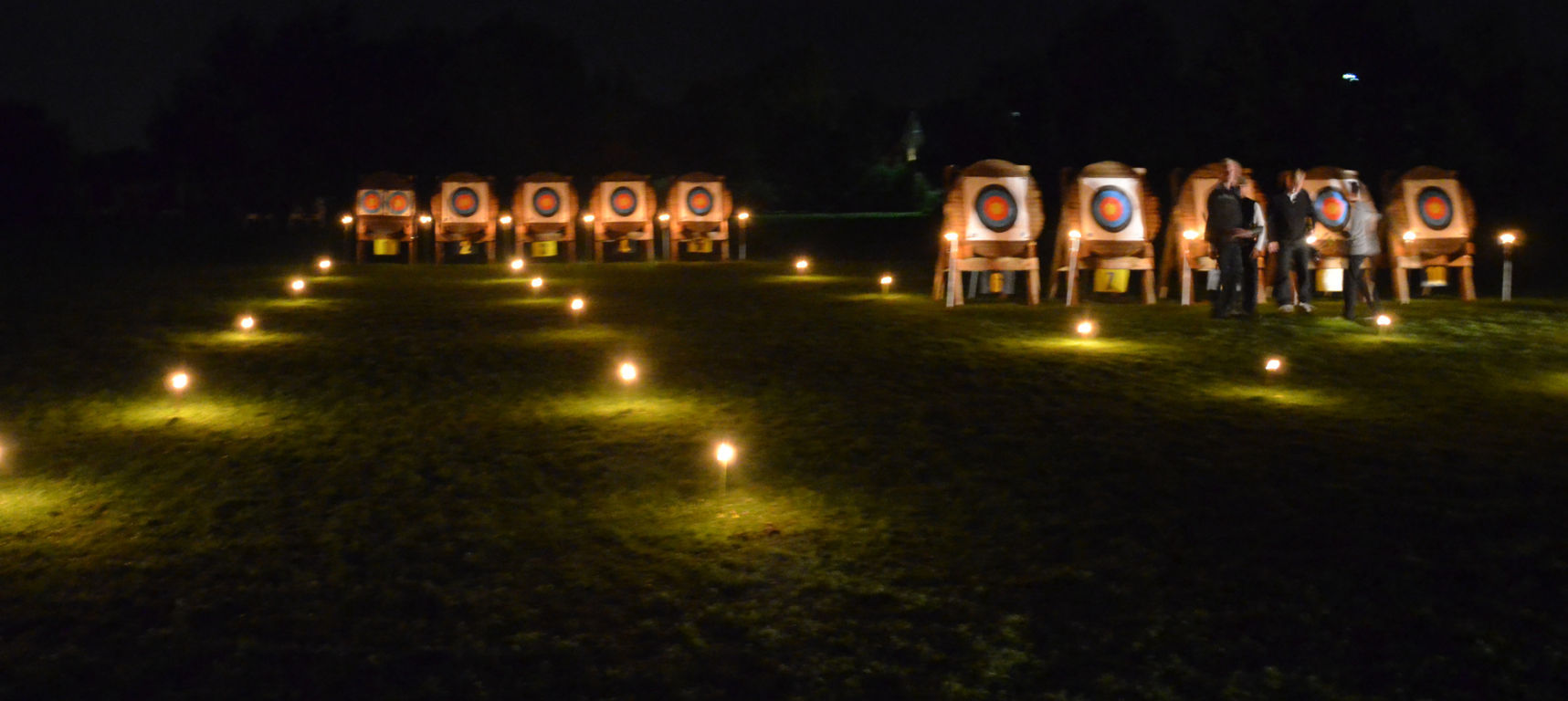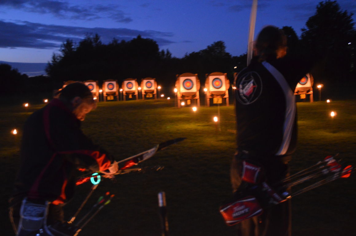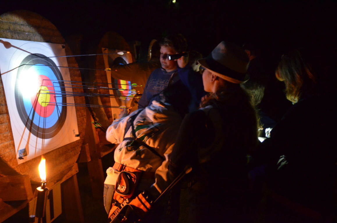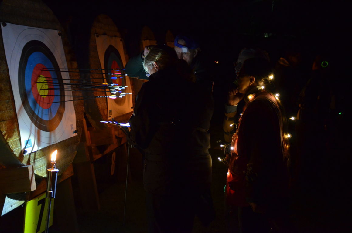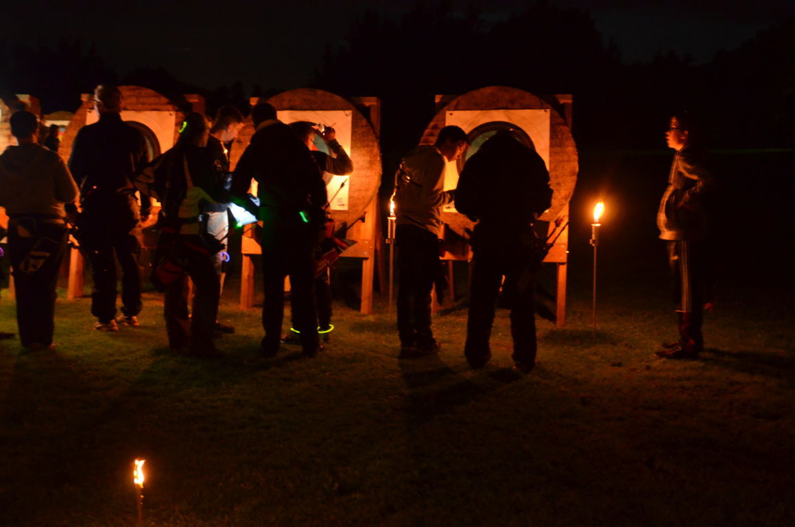 Die Bögen wurden aufgebaut und teilweise mit Knicklichtern dekoriert. Alle warteten auf die Dunkelheit und den Beginn des Turniers.