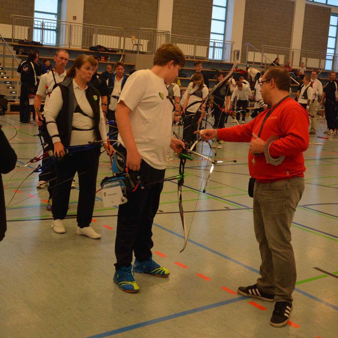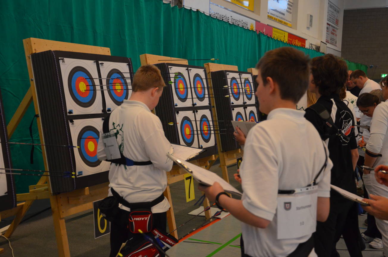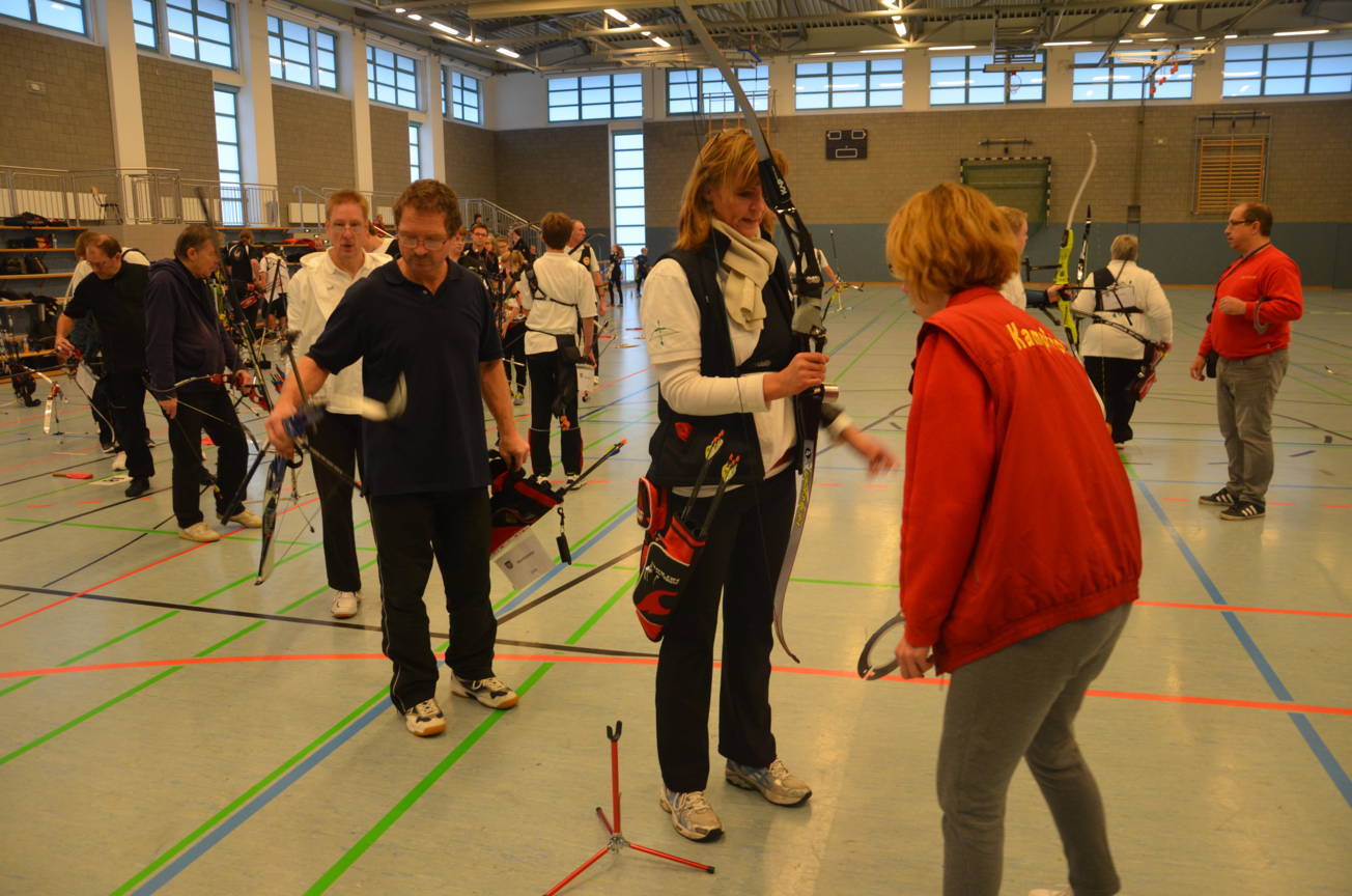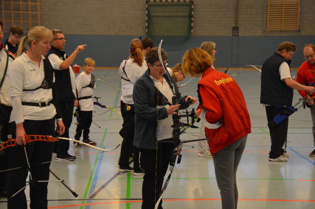 Unsere Kampfrichter Jan Verdel und Katja Bartels nahmen dann gewissenhaft die Bogenkontrolle vor.