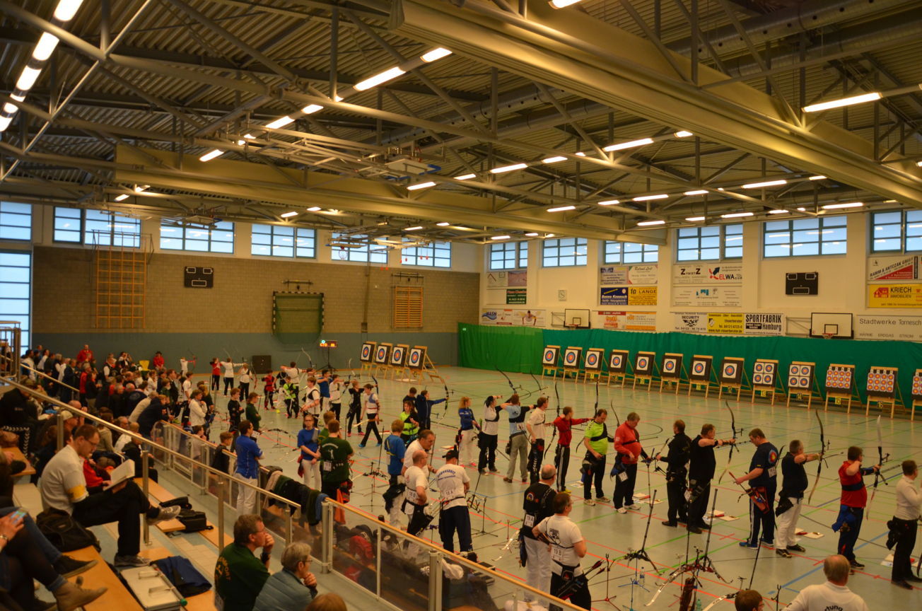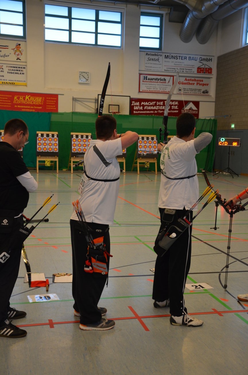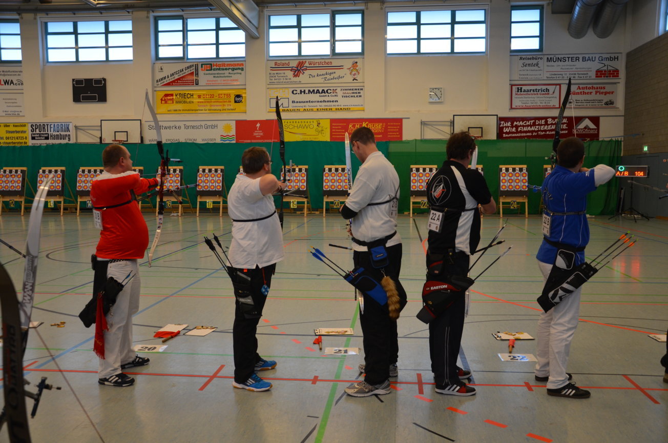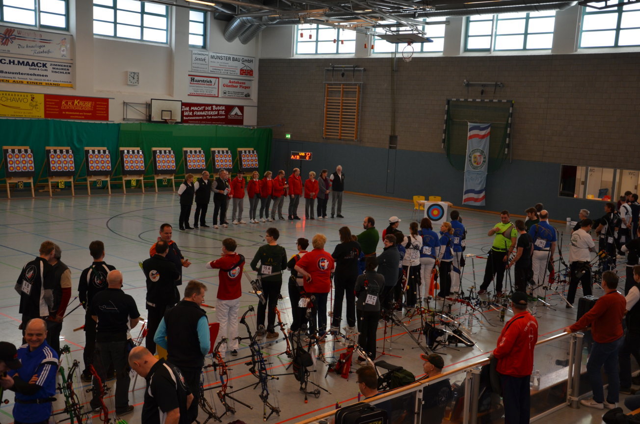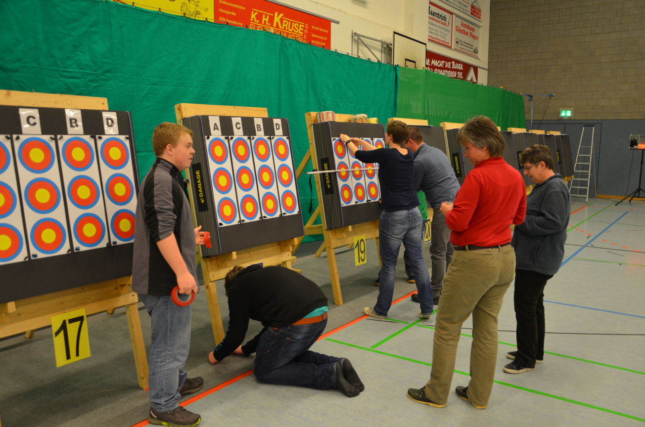 Noch vor der Siegerehrung waren Scheibenständer, Netze usw. abgebaut, um sie nach der Veranstaltung wieder zu den Trainingsstätten zu verbringen. Als Résumé ist festzuhalten, dass die zwei Tage von allen Beteiligten als eine gelungene Veranstaltung angesehen wurde. Die USG hatte mal wieder ihre Kompetenz bewiesen, solch ein großes Turnier ausrichten zu können. Dies kann aber nur durch das harmonische Miteinander und die Unterstützung aller Vereinsmitglieder gelingen. Für 2017 sind wir wieder als Ausrichter der LM nominiert worden. Der Einsatz der neuen Ampelanlage und Steuerungssoftware, die sogar eine Protokollierung der Zeitabläufe ermöglicht, wurde von den Verantwortlichen und den Kampfrichtern äußerst positiv aufgenommen. Auch die Anzeige der Passen, die nun für alle Zuschauer und Beteiligte sichtbar war, wurde im Nachhinein sehr begrüßt. Wenn nun die Jugend auch vereinsseitig auf diese neue Anzeigeform hin sensibilisiert wird, steht einer generellen Nutzung nichts mehr im Wege. Allen Helfern einen herzlichen Dank für die tatkräftige Unterstützung, ohne die solch ein Event nicht durchführbar ist. Der Dank richtet sich auch an die Unterstützung durch die Bogenabteilungen der Nachbarvereine TSV Holms und Elmshorner SchG. (OLu) |