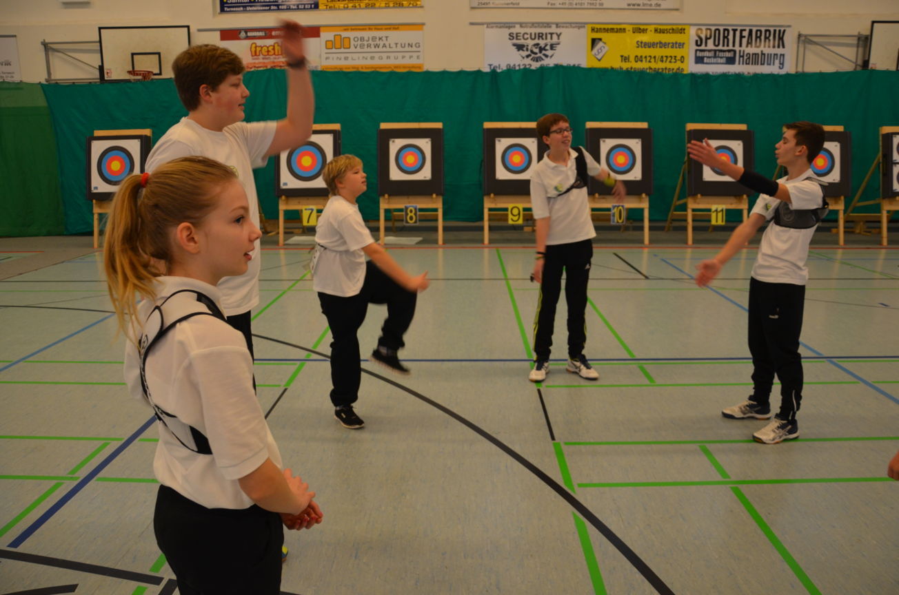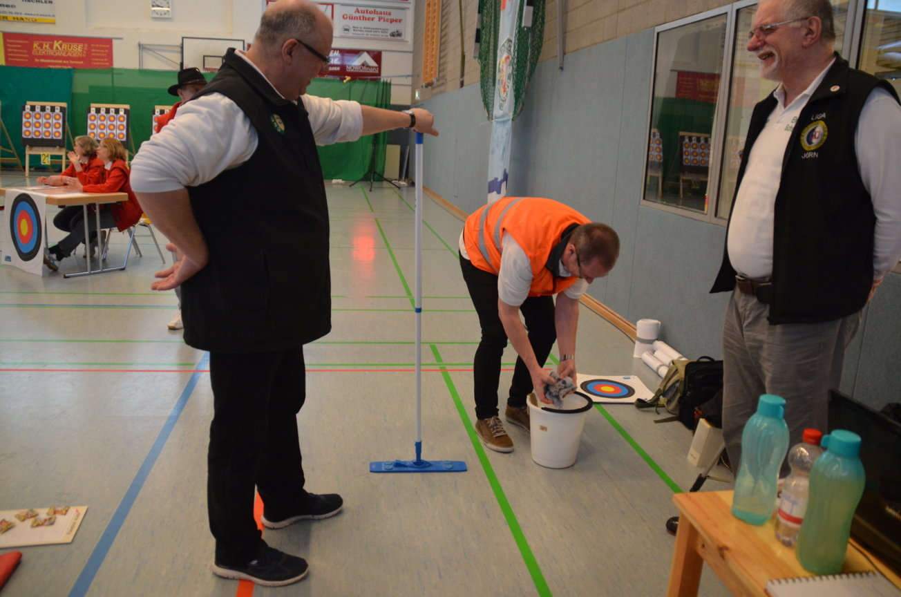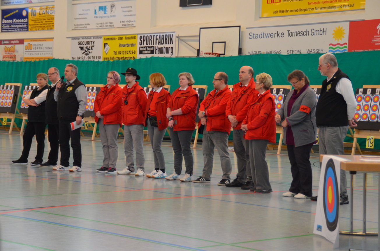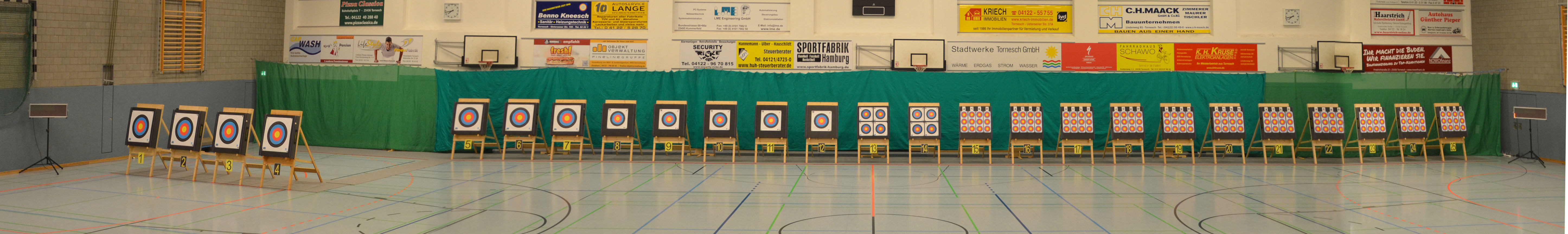 Noch vor der Siegerehrung waren Scheibenständer, Netze usw. abgebaut, um sie nach der Veranstaltung wieder zu den Trainingsstätten zu verbringen. Als Résumé ist festzuhalten, dass die zwei Tage von allen Beteiligten als eine gelungene Veranstaltung angesehen wurde. Die USG hatte mal wieder ihre Kompetenz bewiesen, solch ein großes Turnier ausrichten zu können. Dies kann aber nur durch das harmonische Miteinander und die Unterstützung aller Vereinsmitglieder gelingen. Für 2017 sind wir wieder als Ausrichter der LM nominiert worden. Der Einsatz der neuen Ampelanlage und Steuerungssoftware, die sogar eine Protokollierung der Zeitabläufe ermöglicht, wurde von den Verantwortlichen und den Kampfrichtern äußerst positiv aufgenommen. Auch die Anzeige der Passen, die nun für alle Zuschauer und Beteiligte sichtbar war, wurde im Nachhinein sehr begrüßt. Wenn nun die Jugend auch vereinsseitig auf diese neue Anzeigeform hin sensibilisiert wird, steht einer generellen Nutzung nichts mehr im Wege. Allen Helfern einen herzlichen Dank für die tatkräftige Unterstützung, ohne die solch ein Event nicht durchführbar ist. Der Dank richtet sich auch an die Unterstützung durch die Bogenabteilungen der Nachbarvereine TSV Holms und Elmshorner SchG. (OLu) |