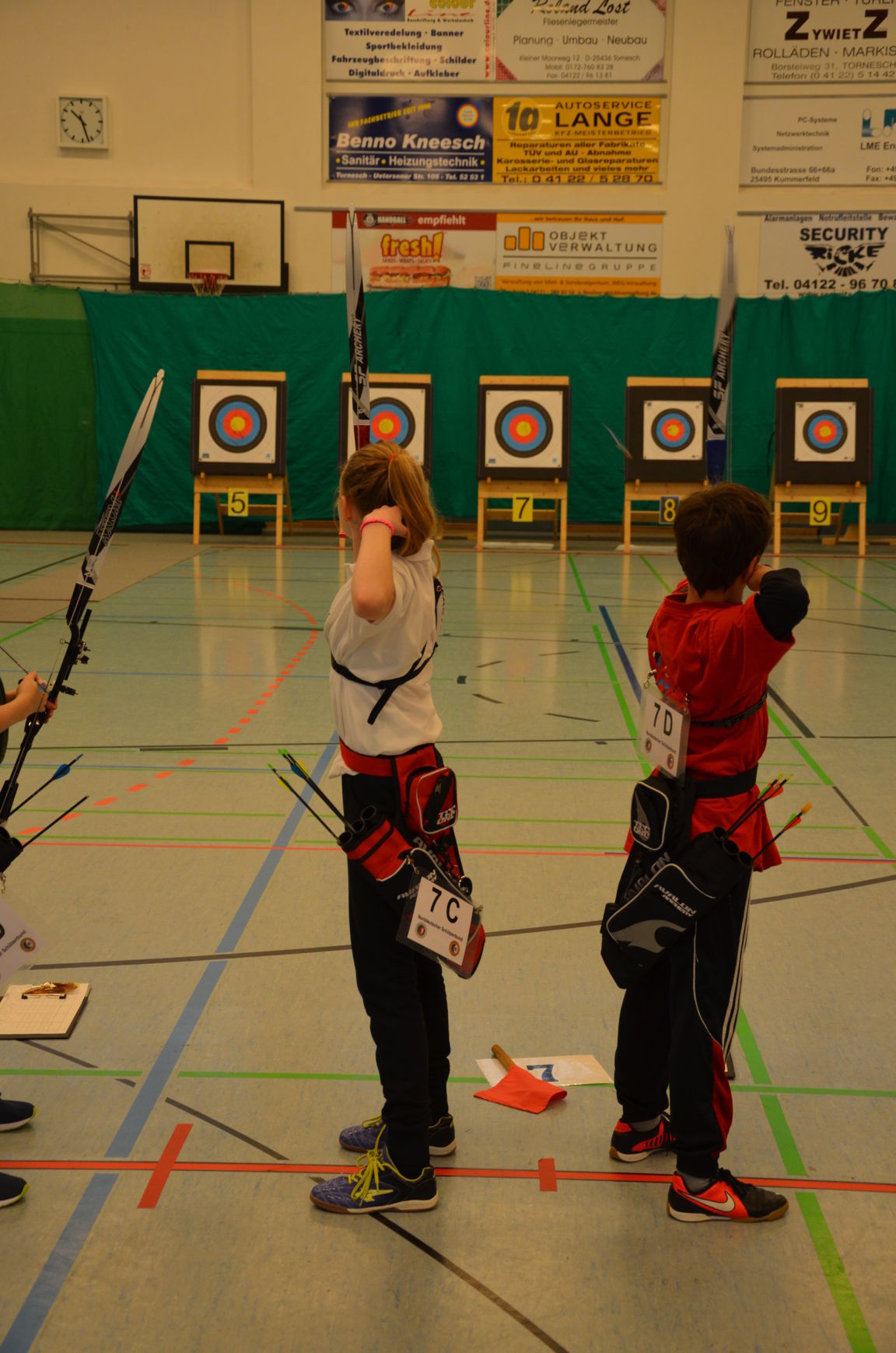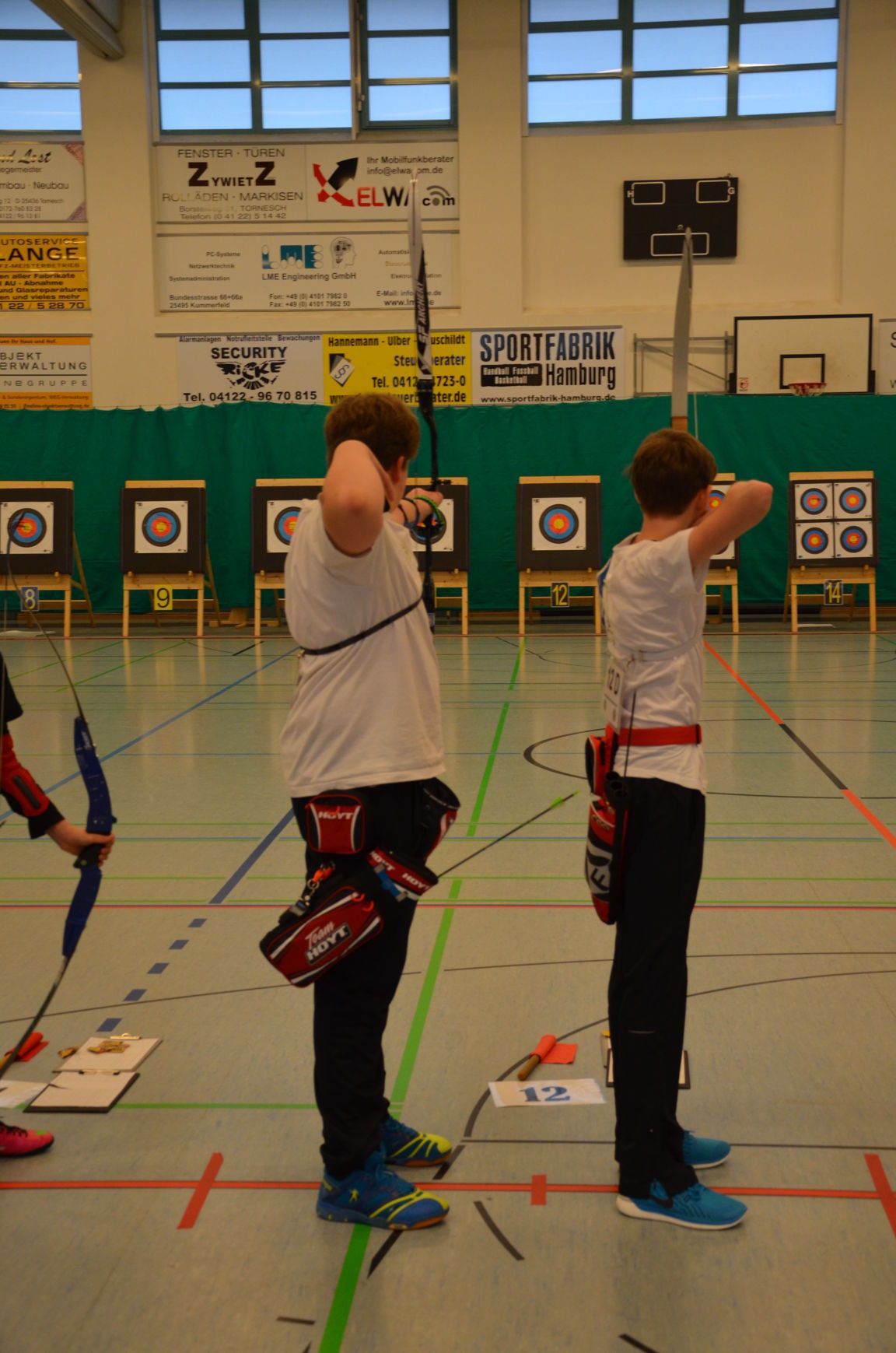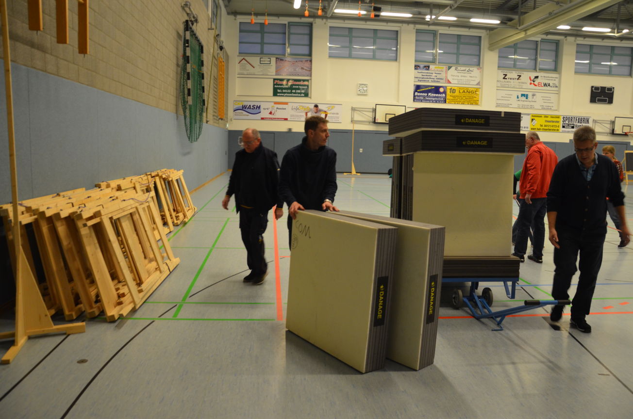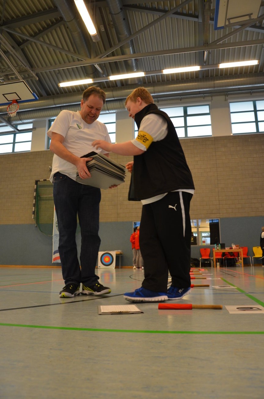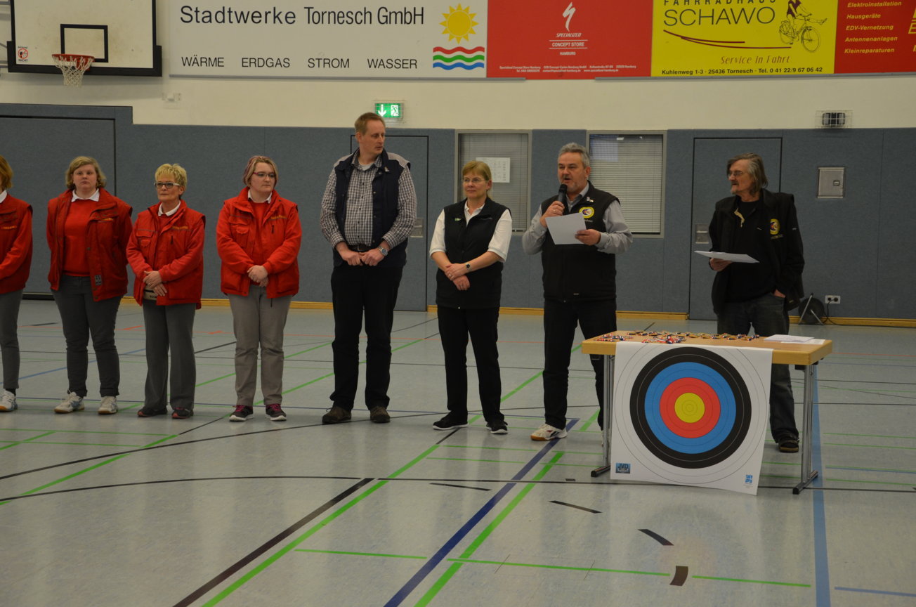 Noch vor der Siegerehrung waren Scheibenständer, Netze usw. abgebaut, um sie nach der Veranstaltung wieder zu den Trainingsstätten zu verbringen. Als Résumé ist festzuhalten, dass die zwei Tage von allen Beteiligten als eine gelungene Veranstaltung angesehen wurde. Die USG hatte mal wieder ihre Kompetenz bewiesen, solch ein großes Turnier ausrichten zu können. Dies kann aber nur durch das harmonische Miteinander und die Unterstützung aller Vereinsmitglieder gelingen. Für 2017 sind wir wieder als Ausrichter der LM nominiert worden. Der Einsatz der neuen Ampelanlage und Steuerungssoftware, die sogar eine Protokollierung der Zeitabläufe ermöglicht, wurde von den Verantwortlichen und den Kampfrichtern äußerst positiv aufgenommen. Auch die Anzeige der Passen, die nun für alle Zuschauer und Beteiligte sichtbar war, wurde im Nachhinein sehr begrüßt. Wenn nun die Jugend auch vereinsseitig auf diese neue Anzeigeform hin sensibilisiert wird, steht einer generellen Nutzung nichts mehr im Wege. Allen Helfern einen herzlichen Dank für die tatkräftige Unterstützung, ohne die solch ein Event nicht durchführbar ist. Der Dank richtet sich auch an die Unterstützung durch die Bogenabteilungen der Nachbarvereine TSV Holms und Elmshorner SchG. (OLu) |