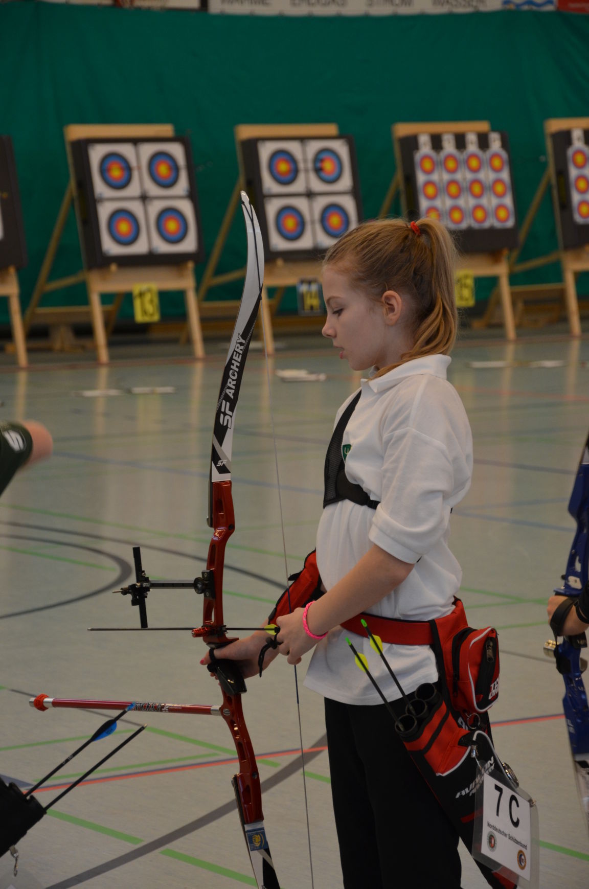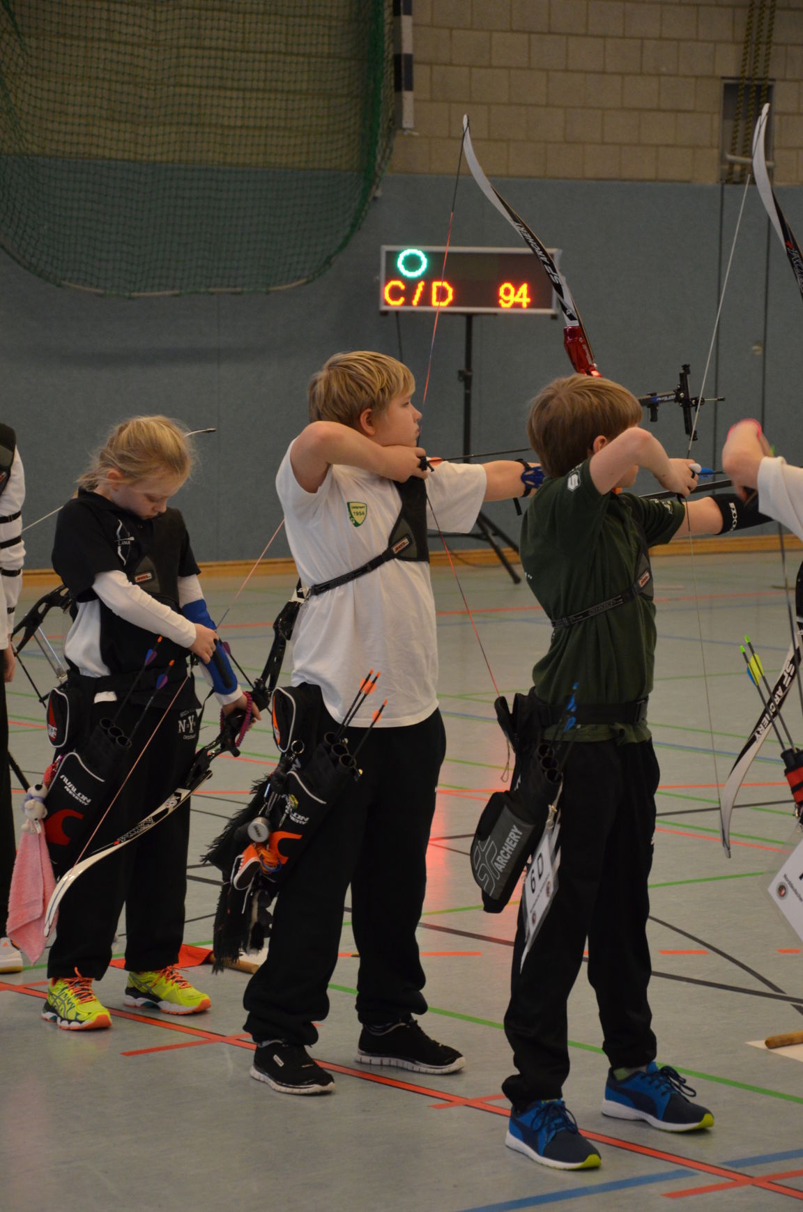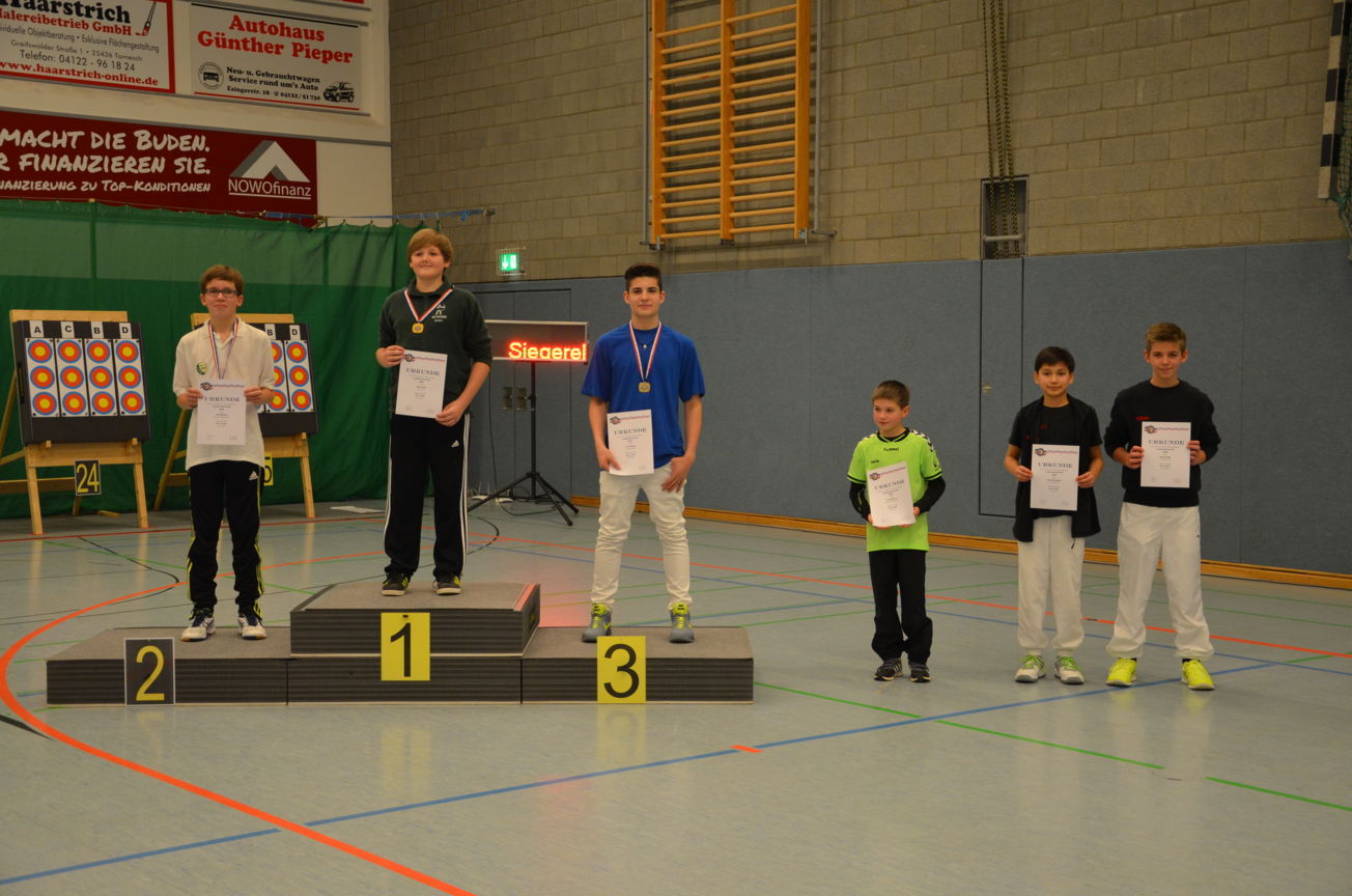 | Am Ende des ersten Wettkampftages gab es dann je einmal Gold, Silber und Bronze für die Jugend unseres Vereins. Jonathan, der erst seit wenigen Monaten Bogenschütze ist, erreichte auf Anhieb Platz 1 bei den Blankschützen der Schüler. Bei den Recurveschützen der Schüler sicherte sich Paul M. den 2. Platz und Nick den 10. Platz. Lina F. erzielte bei den Schülerinnen B Recurve den 3. Platz und Felix bei den Schülern B den 4. Platz. |