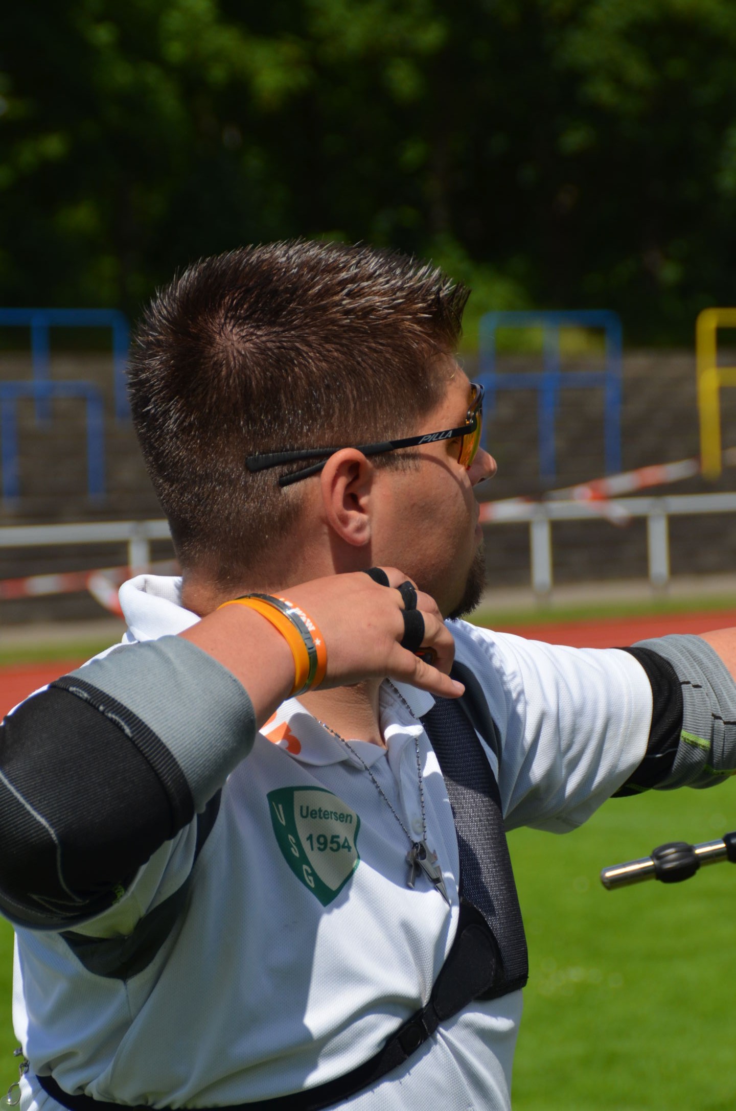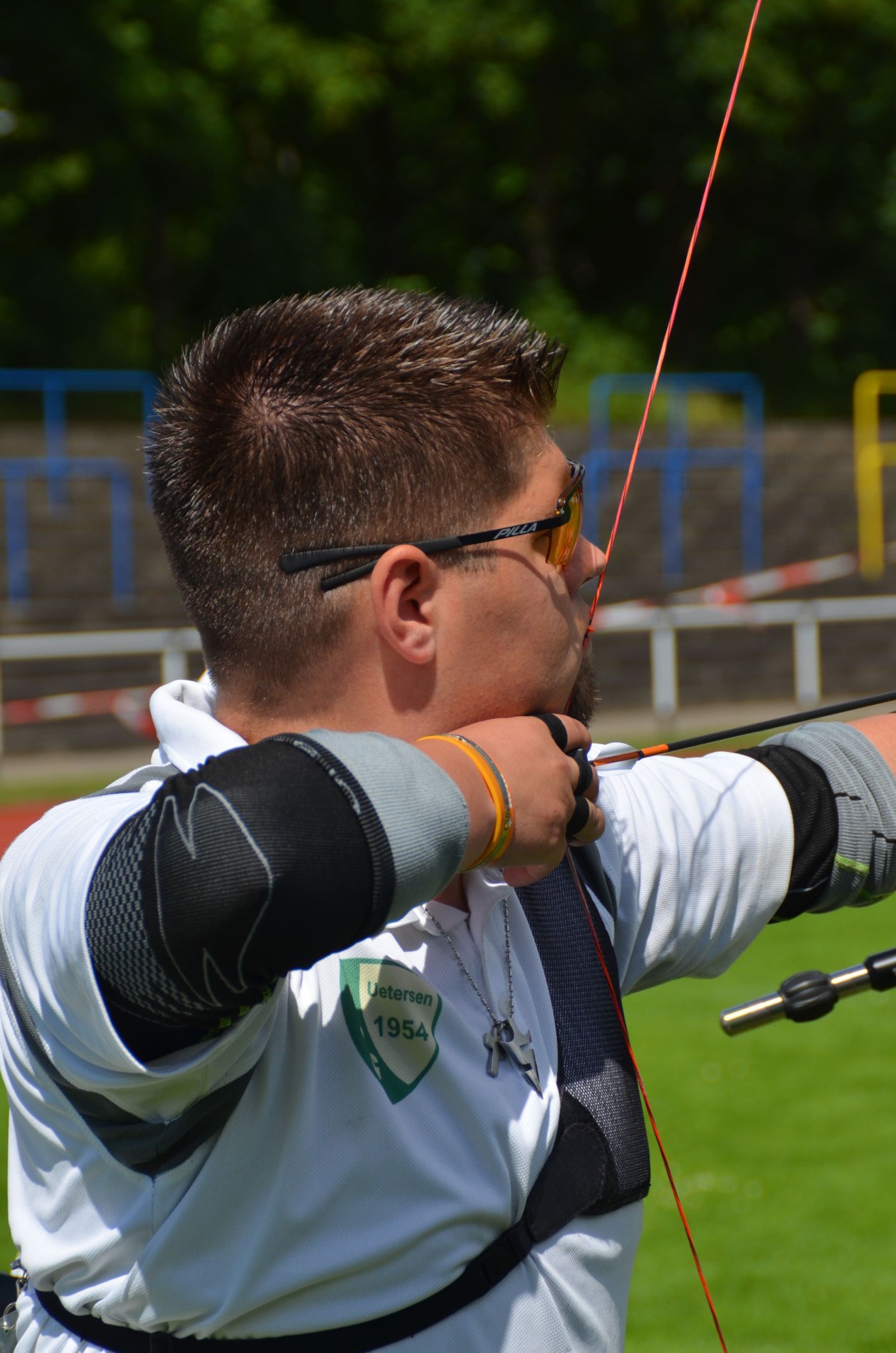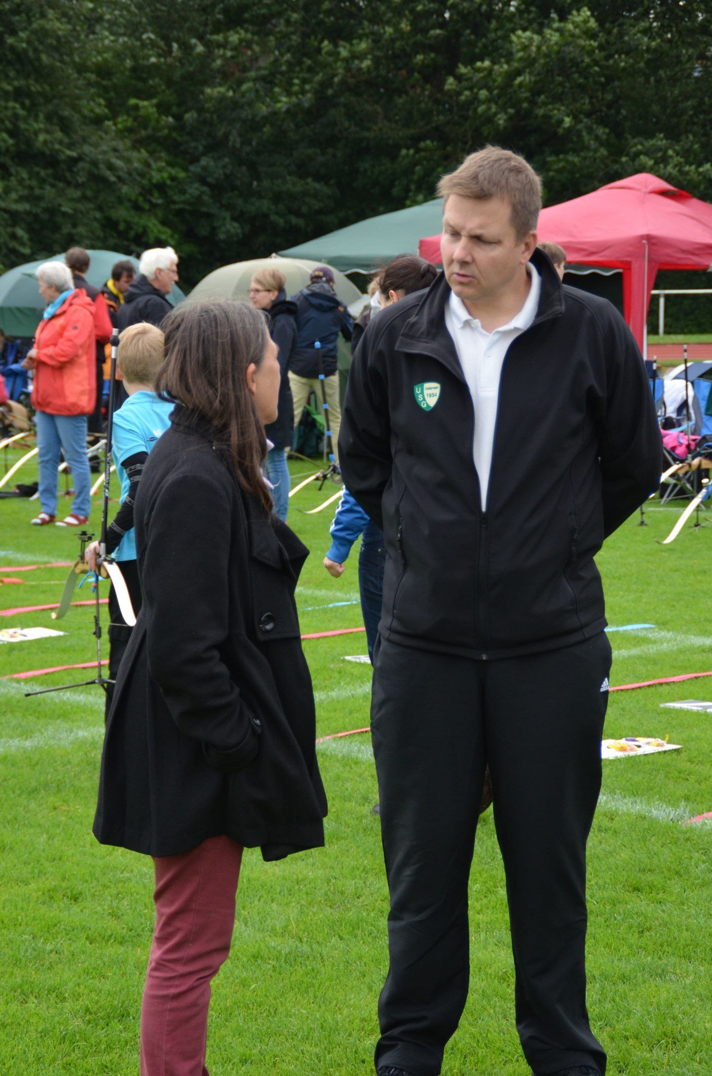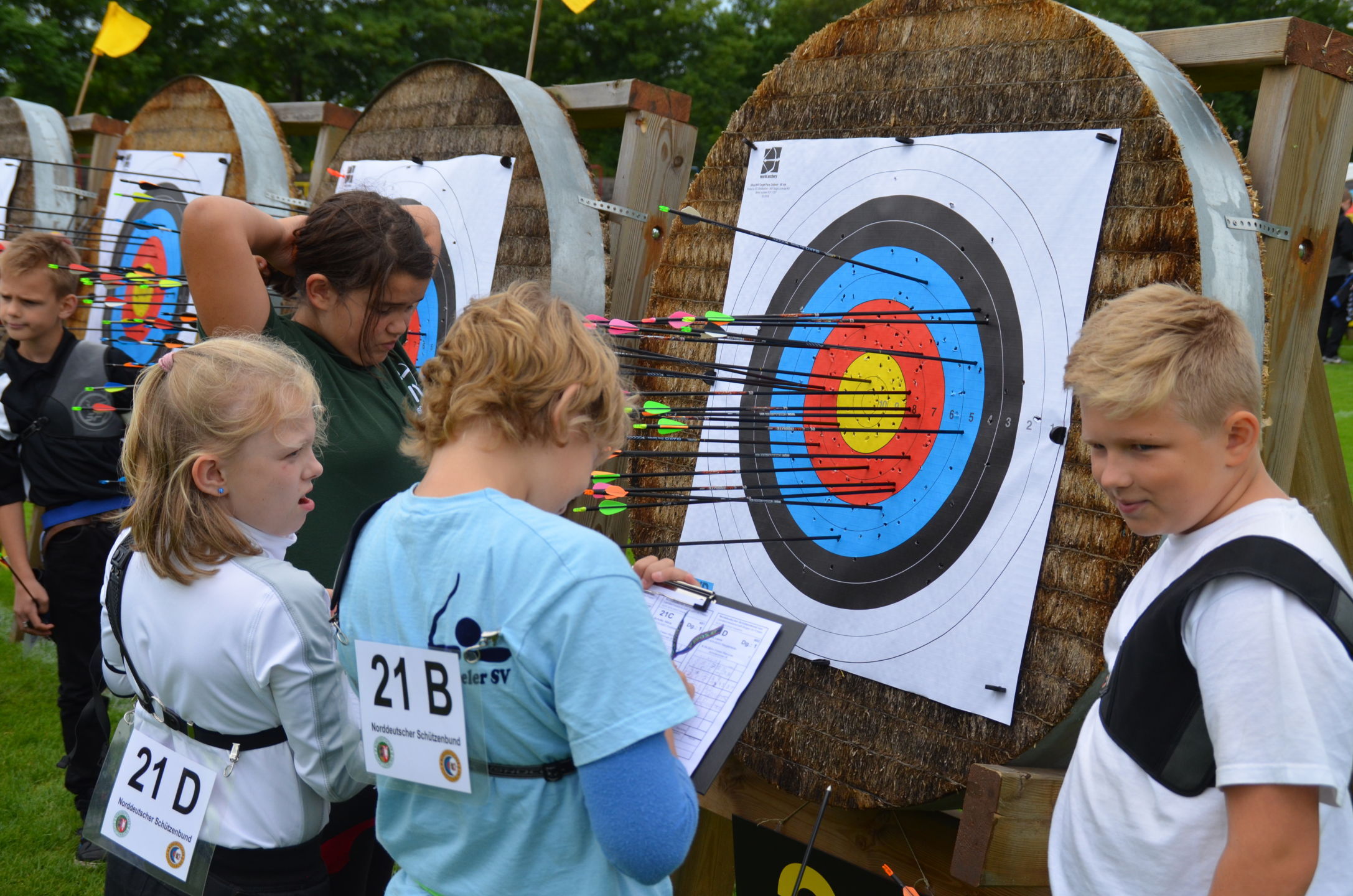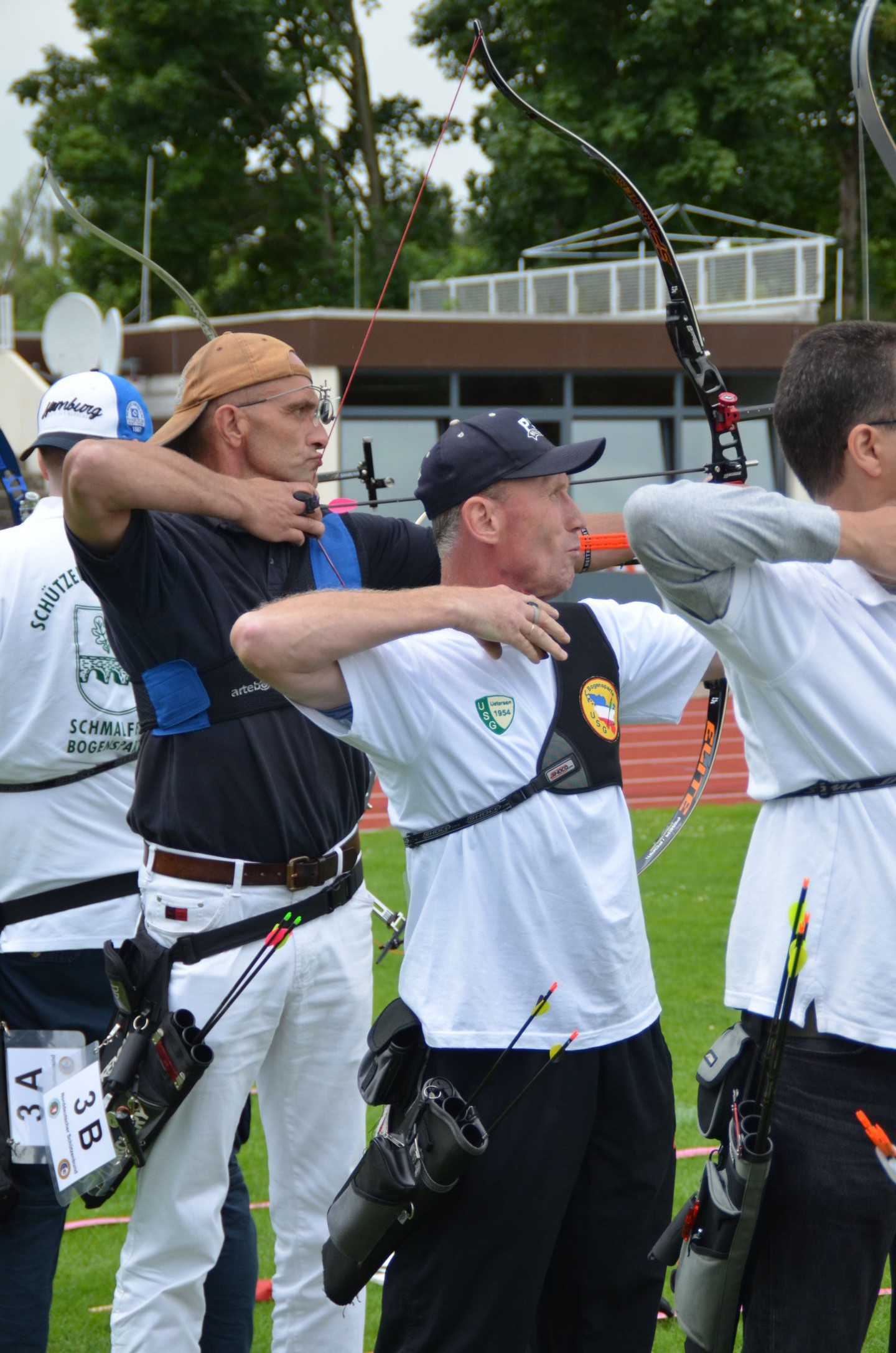Die Landesmeisterschaft (LM) Bogen im Freien sollte dieses Jahr am 2./3. Juli durch die Bogenabteilung der Elmshorner Schützengilde (ESG) ausgerichtet werden. 191 Schützen waren für die zwei Turniertage gemeldet, die auf insgesamt 25 Scheiben die Meisterschaft austragen sollten. Dieses hierfür notwendige Equipment stand der ESG nicht zur Verfügung und so war die USG und der TSV Holm gefordert, mit Material und Manpower tatkräftig zu unterstützen. |