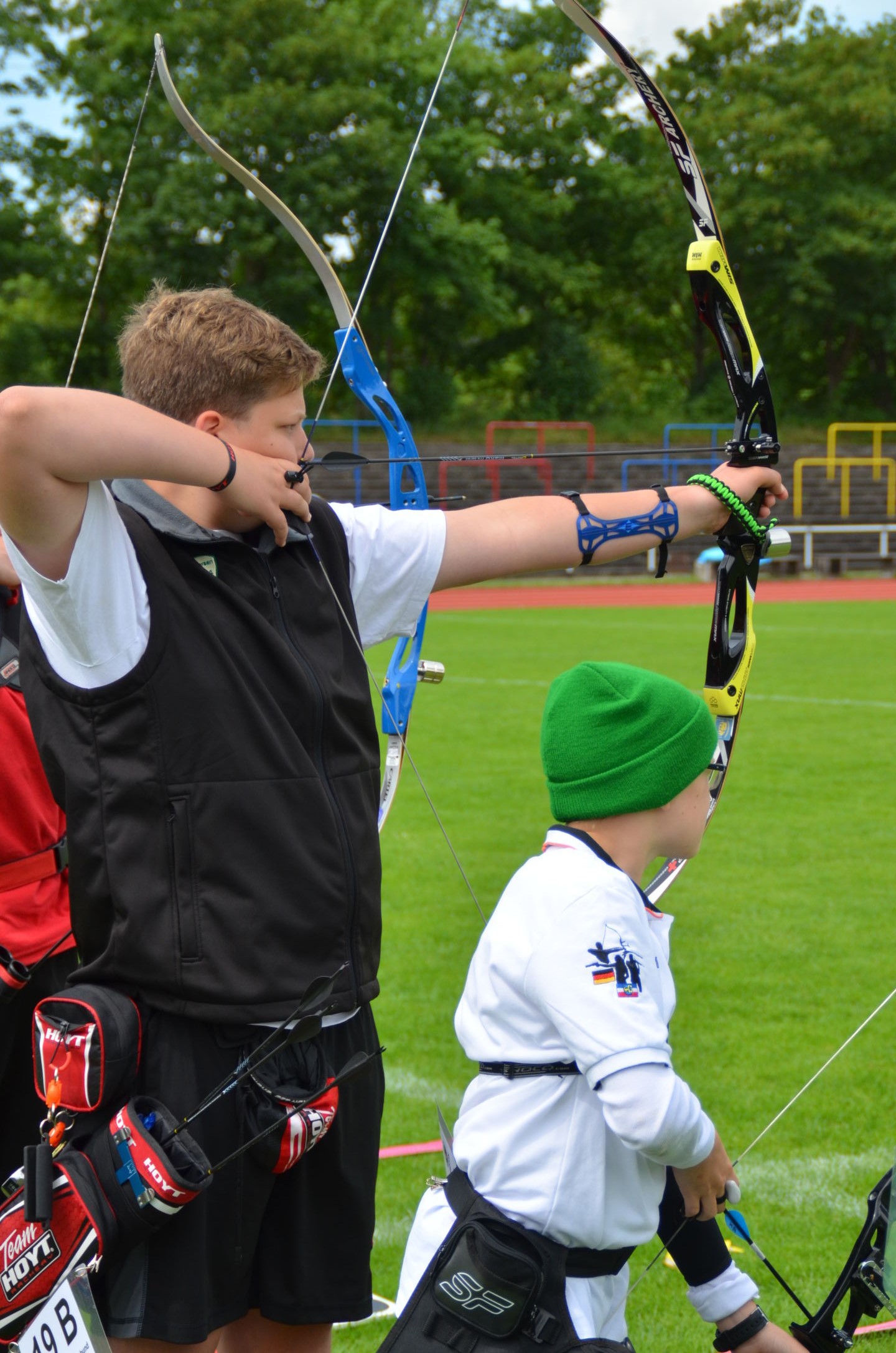 40 m Distanz - auf diese Entfernung schossen Paul M. und Nick (beide Schüler Recurve) |