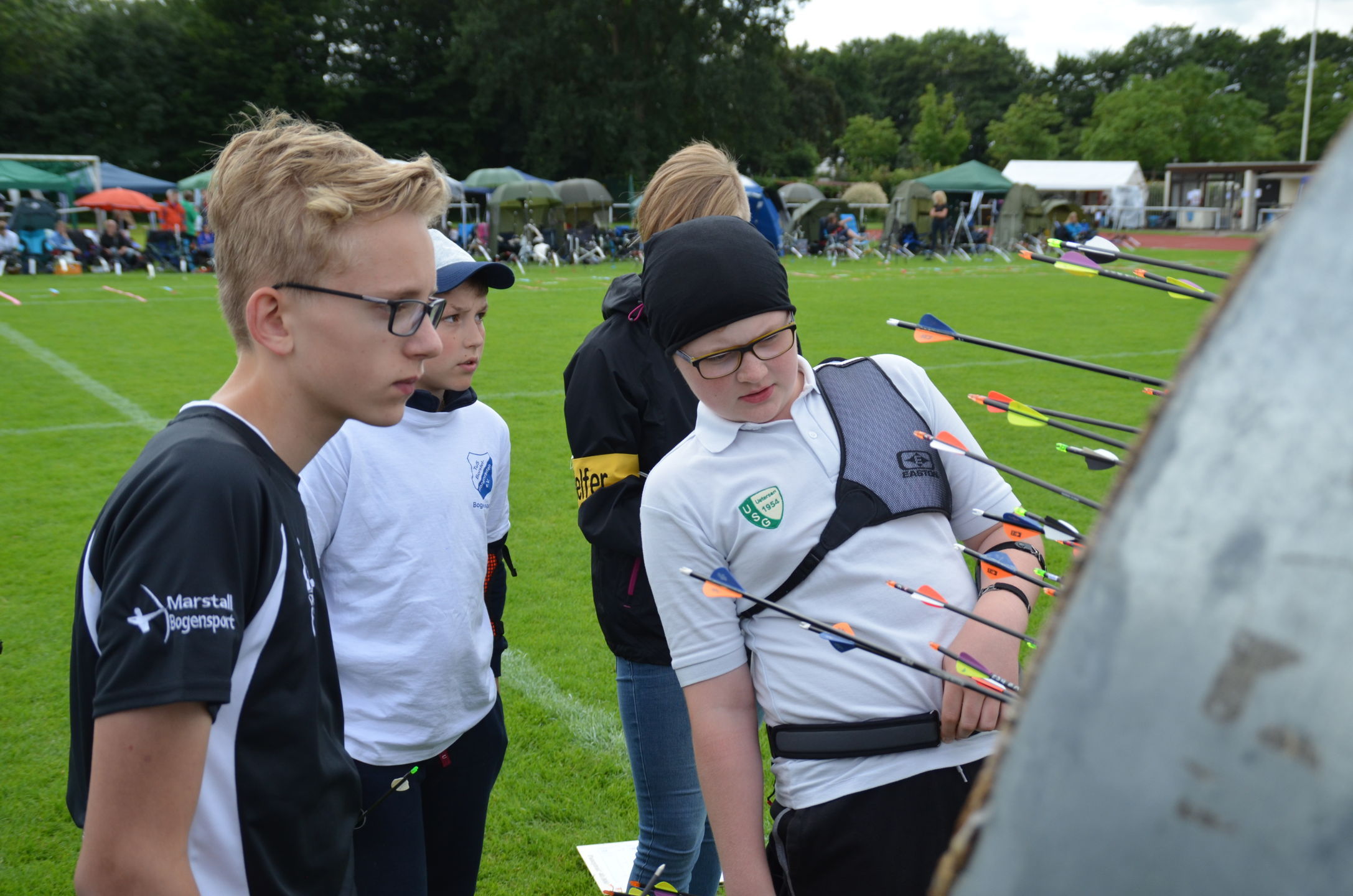 25 m Distanz - auf diese Entfernung schossen Benedict, Jonathan (beide Schüler Blank) und Felix (Schüler B Recurve). |