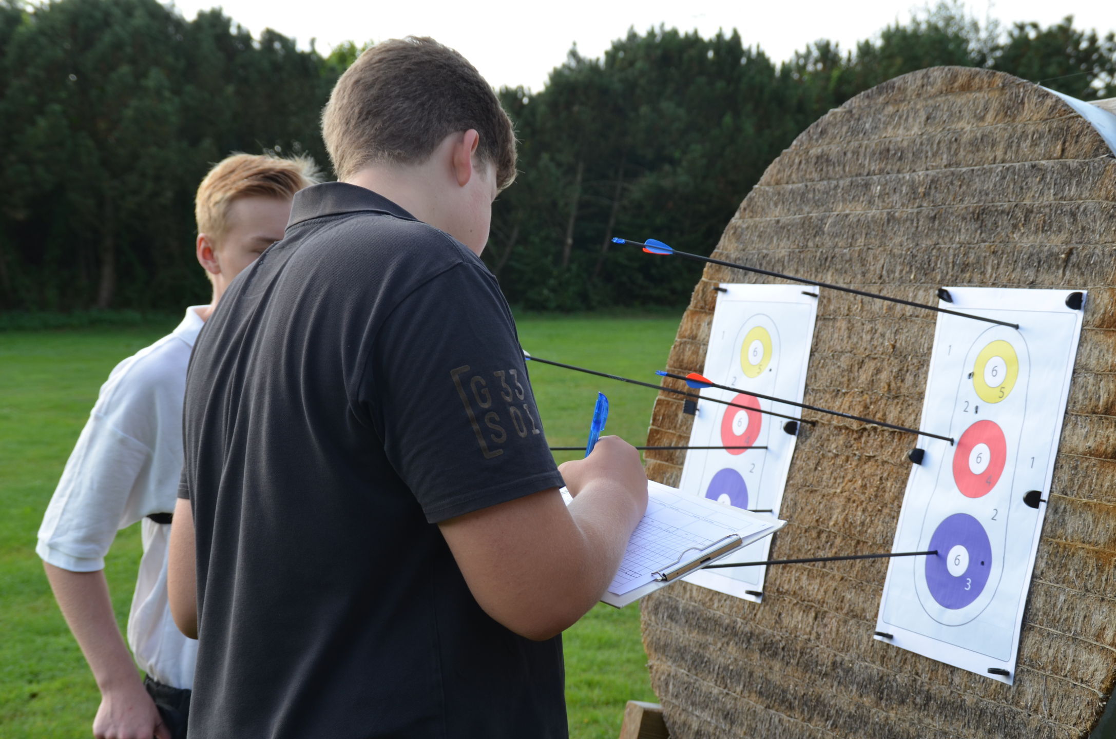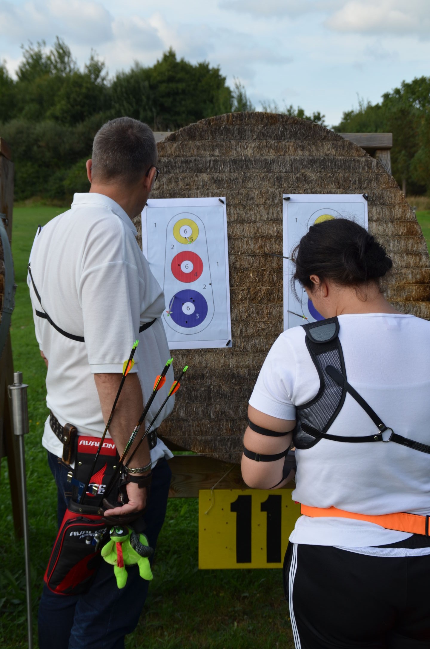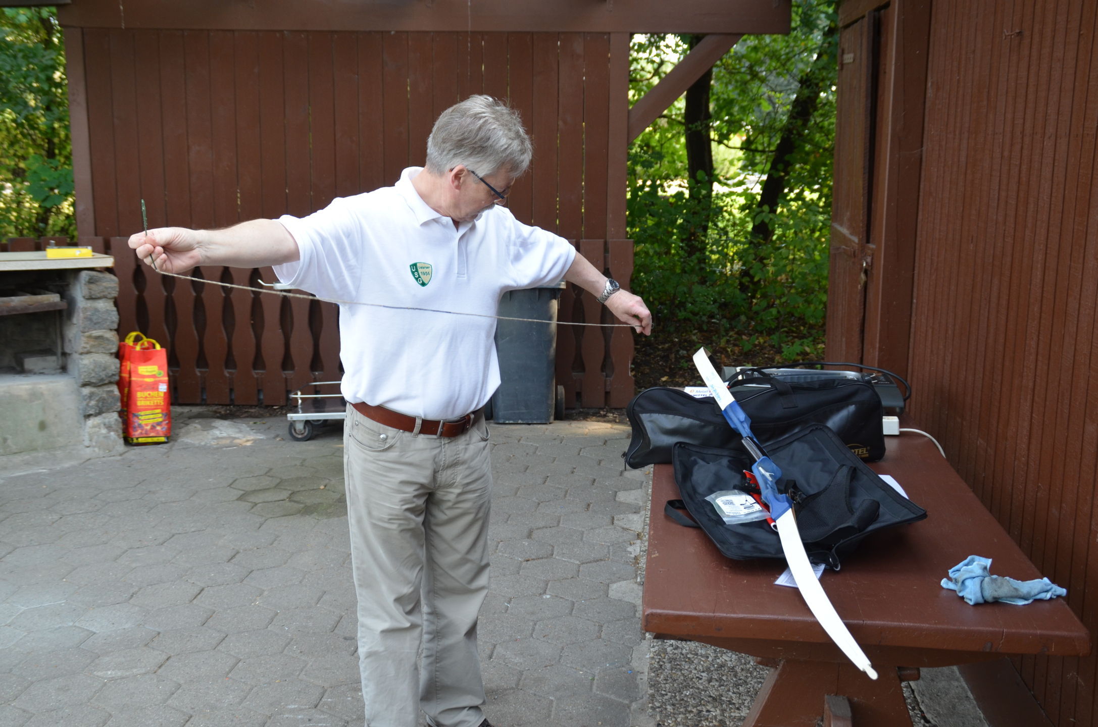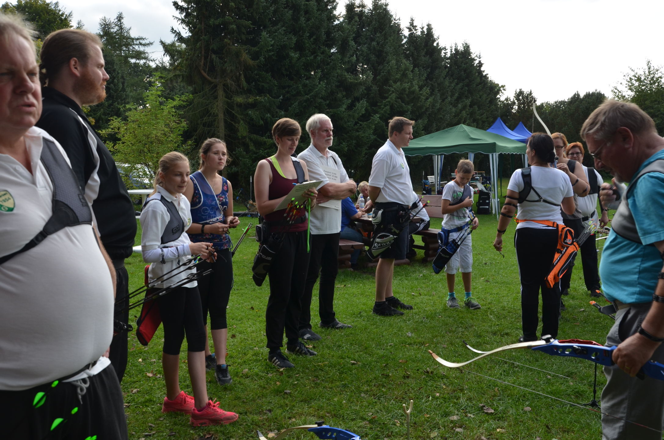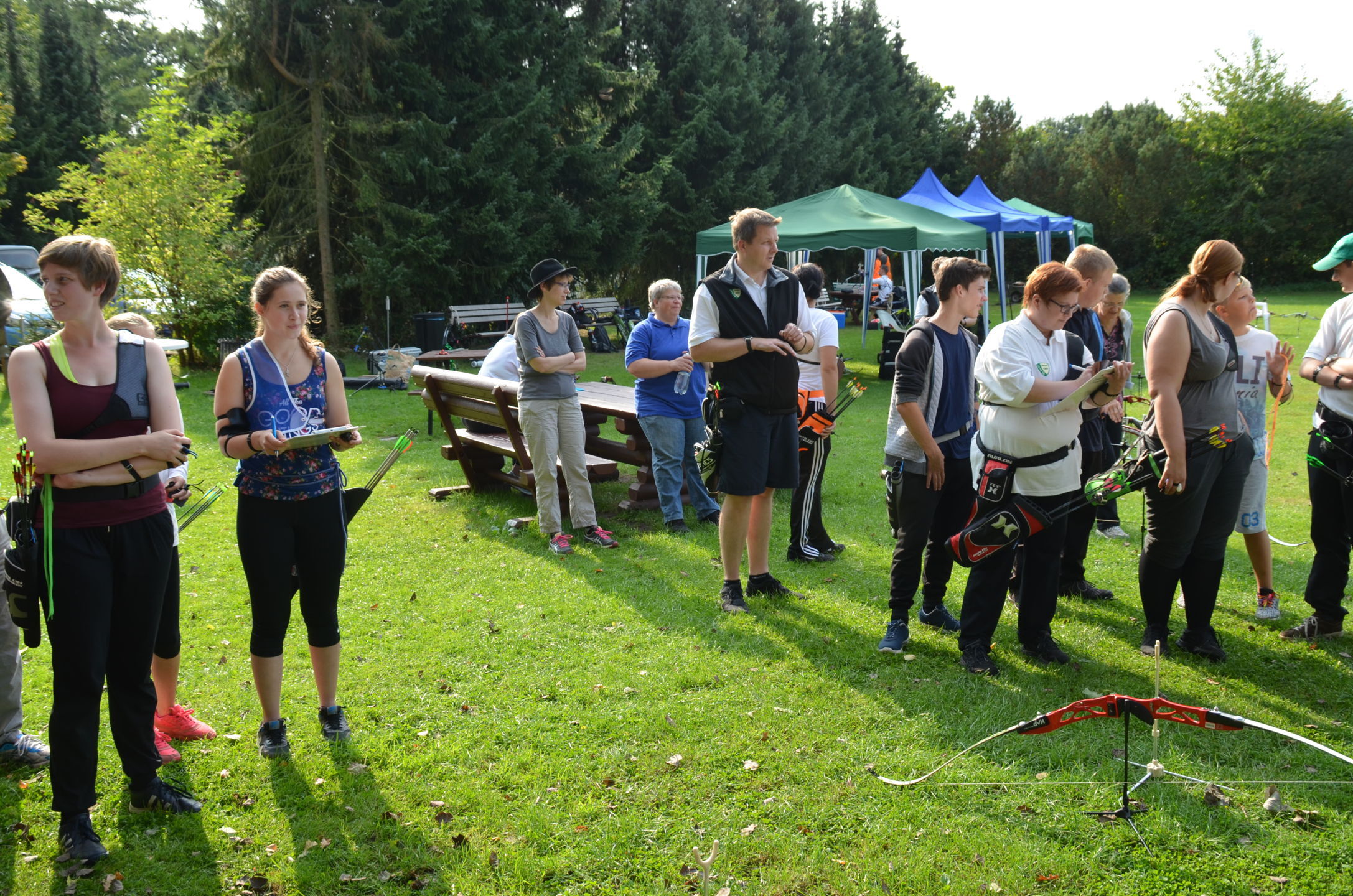 | Mit Einsetzen der Dunkelheit konnte dann das Nachtturnier beginnen, das zum 2. Mal unter dem Namen Schwarze Rose von Ueteresen ausgetragen wurde. Das Turnier wurde für manch einen Schützen zur wahren Herausforderung. Wurden die Zielscheiben doch jeweils nur durch zwei Ölfackeln beleuchtet, so trug der böige Wind dazu bei, dass einige Fackeln nur wenig unruhiges Licht auf die Auflagen fallen ließen. Dennoch war es für viele ein stimmungsvolles Erlebnis, insbesondere für die neuen Schützen, die hier ihr erstes Turnier bestritten. |