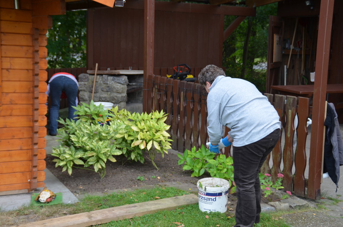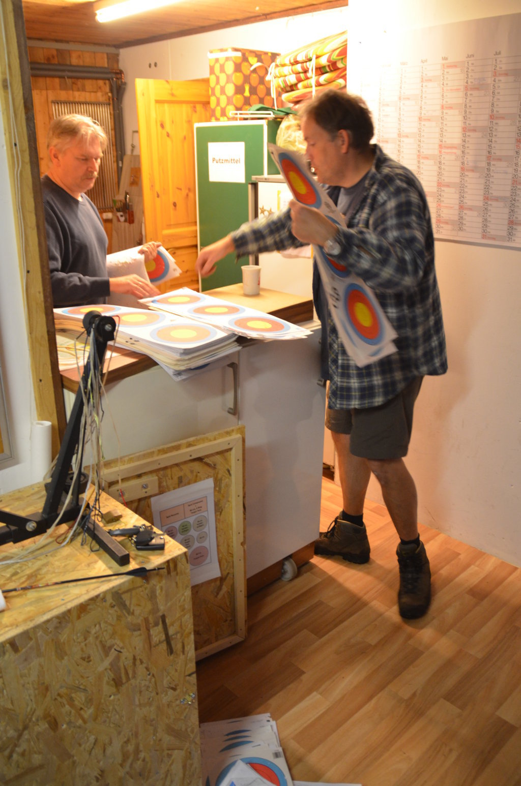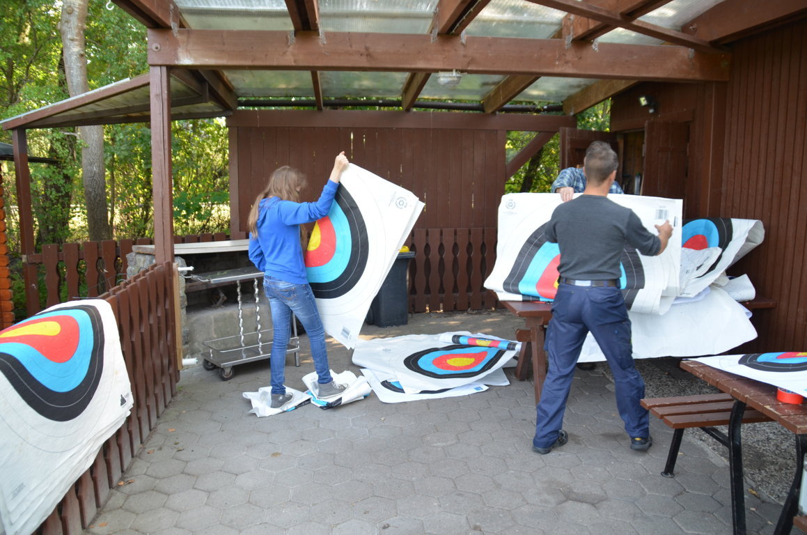 Nicht nur alle Jahre wieder, sondern zweimal im Jahr wird der Arbeitsdienst auf dem Bogenplatz erforderlich: im Frühjahr und im Herbst. So fanden sich auch am 24. September wieder 26 Mitglieder der Bogenabteilung auf dem Gelände ein. Einerseits waren Scheiben und Ständer vor dem Winter ins trockene Lager zu verbringen, andererseits gab es auch zahlreiche Arbeiten rundherum im weitreichenden Gelände und an den Aufbauten auszuführen. |