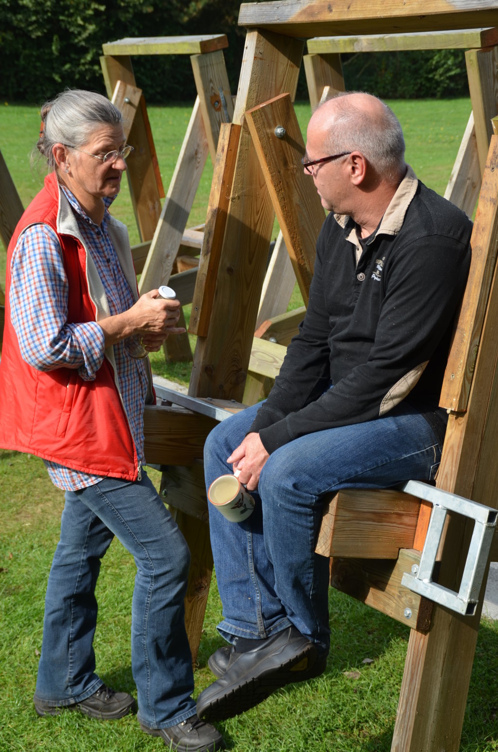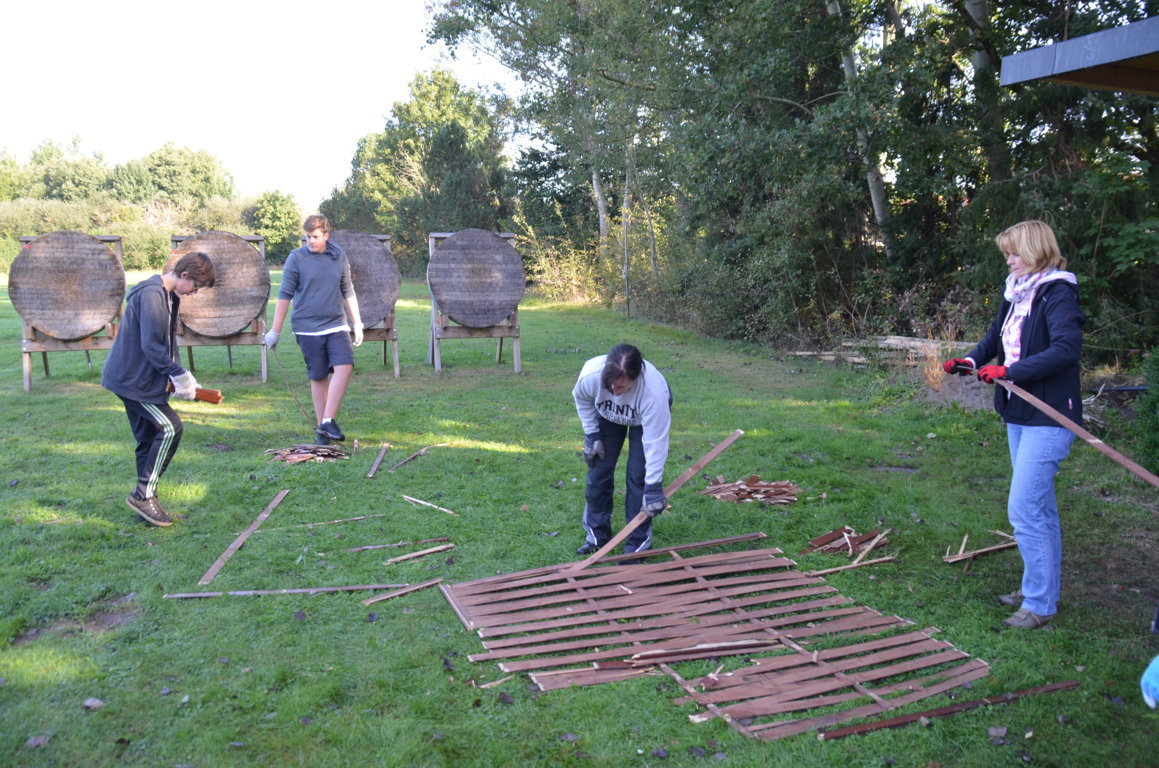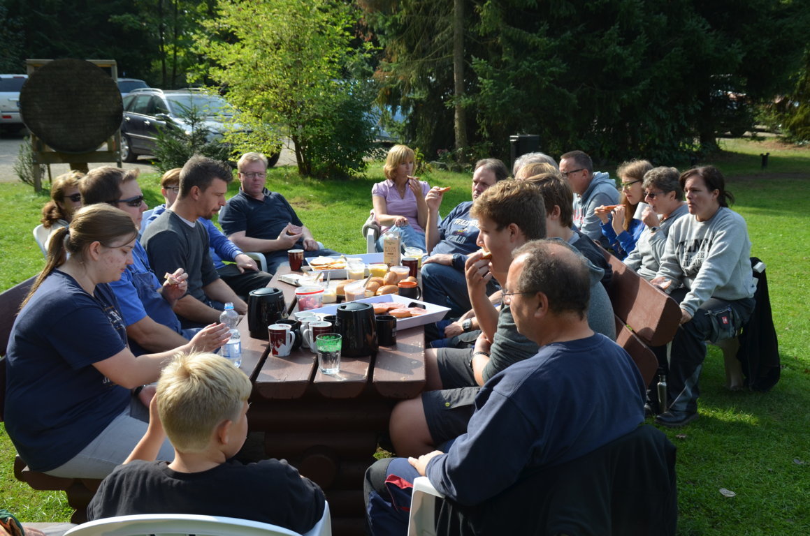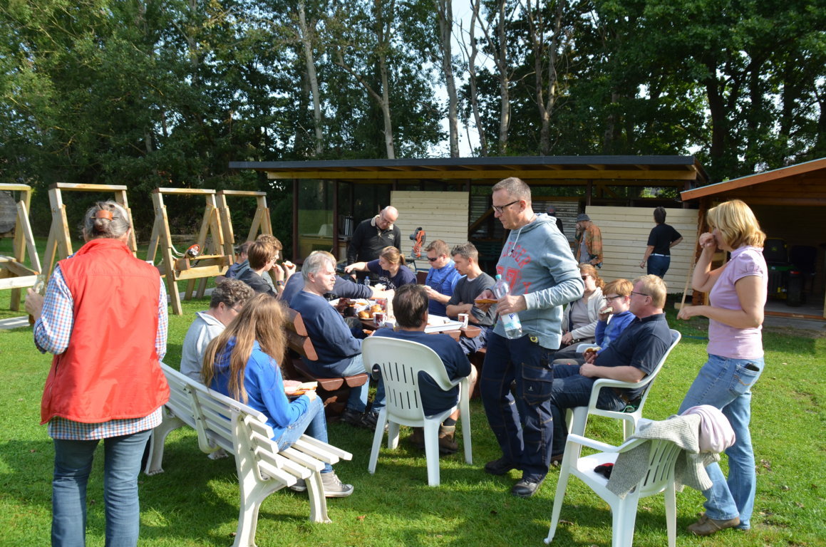 Nicht nur alle Jahre wieder, sondern zweimal im Jahr wird der Arbeitsdienst auf dem Bogenplatz erforderlich: im Frühjahr und im Herbst. So fanden sich auch am 24. September wieder 26 Mitglieder der Bogenabteilung auf dem Gelände ein. Einerseits waren Scheiben und Ständer vor dem Winter ins trockene Lager zu verbringen, andererseits gab es auch zahlreiche Arbeiten rundherum im weitreichenden Gelände und an den Aufbauten auszuführen. |