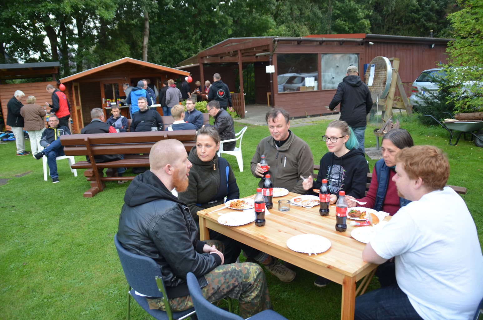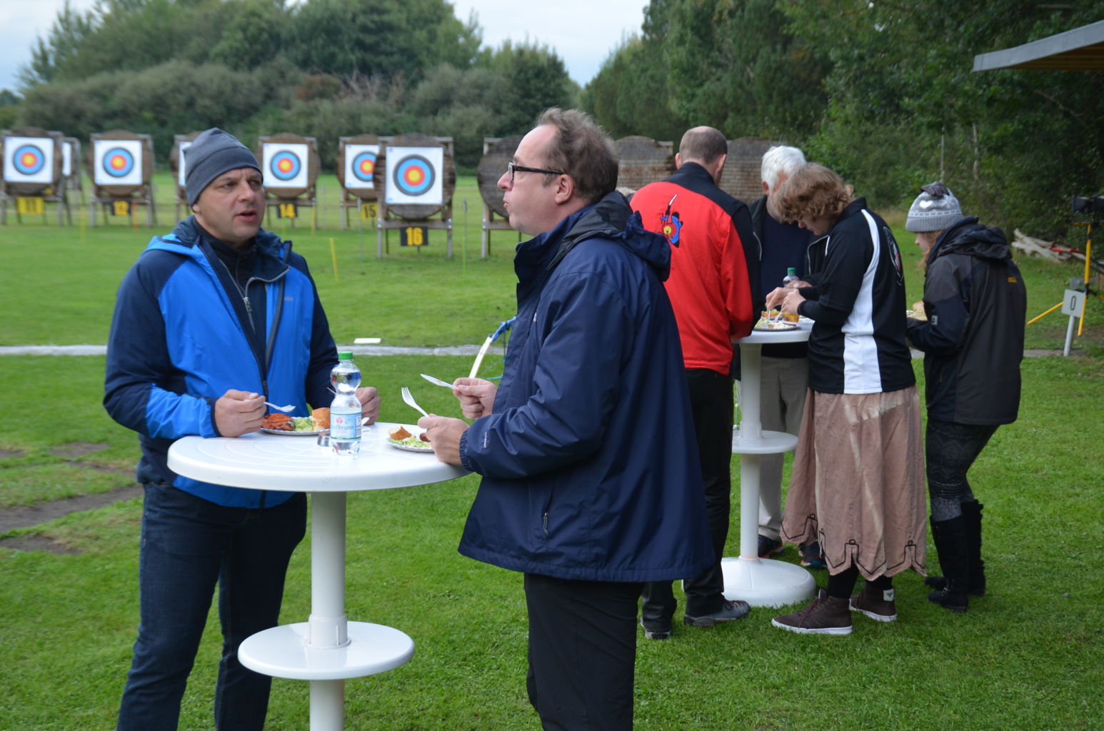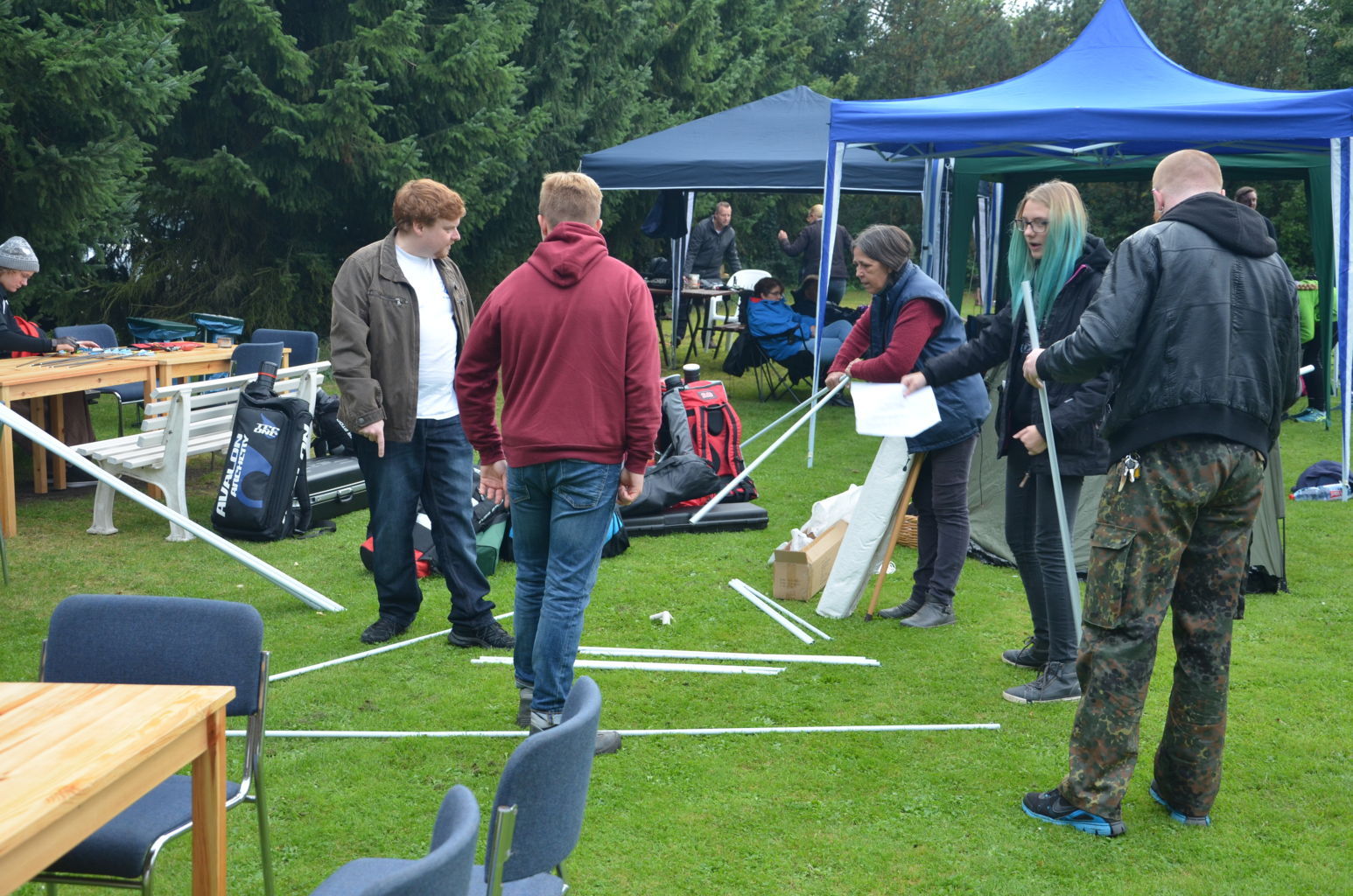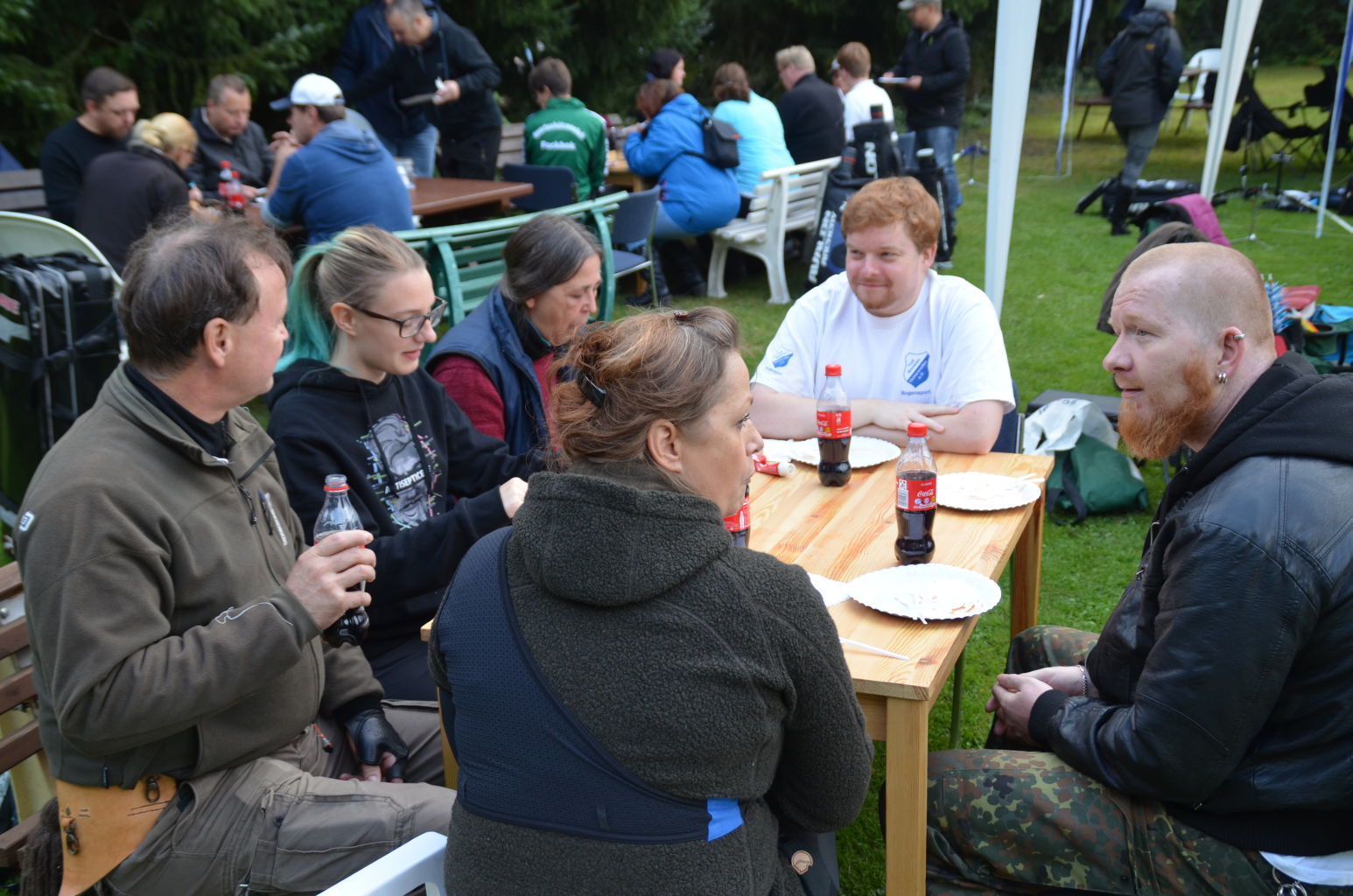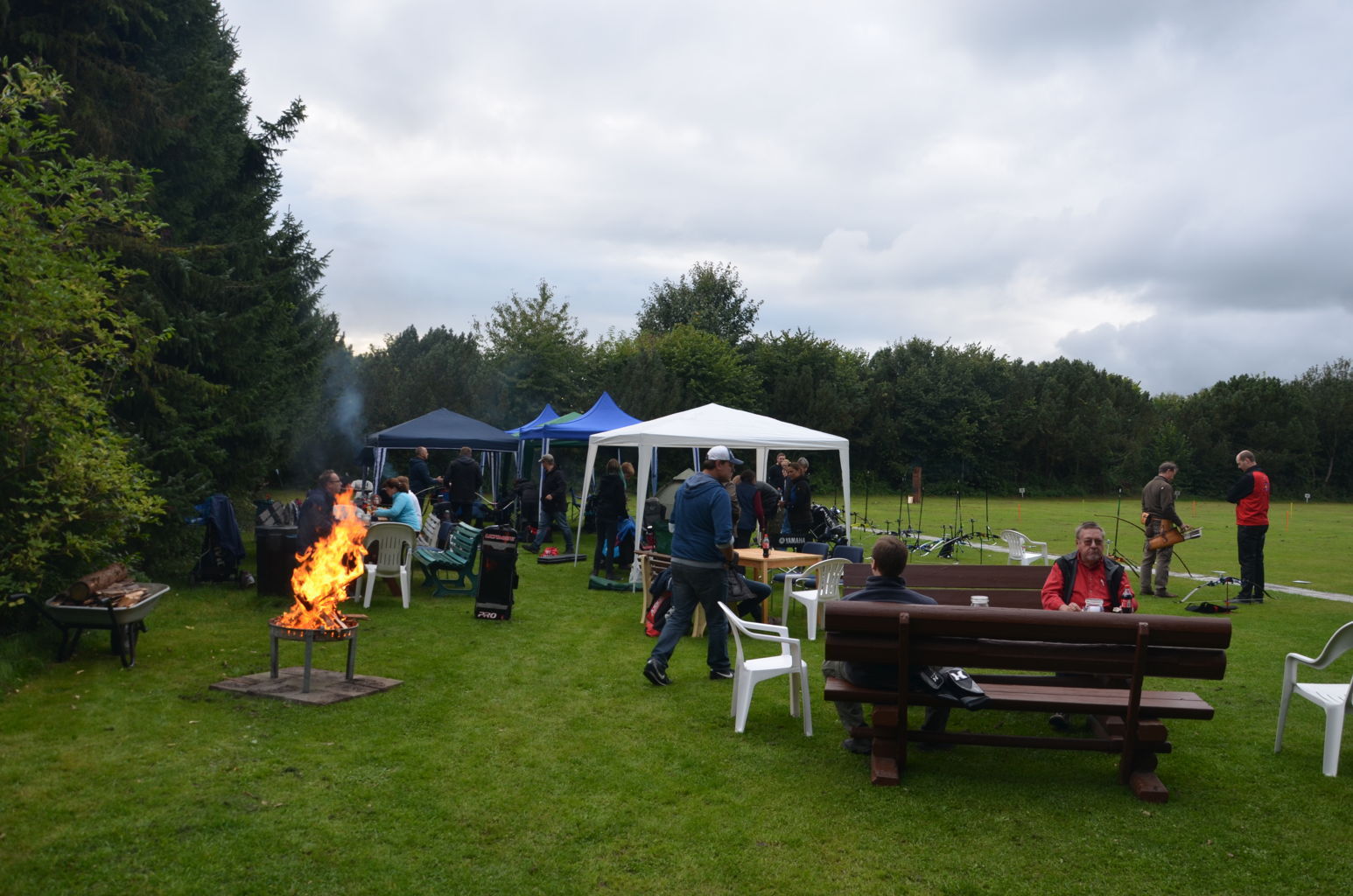 | Sukzessive trafen dann auch andere Teilnehmer für das Nachtturnier ein, bauten ihre Pavillons und Bögen auf. Die USG Helfer empfingen alle Teilnehmer und bereiteten das gemeinsame Grillen vor. |