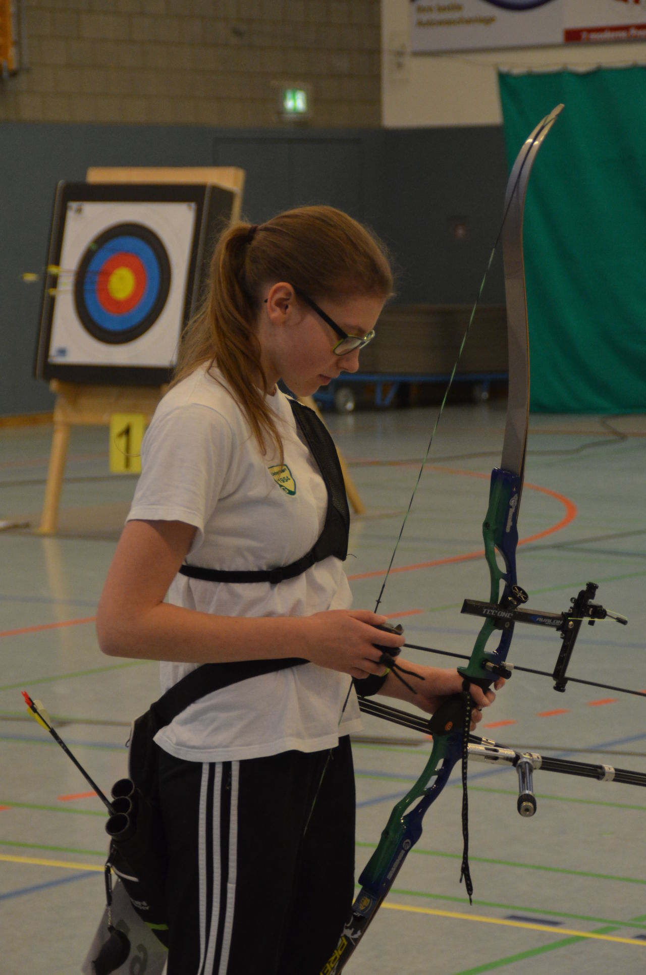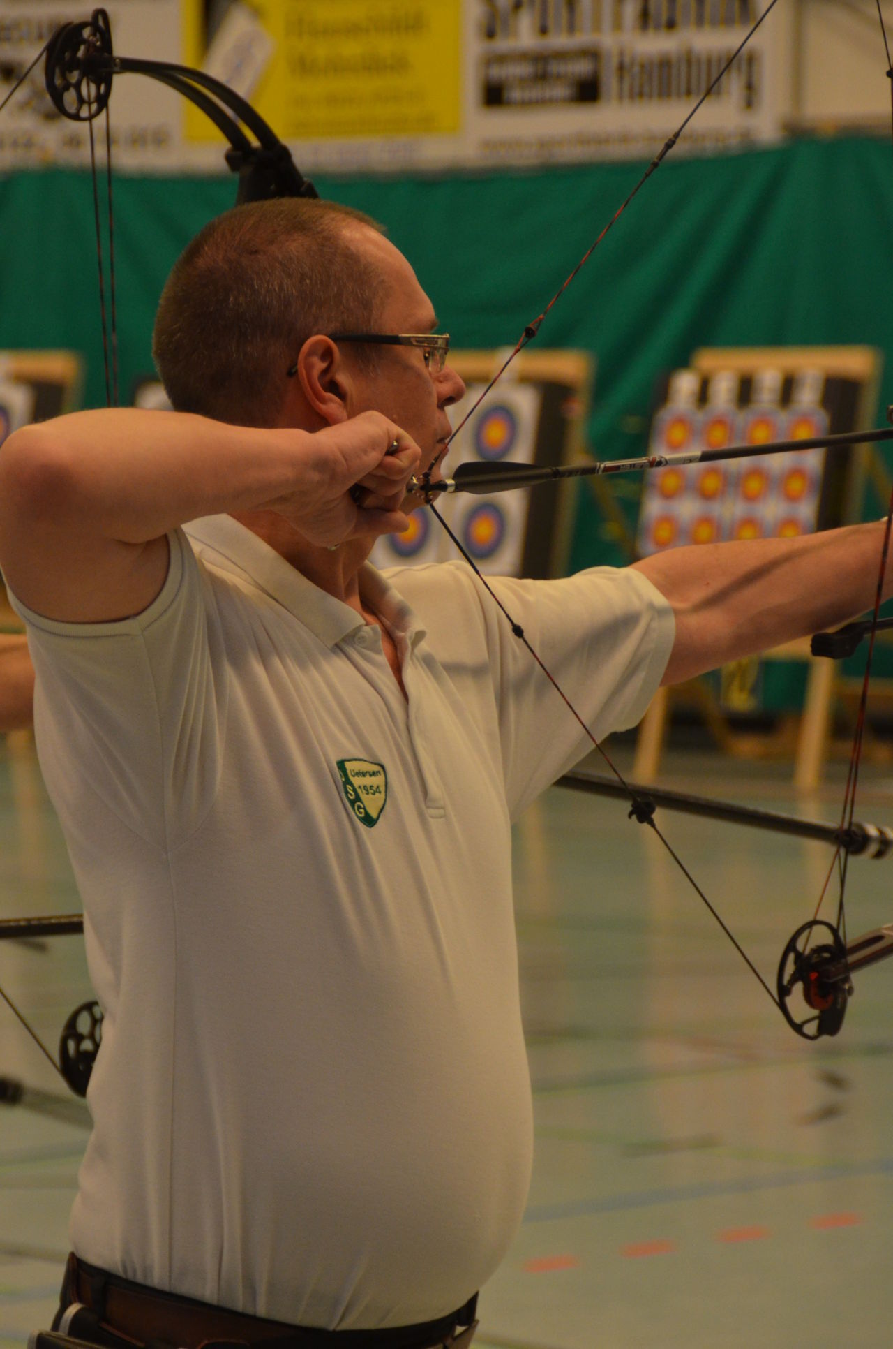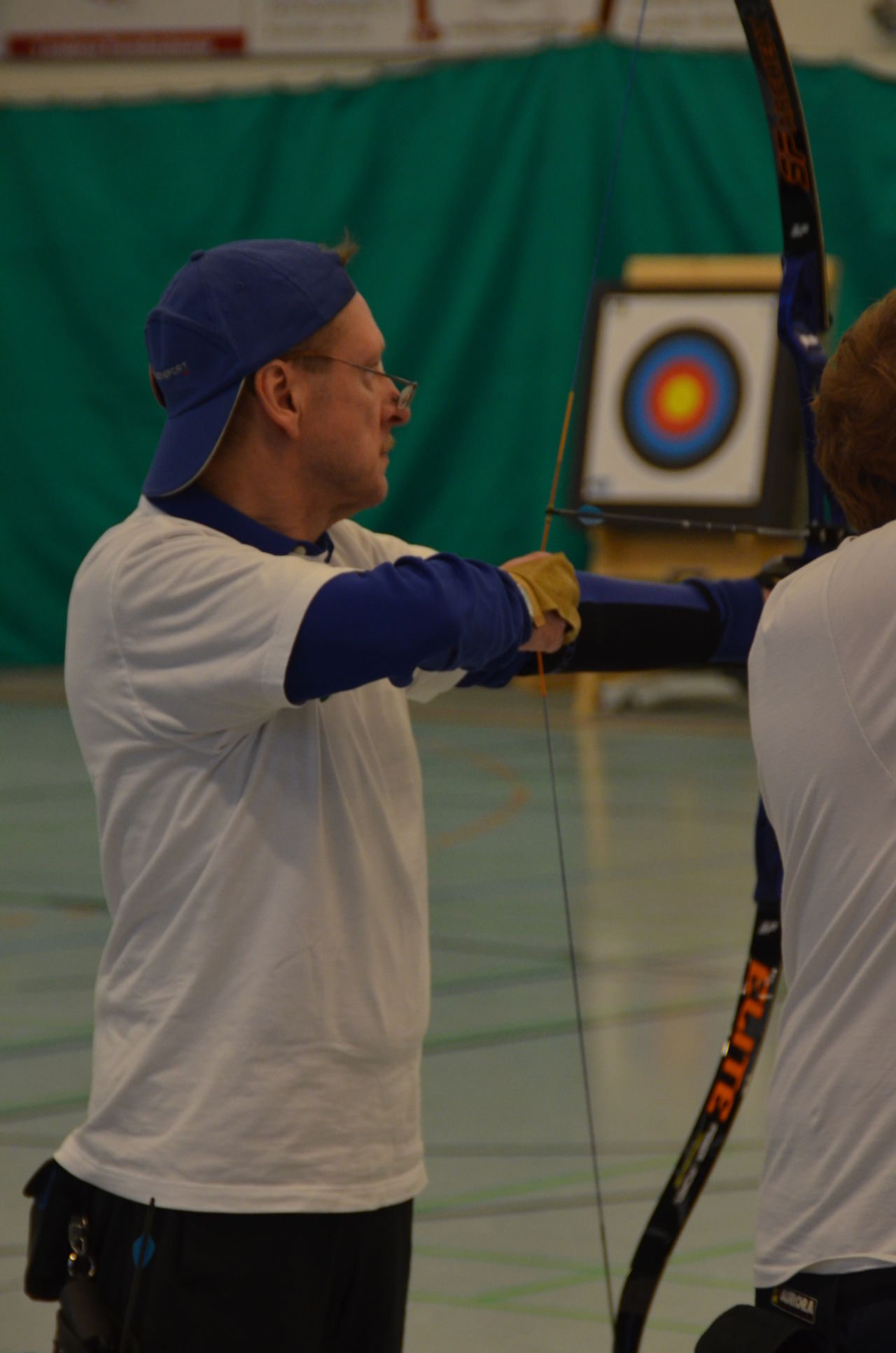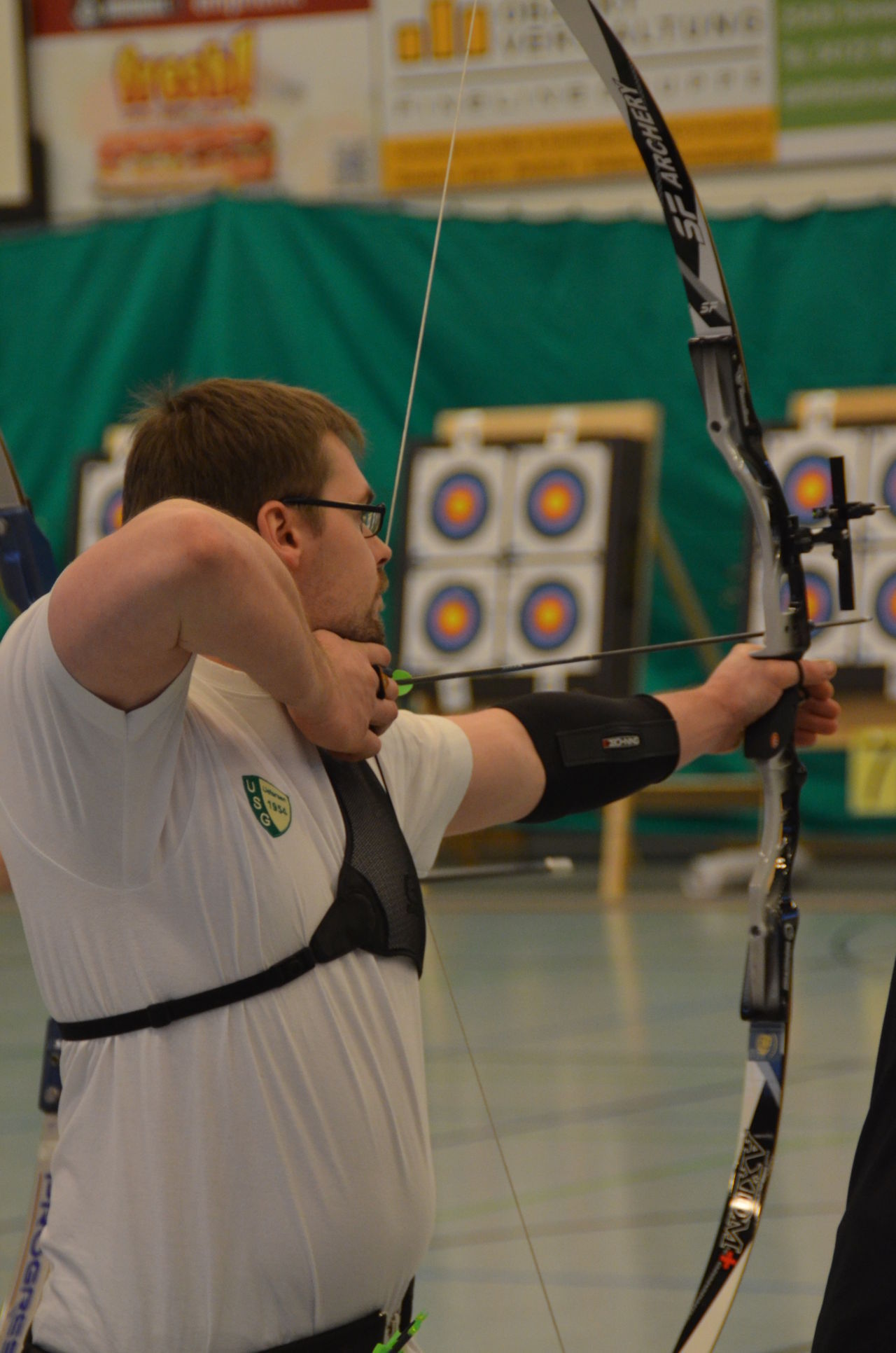 | Am Samstag wurde dann mit inzwischen viel Erfahrung der Aufbau der Scheiben und des Fangnetzes, das Markieren der Schießlinie usw. vorgenommen, nachdem das Material von der Trainingshalle und der Vereinshütte zur Sporthalle der KGST gebracht war. |