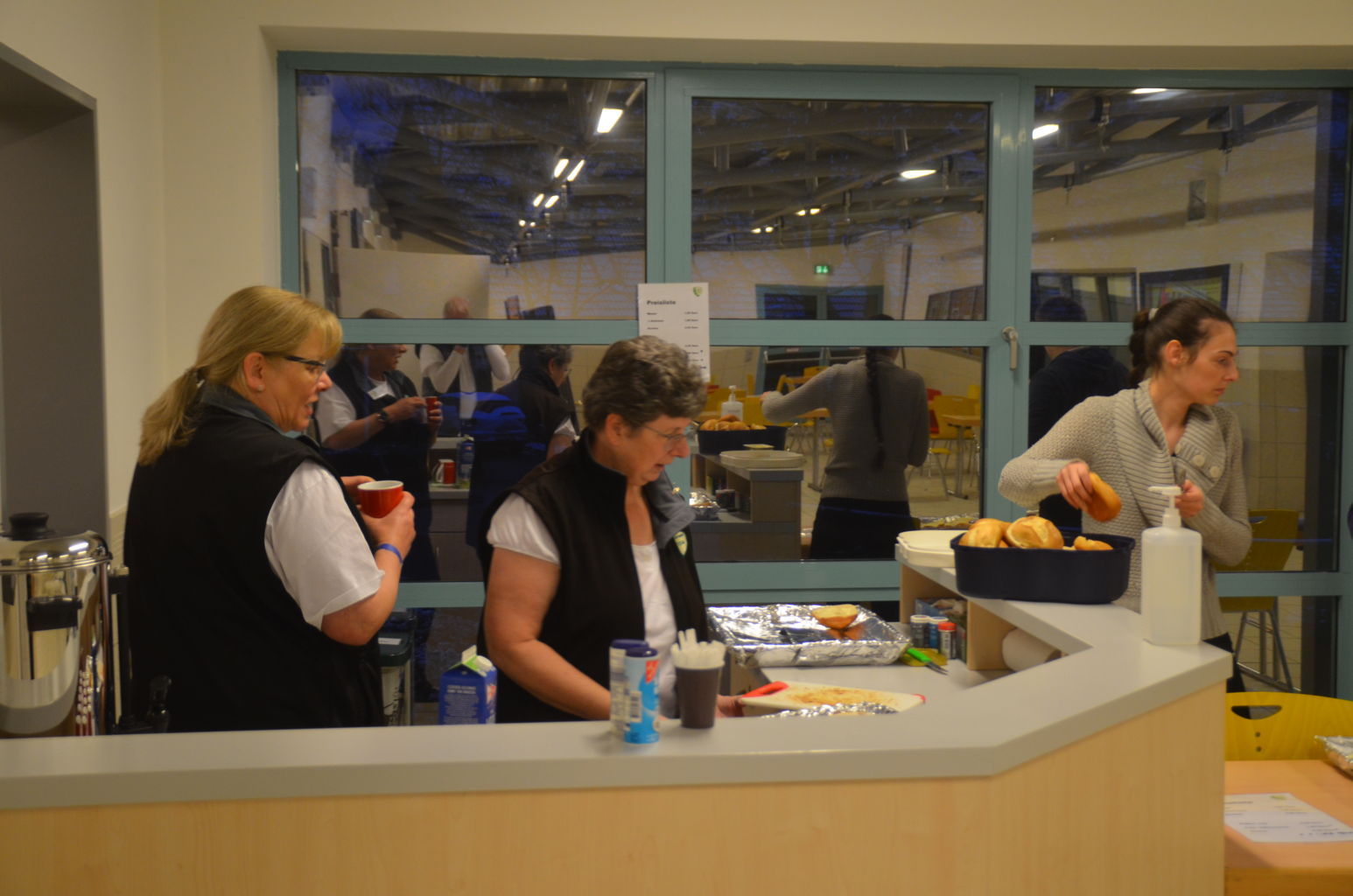 Das Team an Helfern war schon früh zur Halle gekommen, um die letzten Vorbereitungen zu treffen, damit beim Eintreffen der ersten Schützen auch Kaffee und Brot zur Verfügung standen.