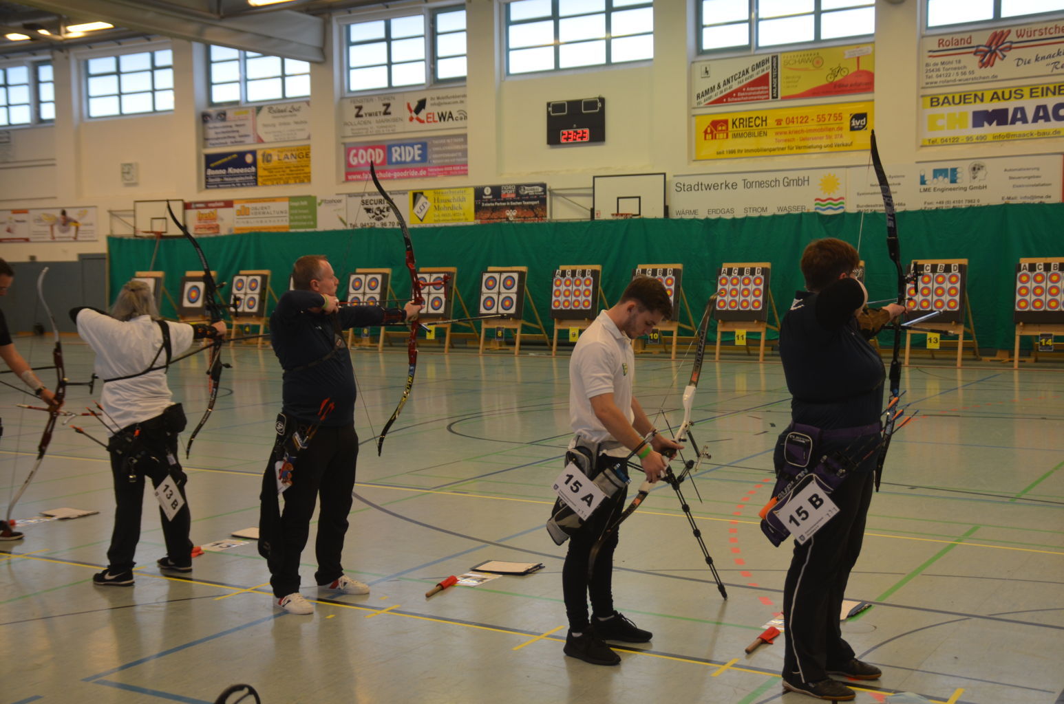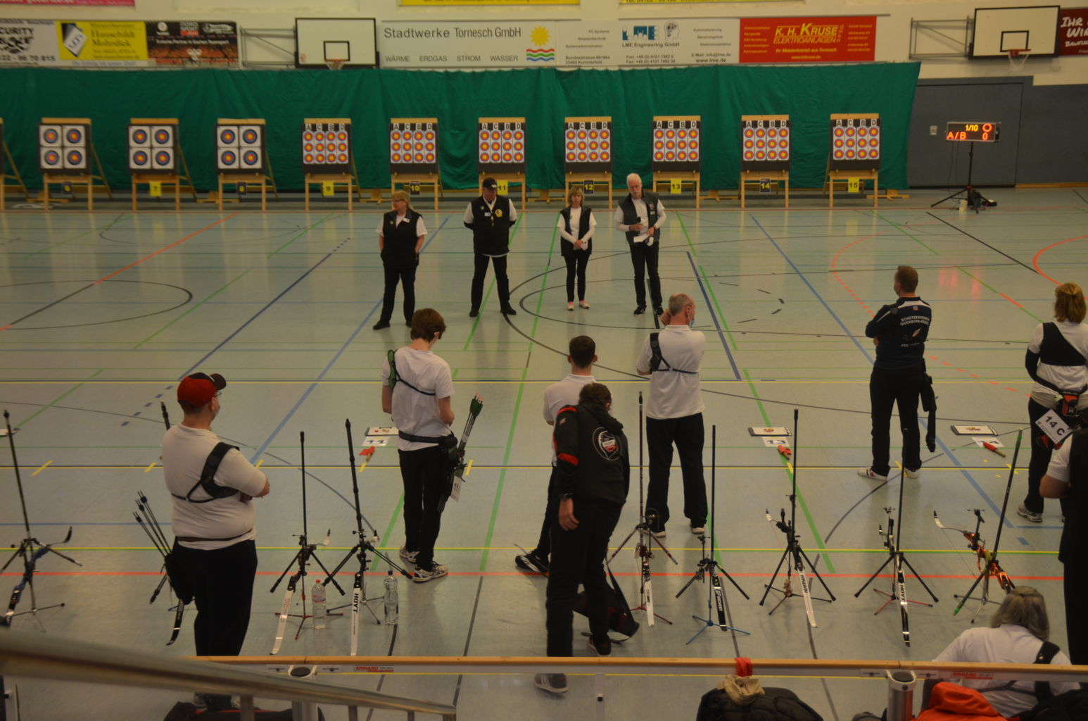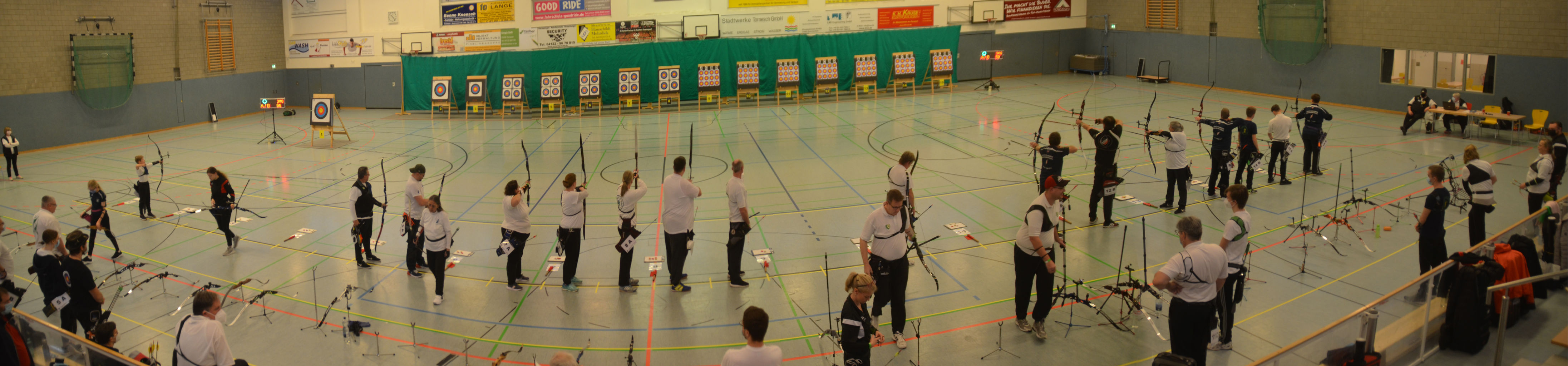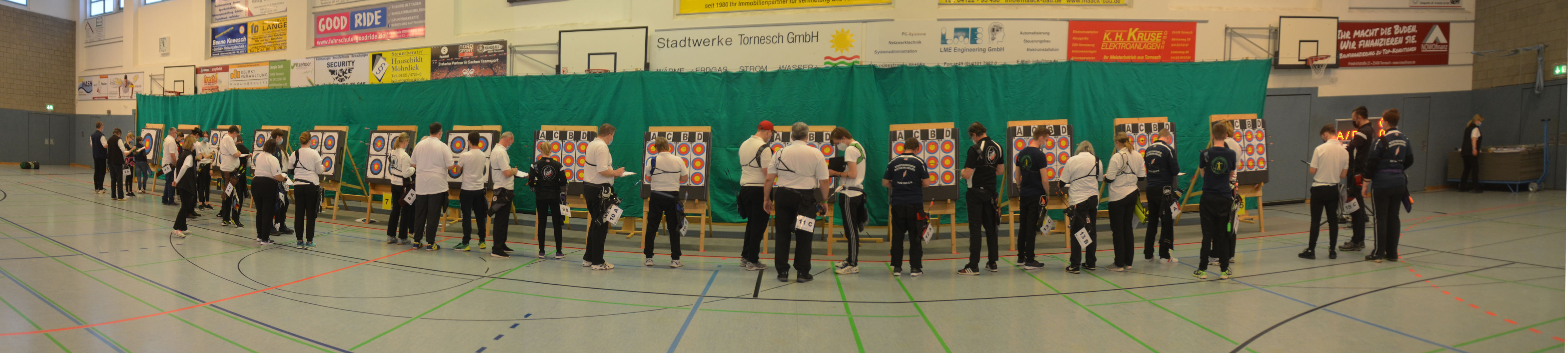 Eine Woche nach der Vereinsmeisterschaft konnte dann auch die Kreismeisterschaft (KM) Bogen Halle 2022 geschossen werden. Fast schon traditionell richtete auch wieder unser Verein die Meisterschaft am 05.12.2021 in der Sporthalle der KGS Tornesch aus. Das Verbringen und Aufstellen von Böcken und Scheiben, das Kleben von Markierungen erfolgte routiniert bereits am Vortag.