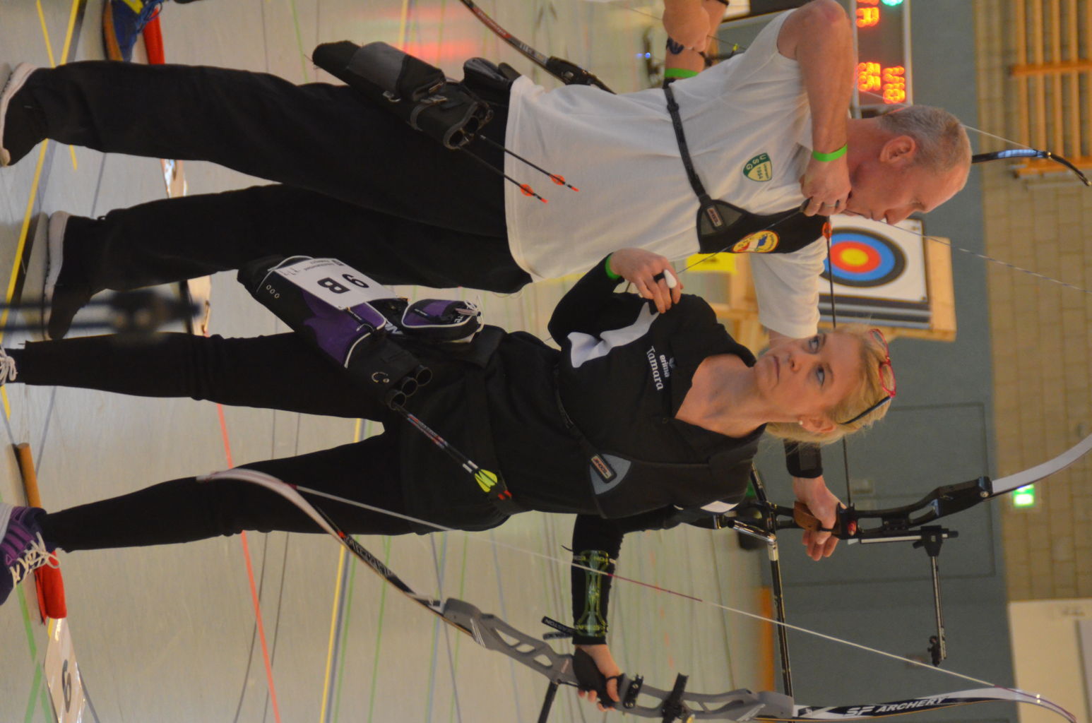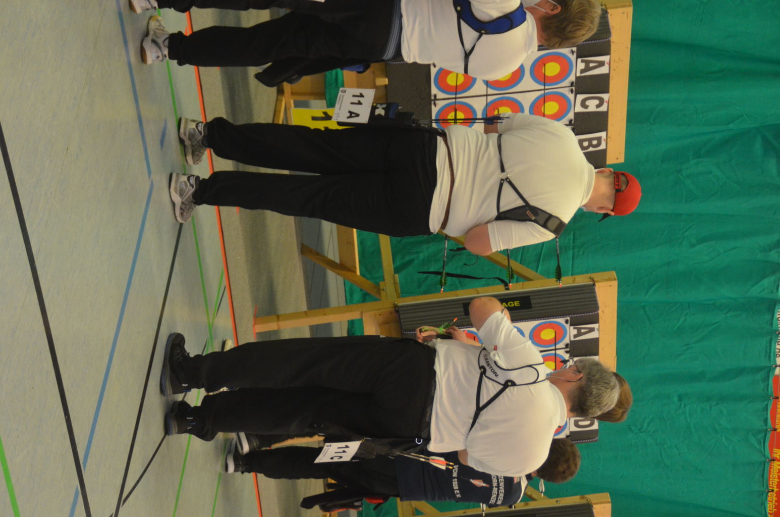 Die Begrüßung erfolgte durch Otto (Kreisbogenreferent) und Thomas u. Sonja (ausrichtender Verein). Da wir dieses Jahr keinen Kampfrichter hatten, der den Wettkampf kontrollierte, standen zu dieser Meisterschaft Evi und Thomas z.B. zur Entscheidung von Treffern den Schützen zur Verfügung. Es folgte das 20 minütige Einschießen. Danach konnte der erste Durchgang des Wettkampfes beginnen.
