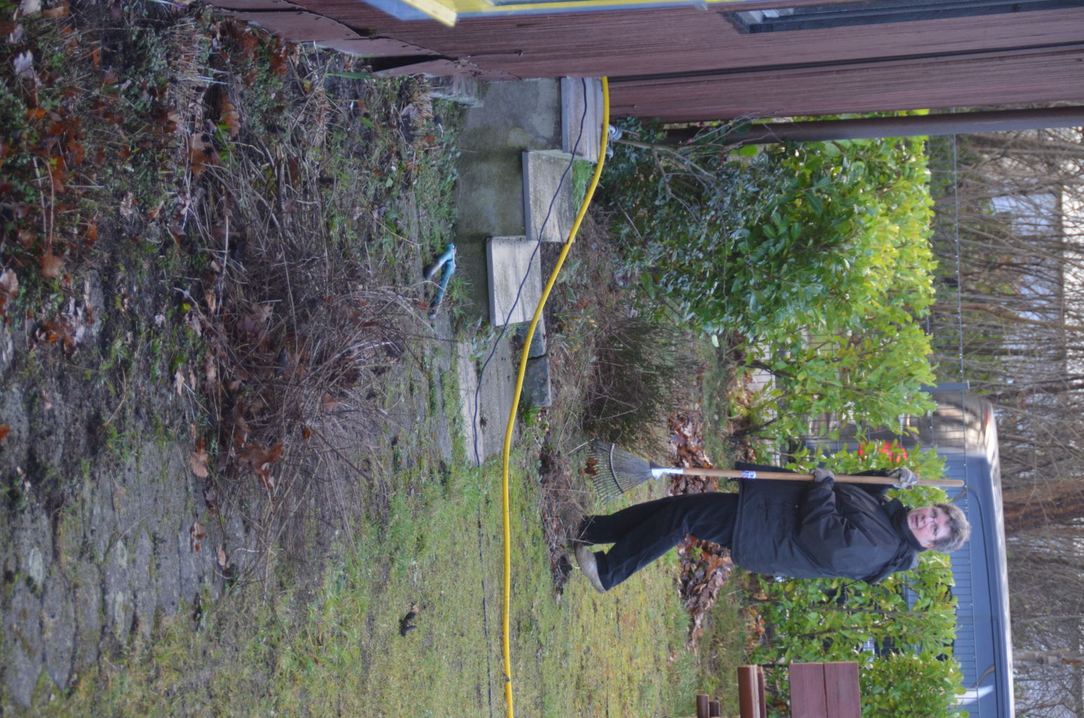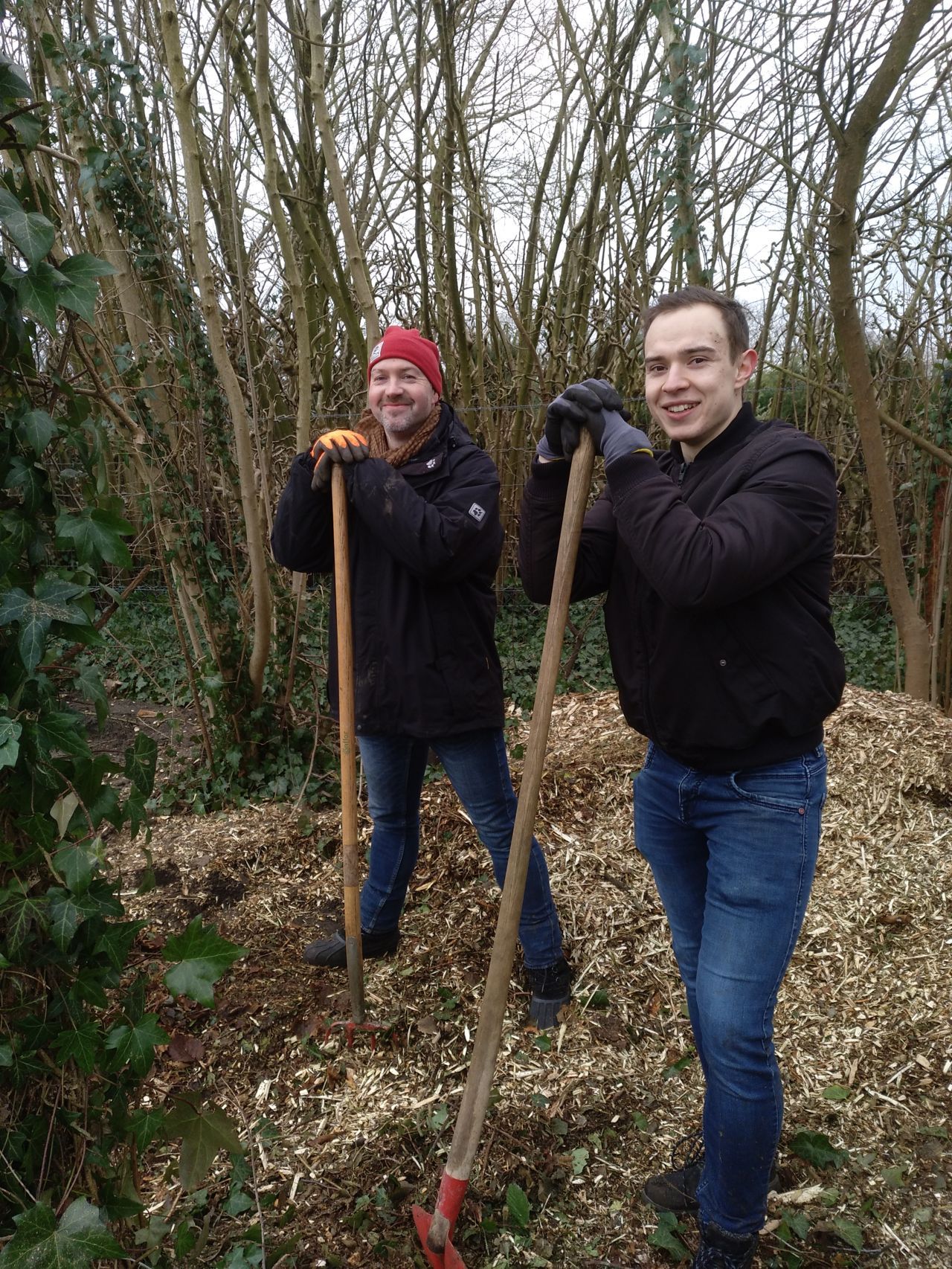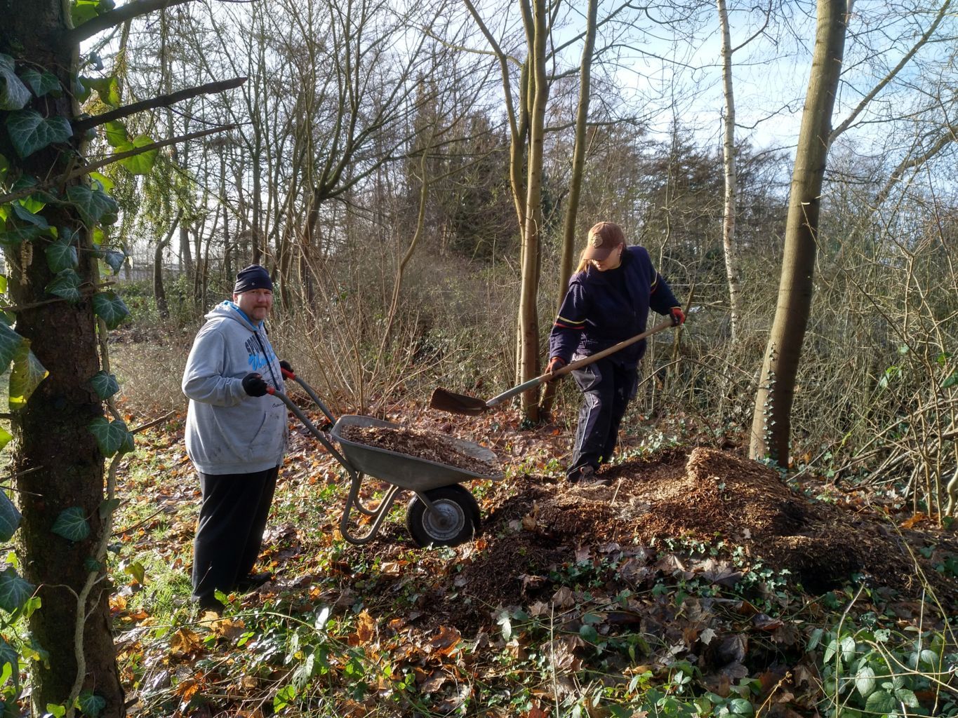 | Die Fläche neben der Hütte wurde geebnet und mit Mulch bedeckt, so dass sie so für eine weitere Bepflanzung im Frühjahr vorbereitet ist. |
