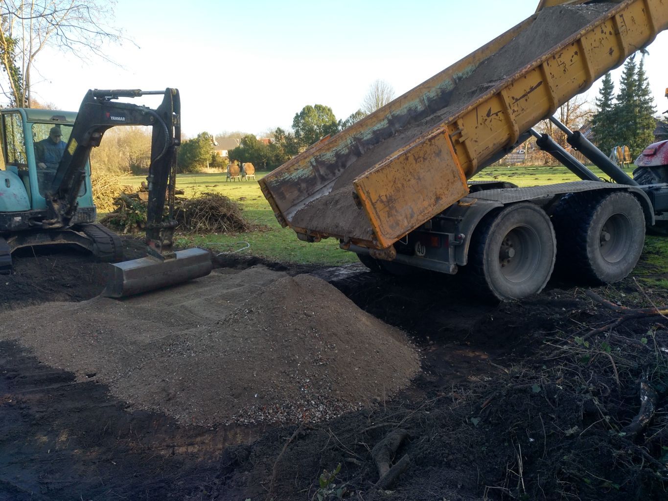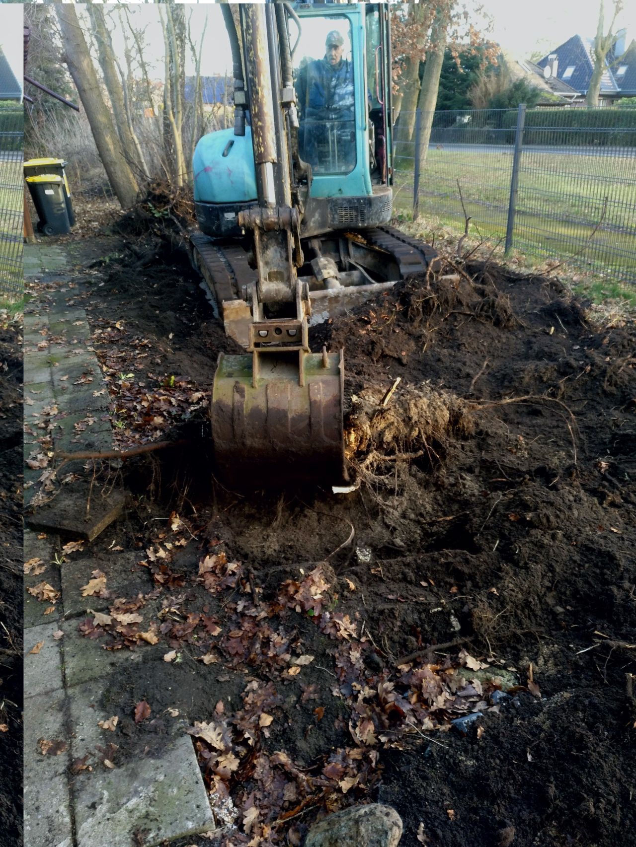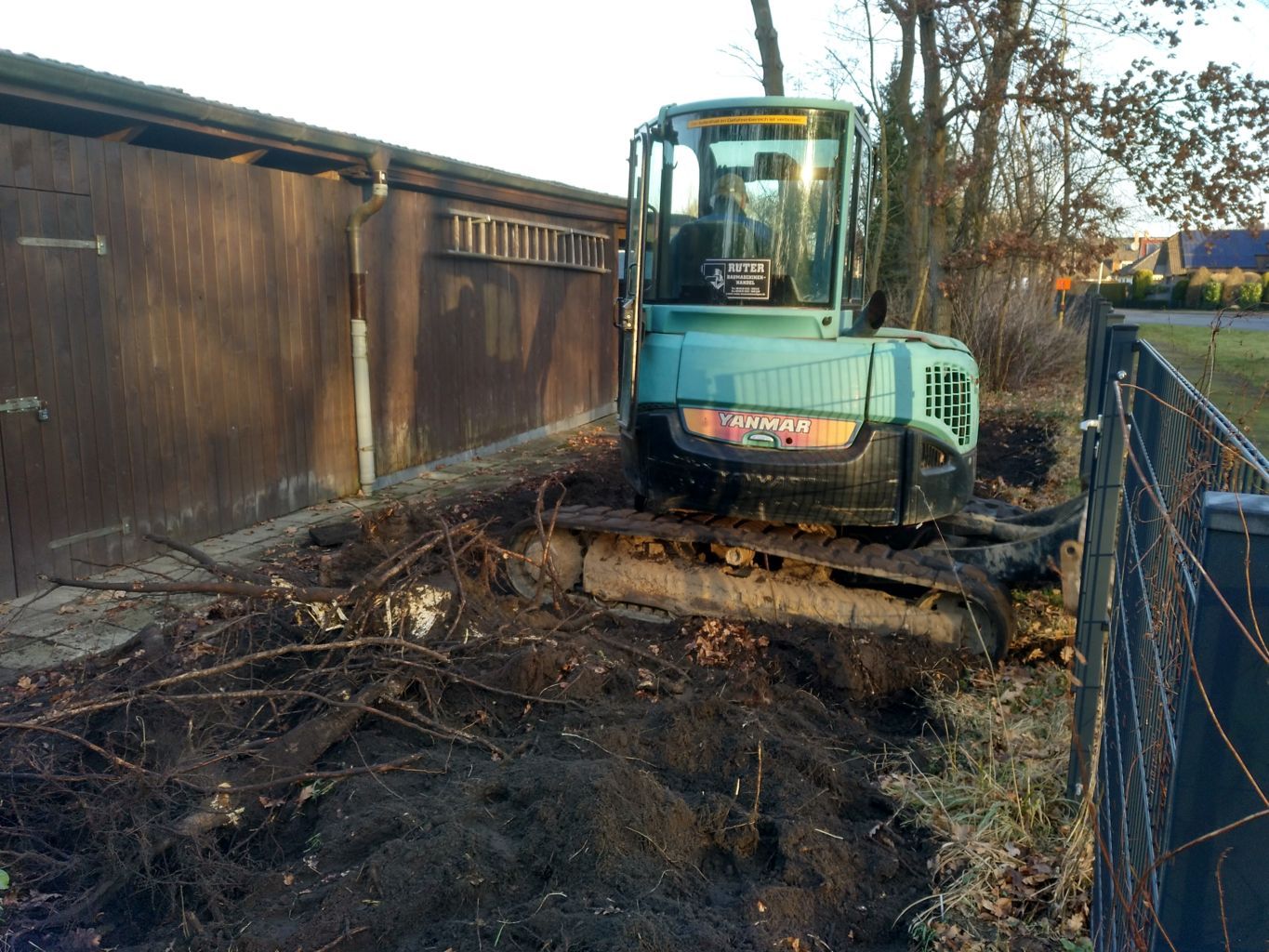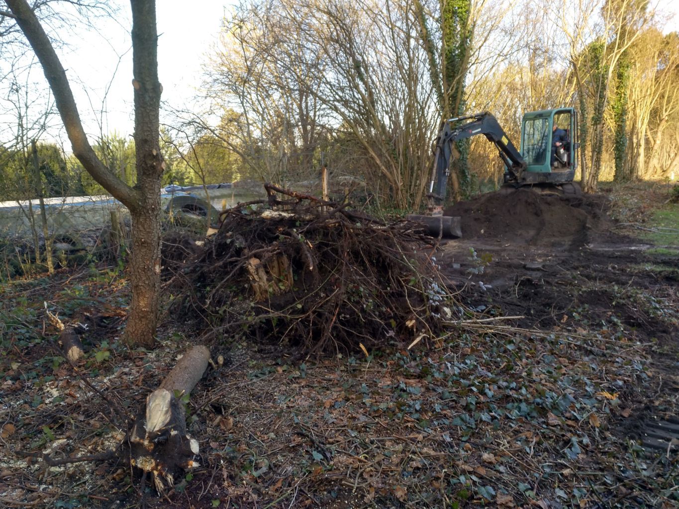 Auch das Wurzelwerk der Pappeln, die bereits 2019 gefällt worden waren, und neben der Hütte standen, wurden vom Bagger aus der Erde geholt. |