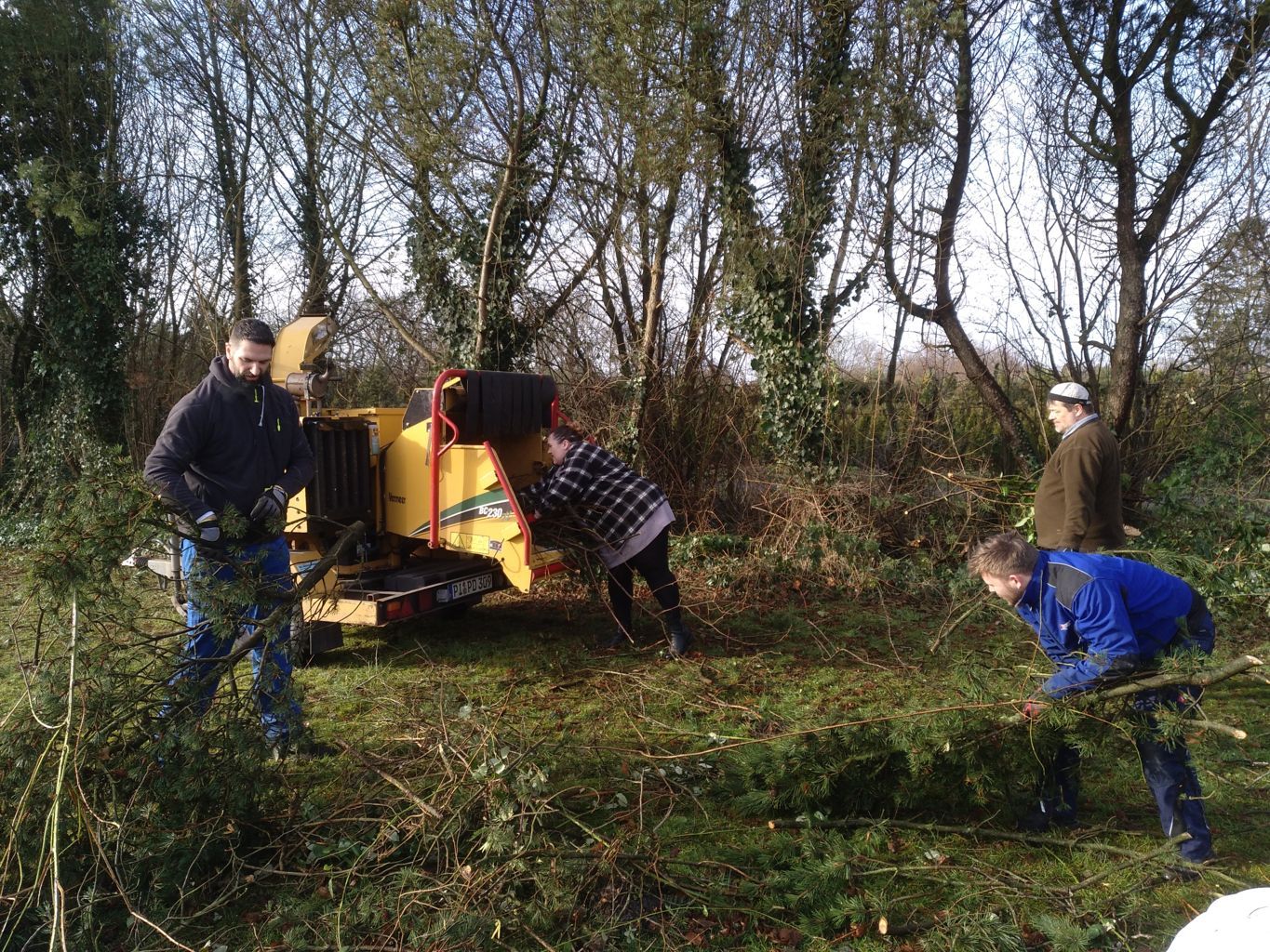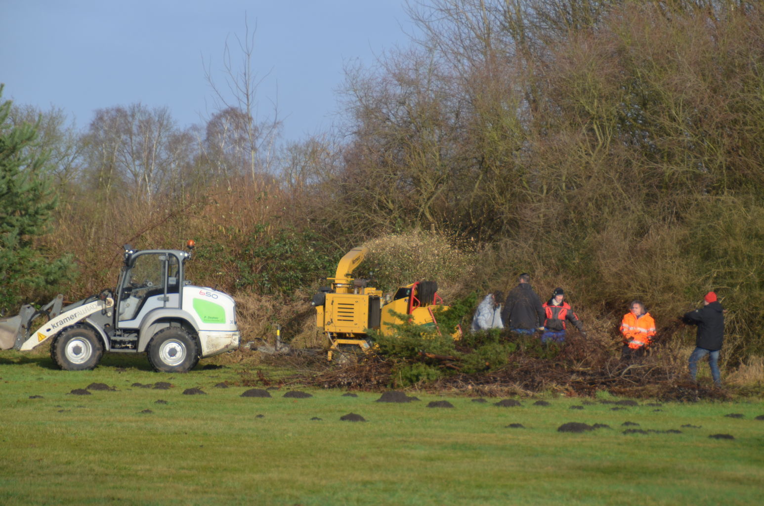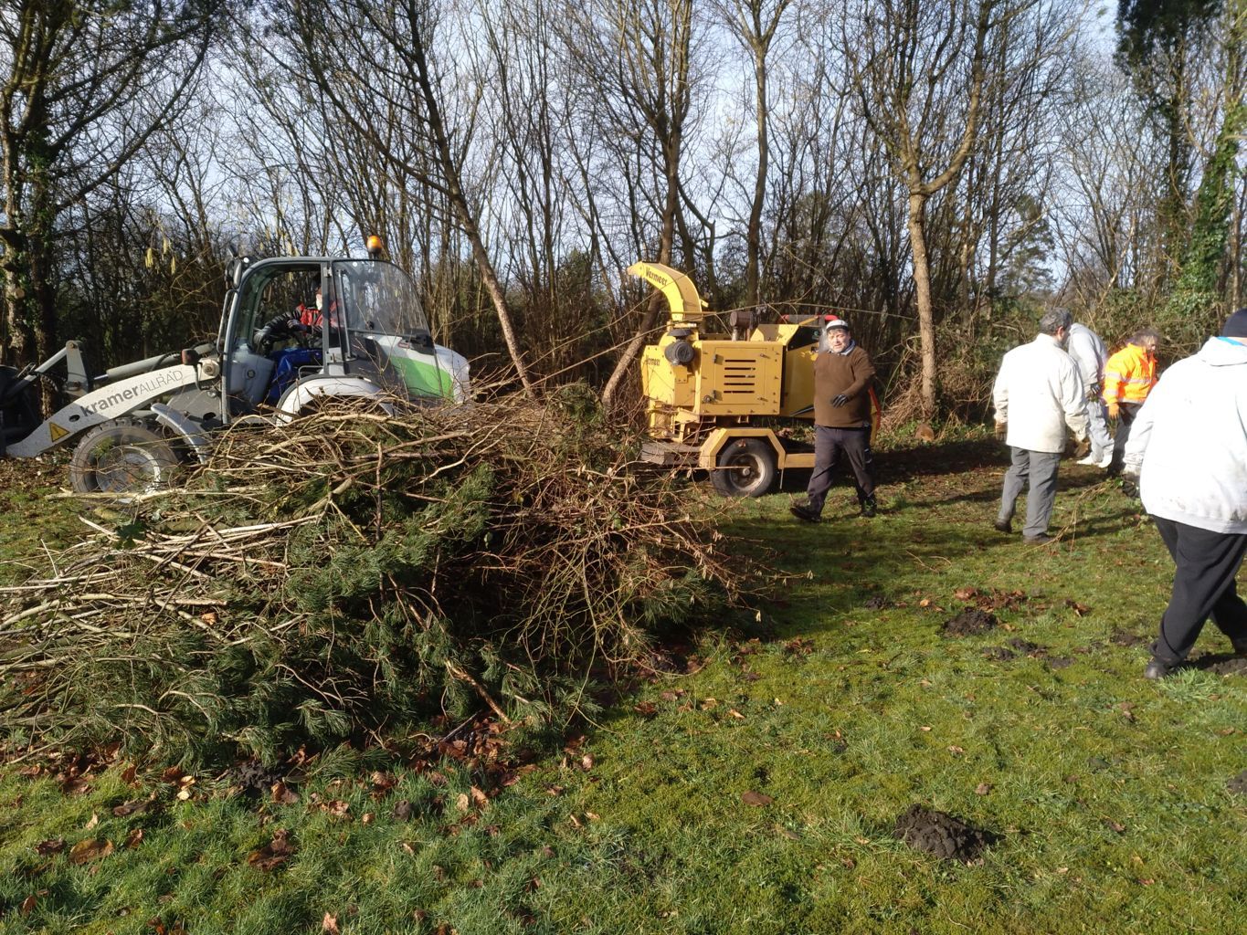 Am 5. Februar 2022 waren die Vereinsmitglieder aufgerufen, das Holz zu schreddern. In den Tage davor war das Wetter stürmisch und regnerisch gewesen, zu diesem Arbeitsdienst schien - wie bestellt - die Sonne. |