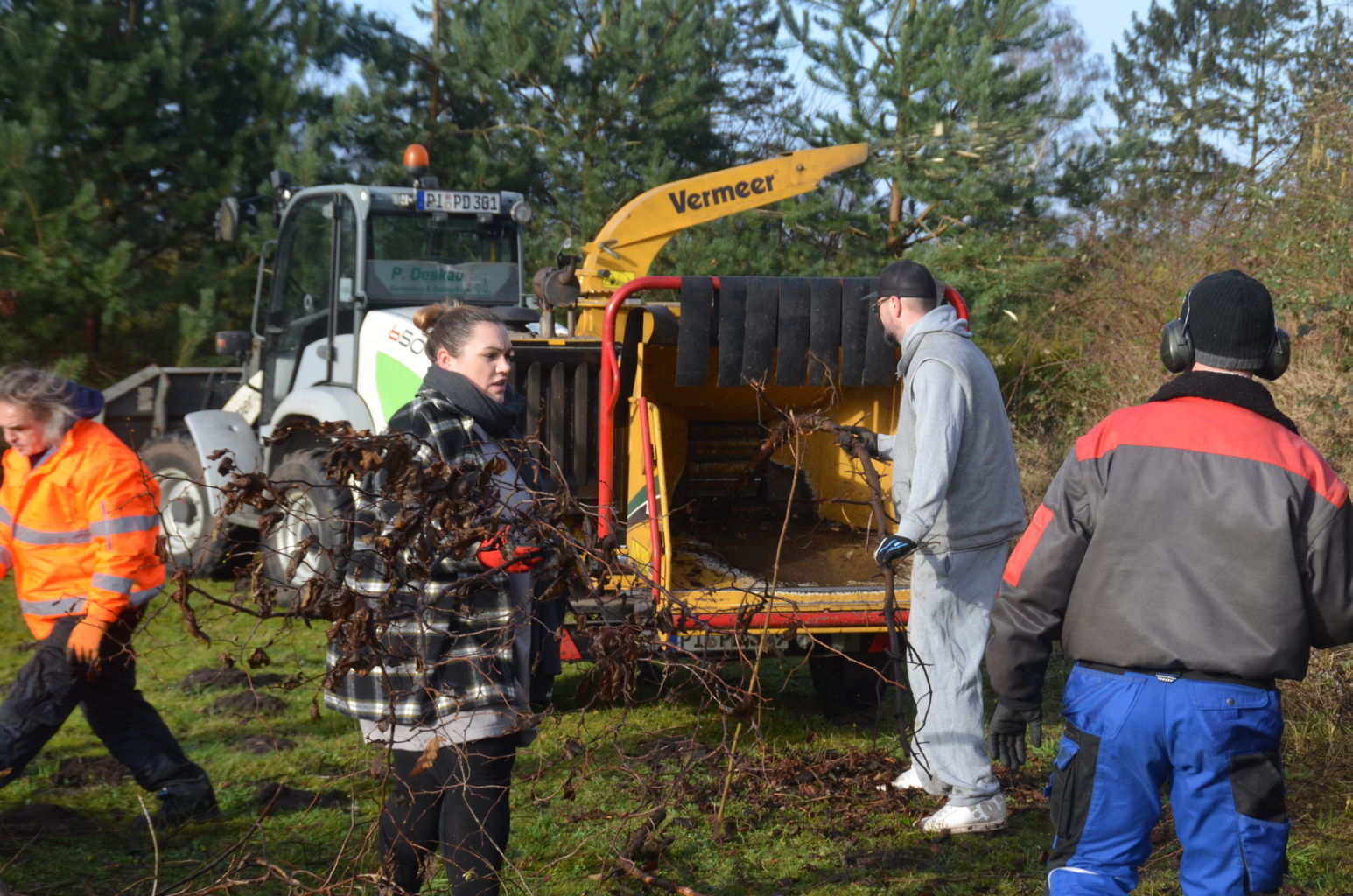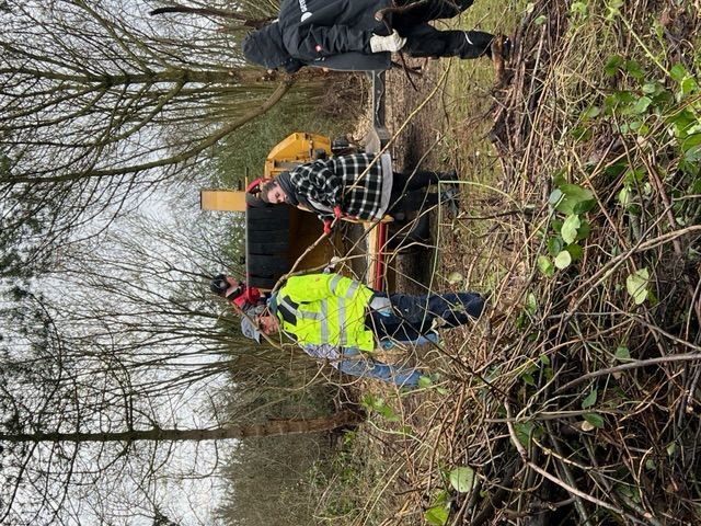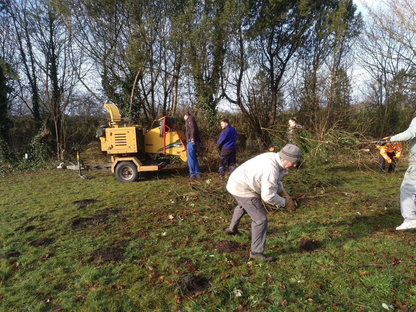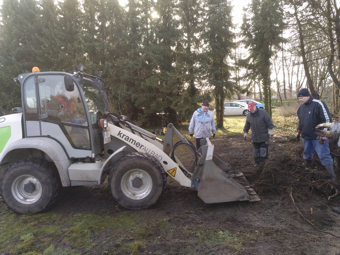 Am 5. Februar 2022 waren die Vereinsmitglieder aufgerufen, das Holz zu schreddern. In den Tage davor war das Wetter stürmisch und regnerisch gewesen, zu diesem Arbeitsdienst schien - wie bestellt - die Sonne. |