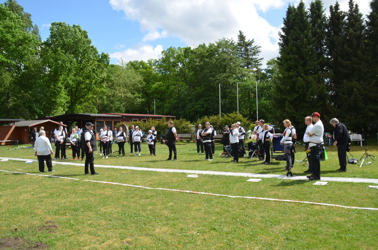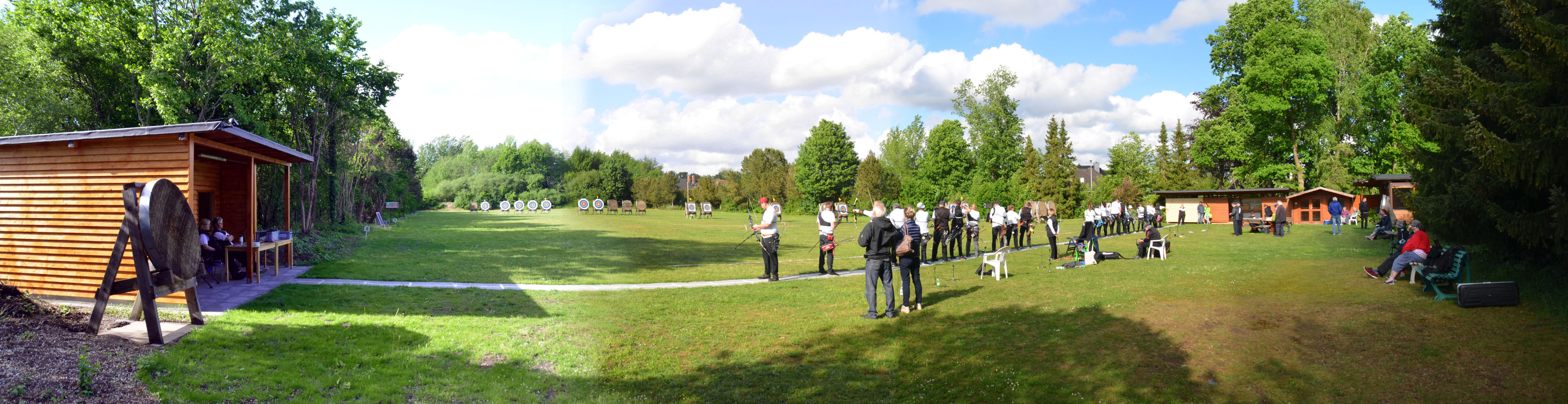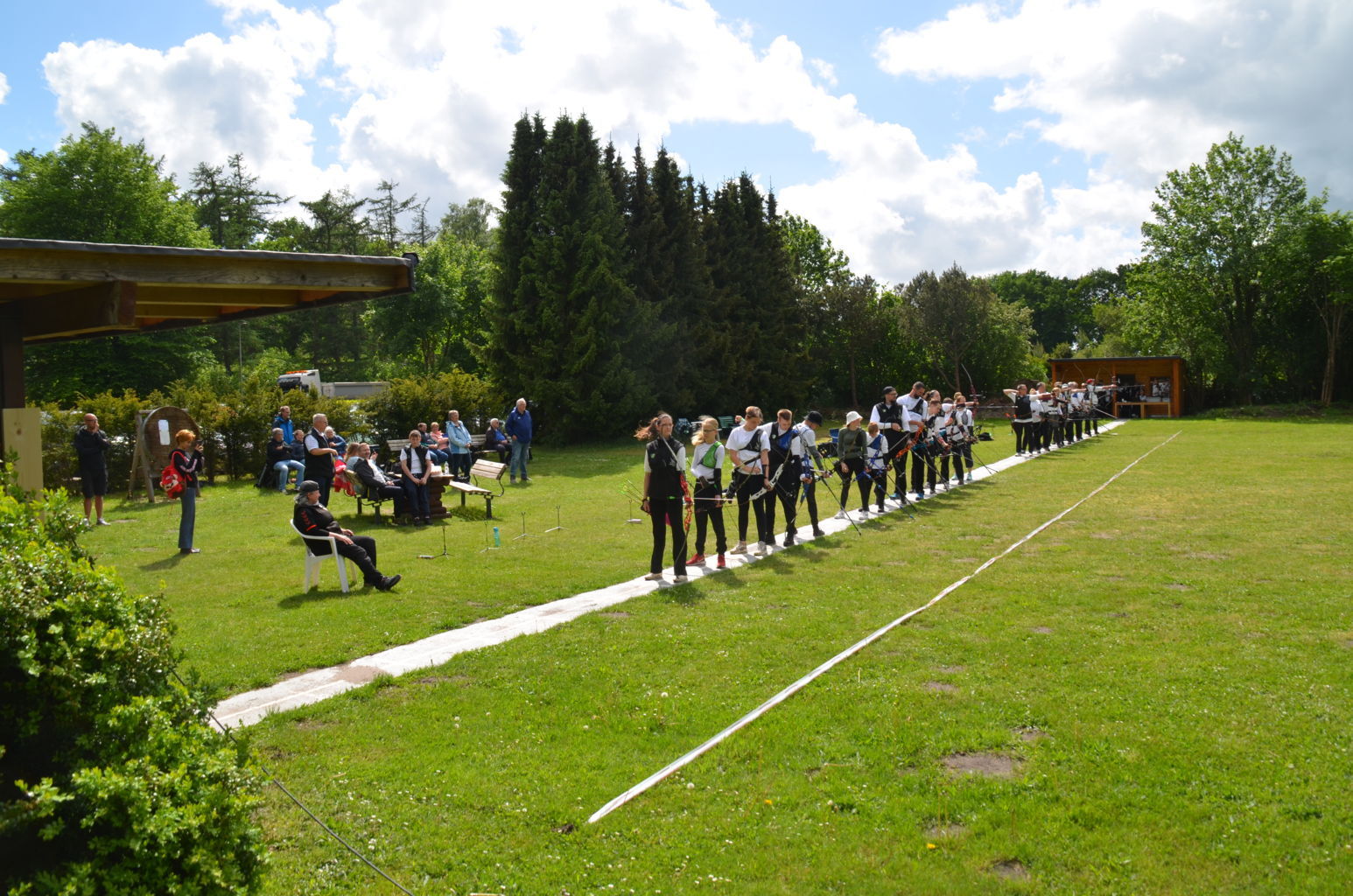 Nach langer, langer Zeit... Insgesamt war die Beteiligung mit 26 Schützen etwa wie in den früheren Jahren, aber das Teilnehmerfeld war deutlich anders aufgestellt. Nur 14 Bogenschützen schossen auf den Distanzen, die für ihre Altersklasse vorgeben waren und zu einem Start bei der Kreismeisterschaft berechtigt. Bei sonnig/bewölktem Himmel konnte das Turnier beginnen. |