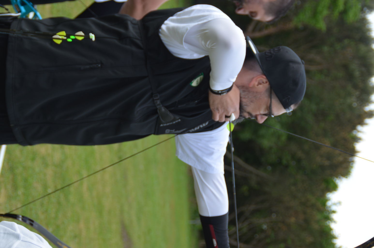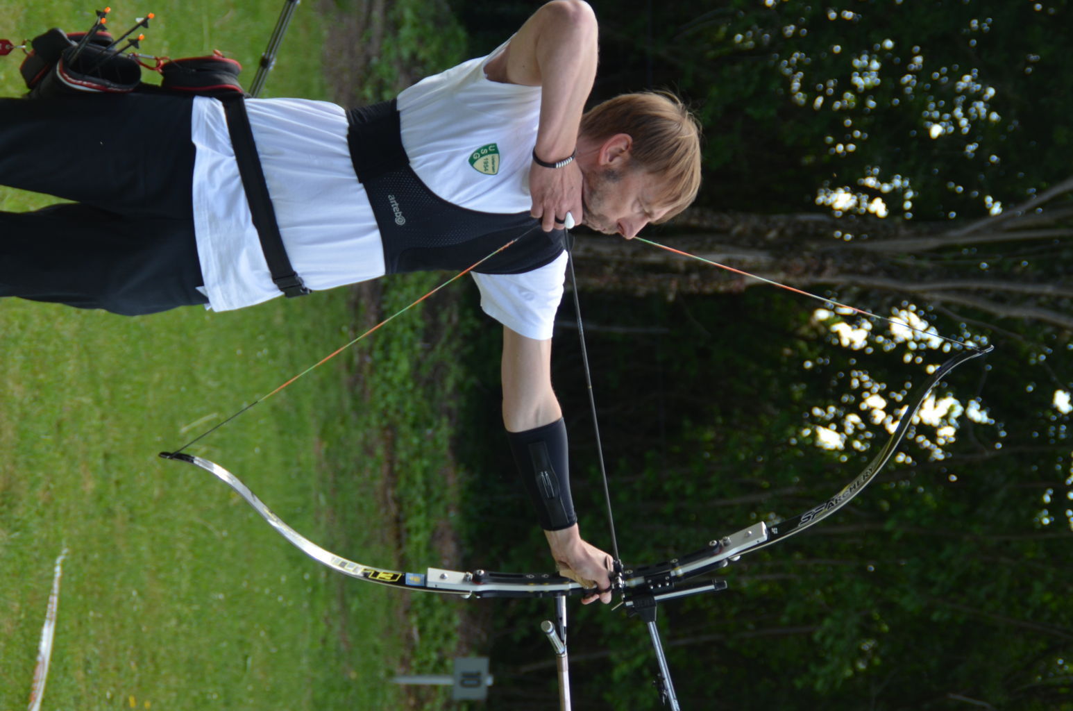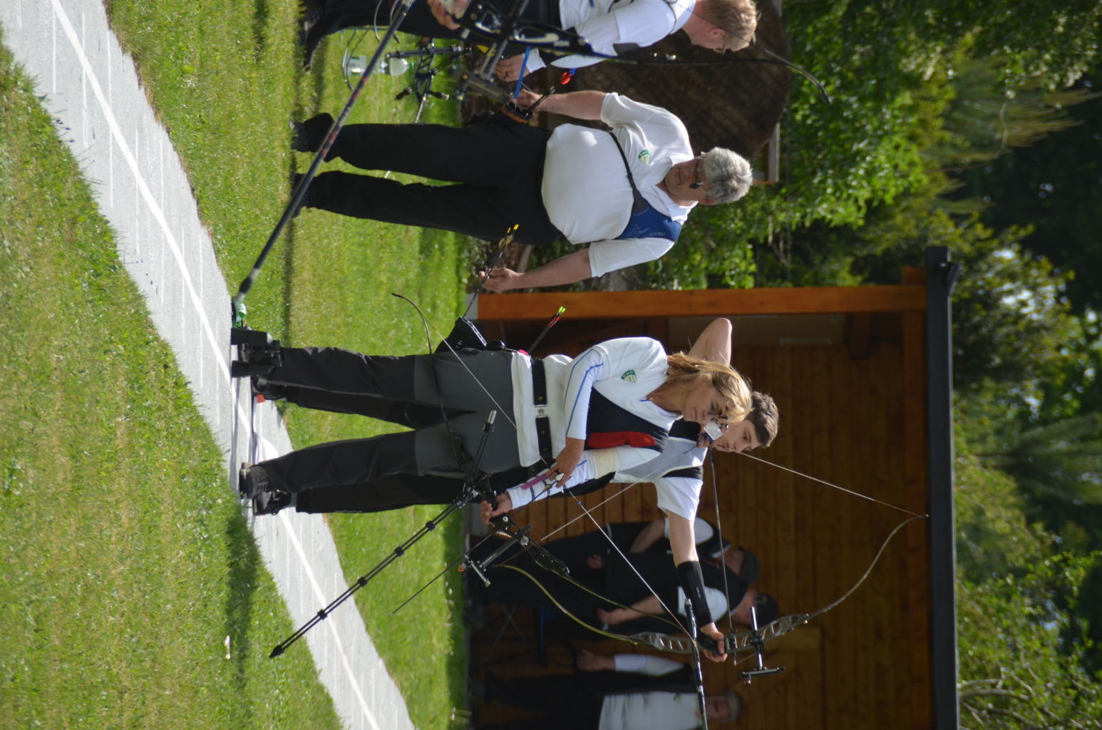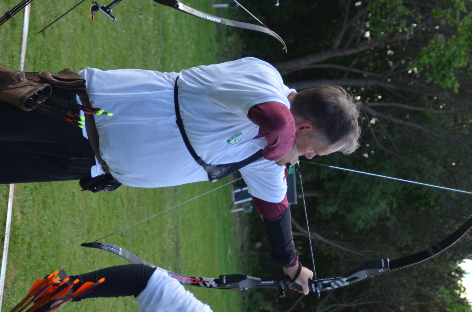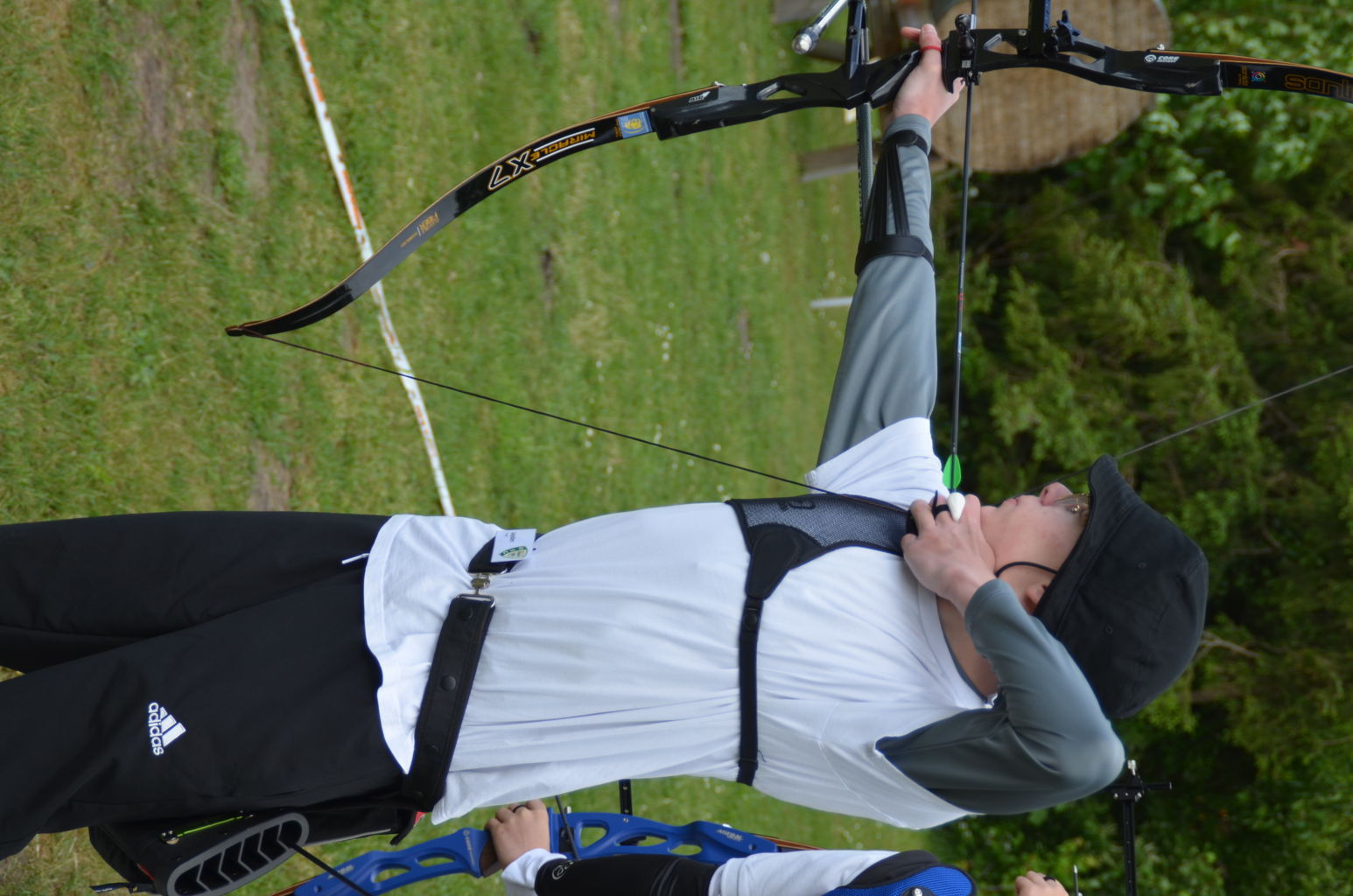 | Distanz 70 m: hier schießen Recurve Herren (Adrian) und Junioren (Paul). Auch Paul hatte vorgeschossen, so dass er auf keinen Bildern zu finden ist. |