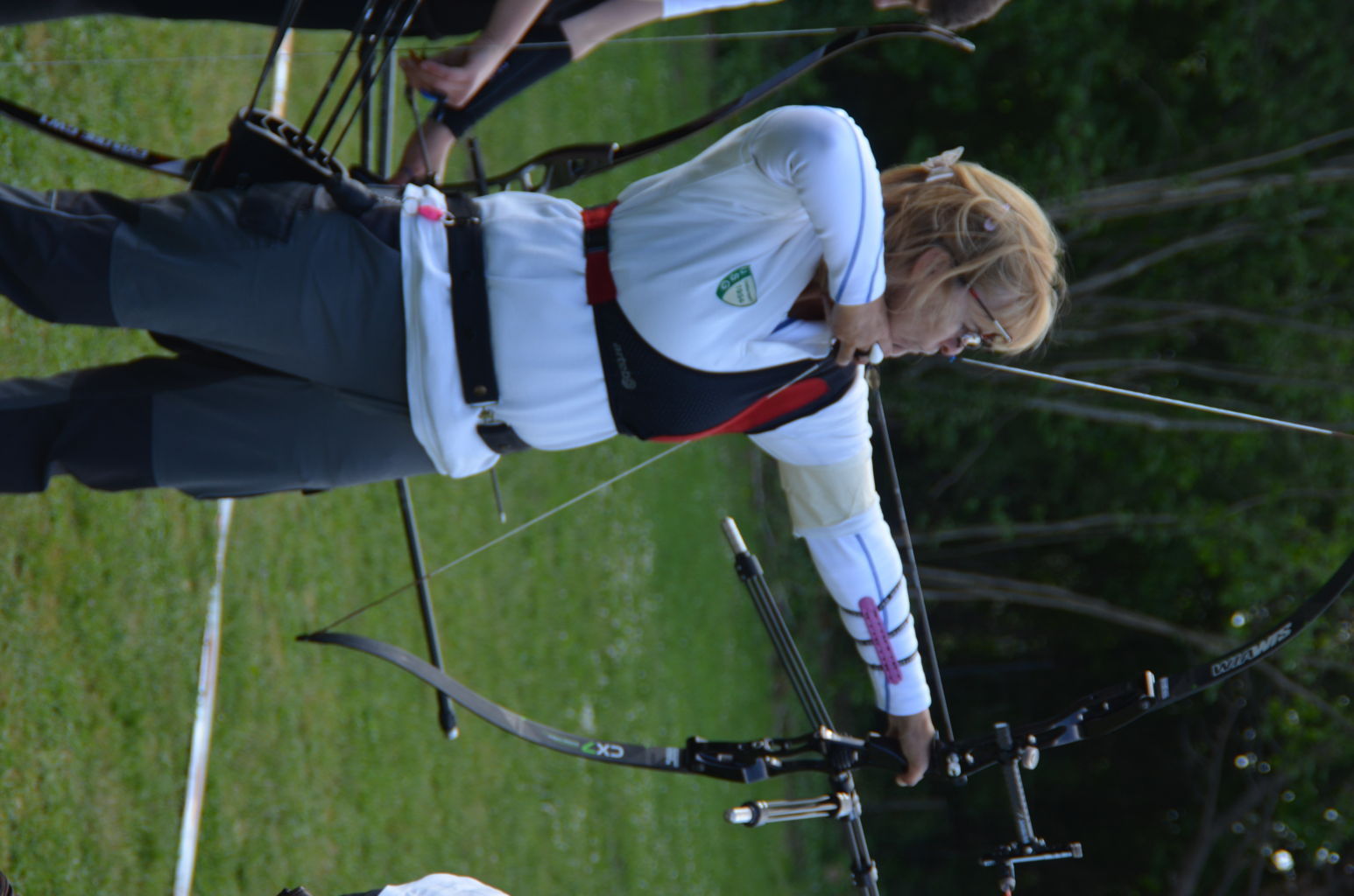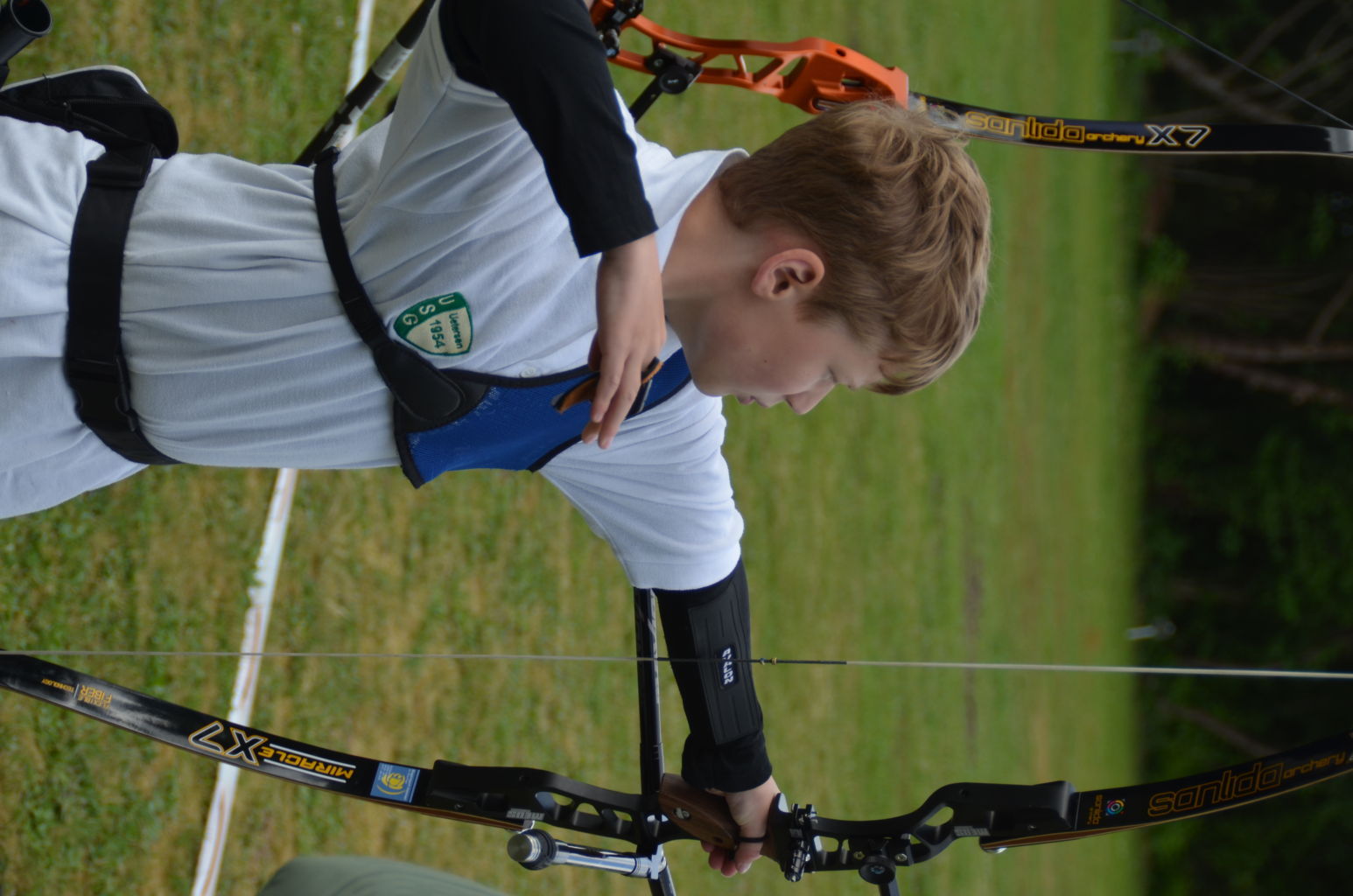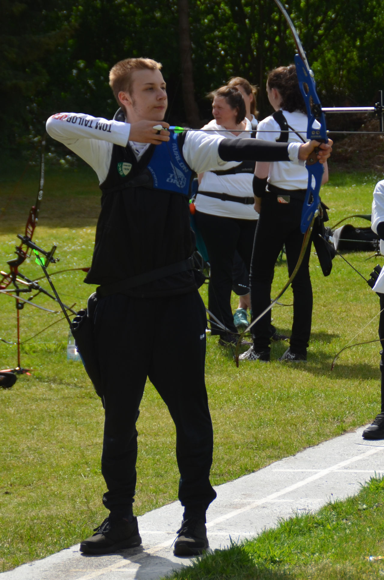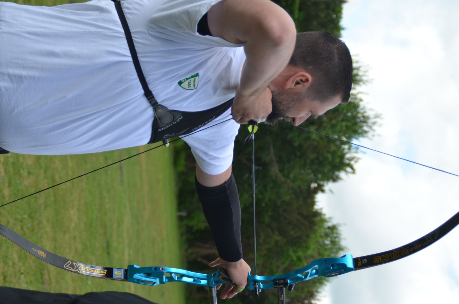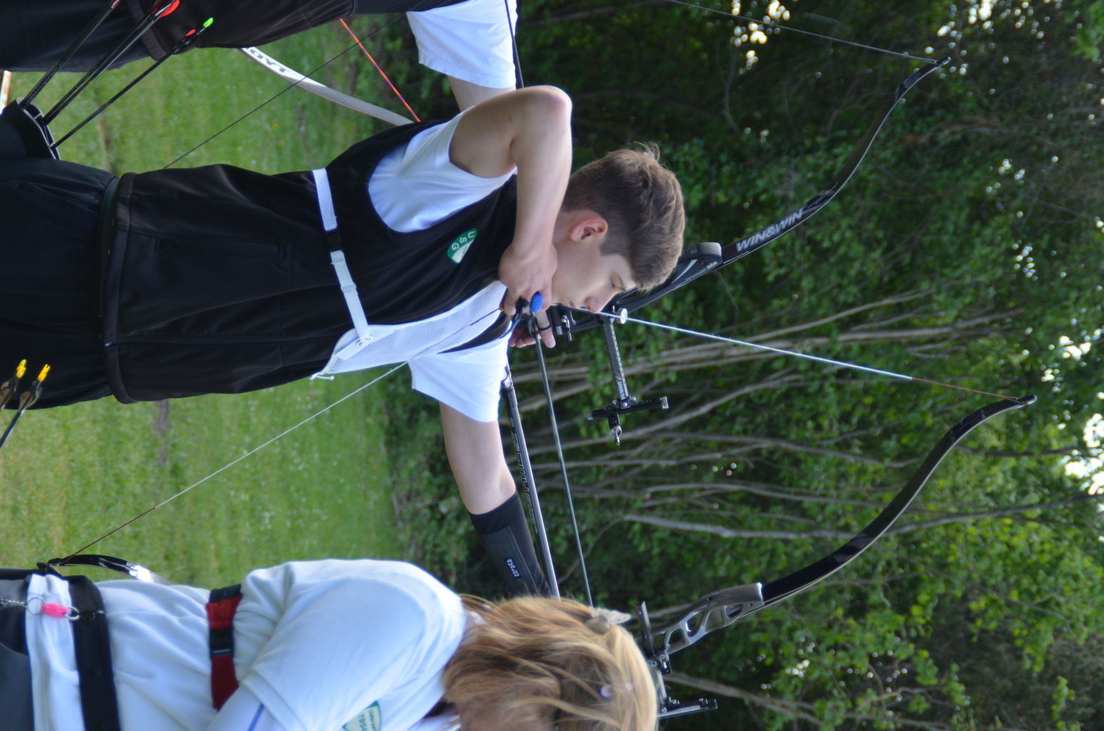 | Distanz 70 m: hier schießen Recurve Herren (Adrian) und Junioren (Paul). Auch Paul hatte vorgeschossen, so dass er auf keinen Bildern zu finden ist. |
