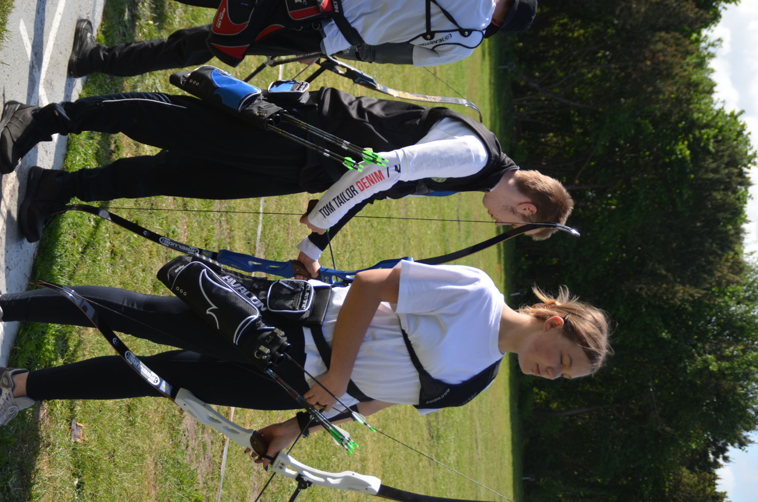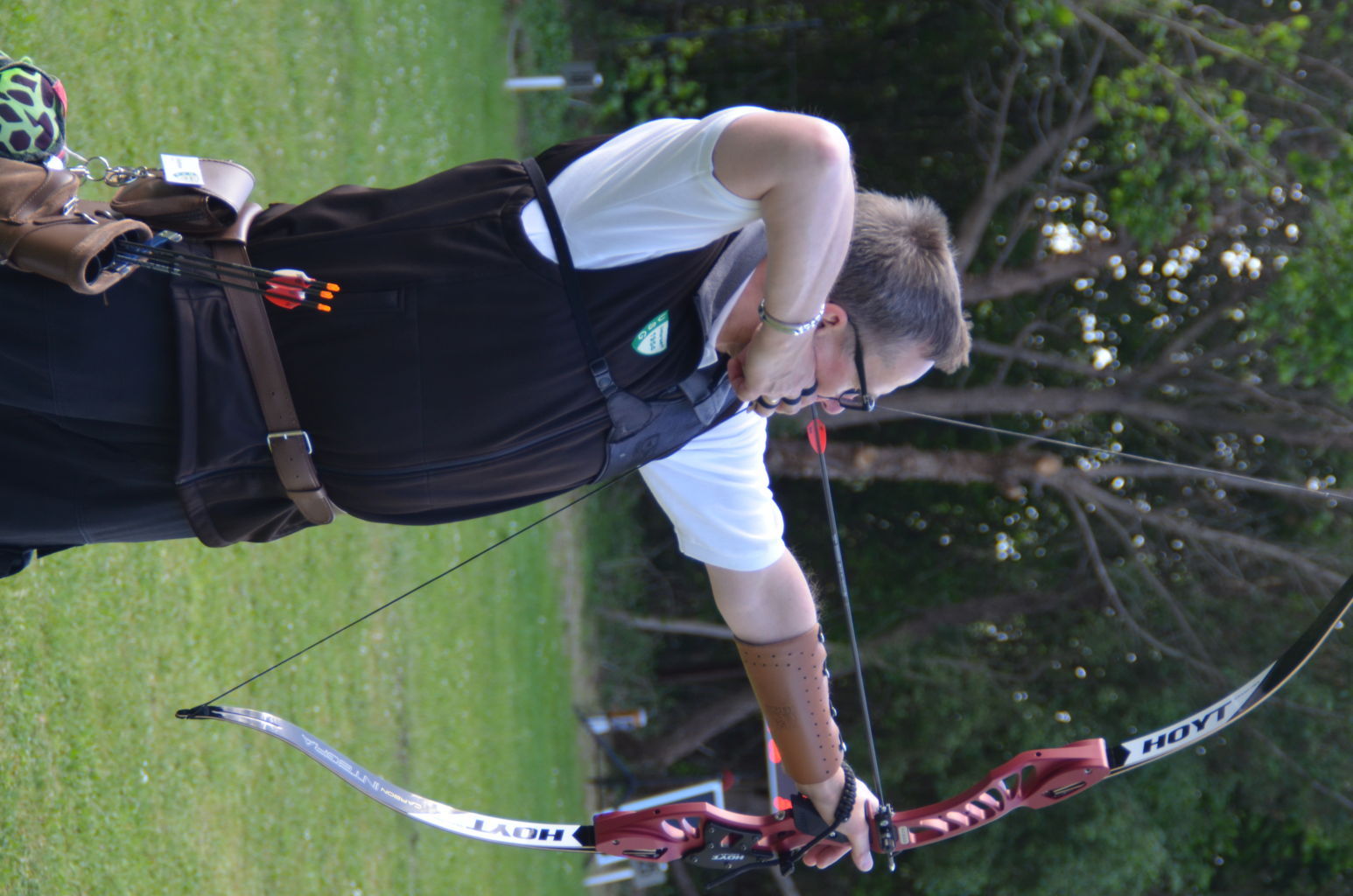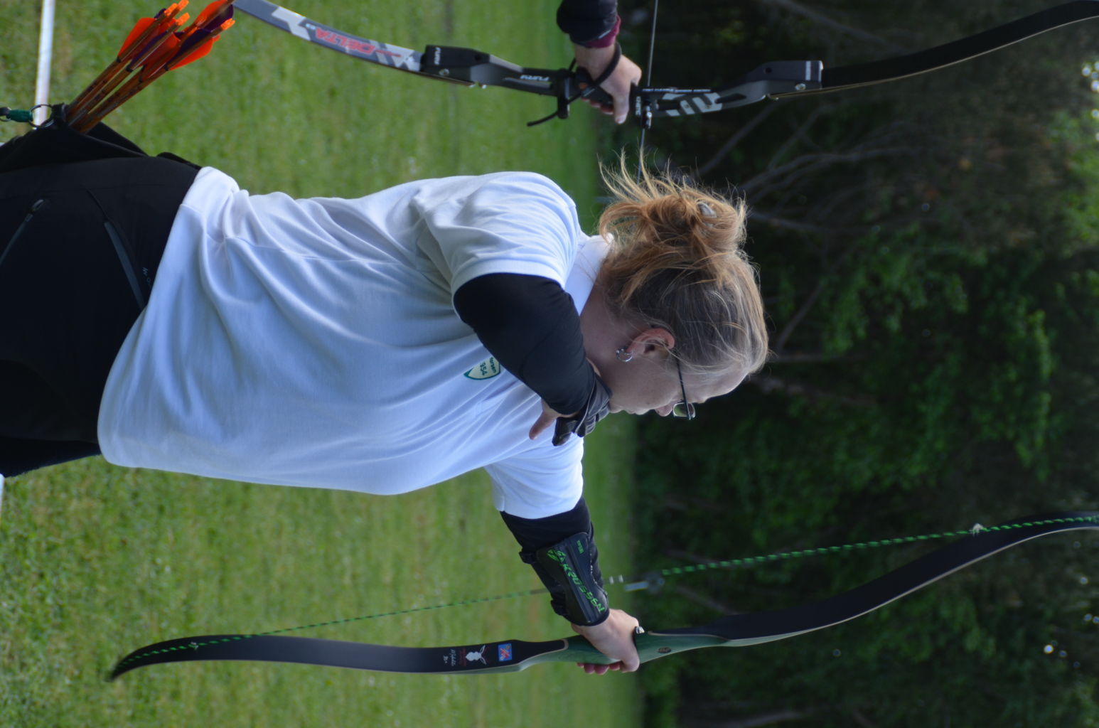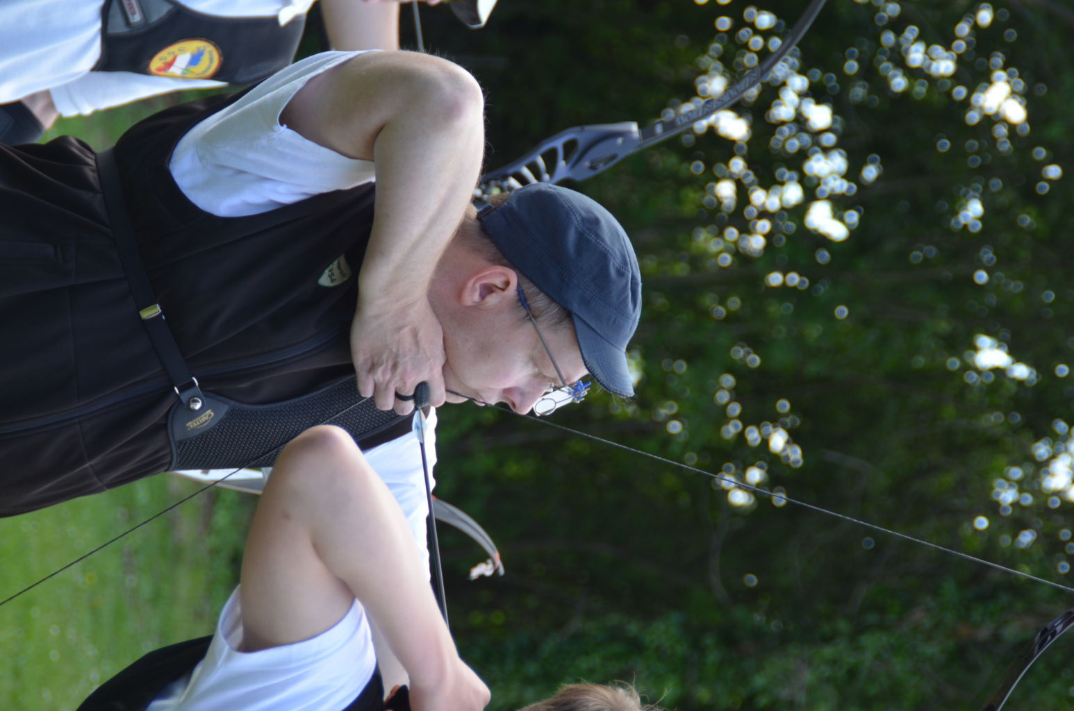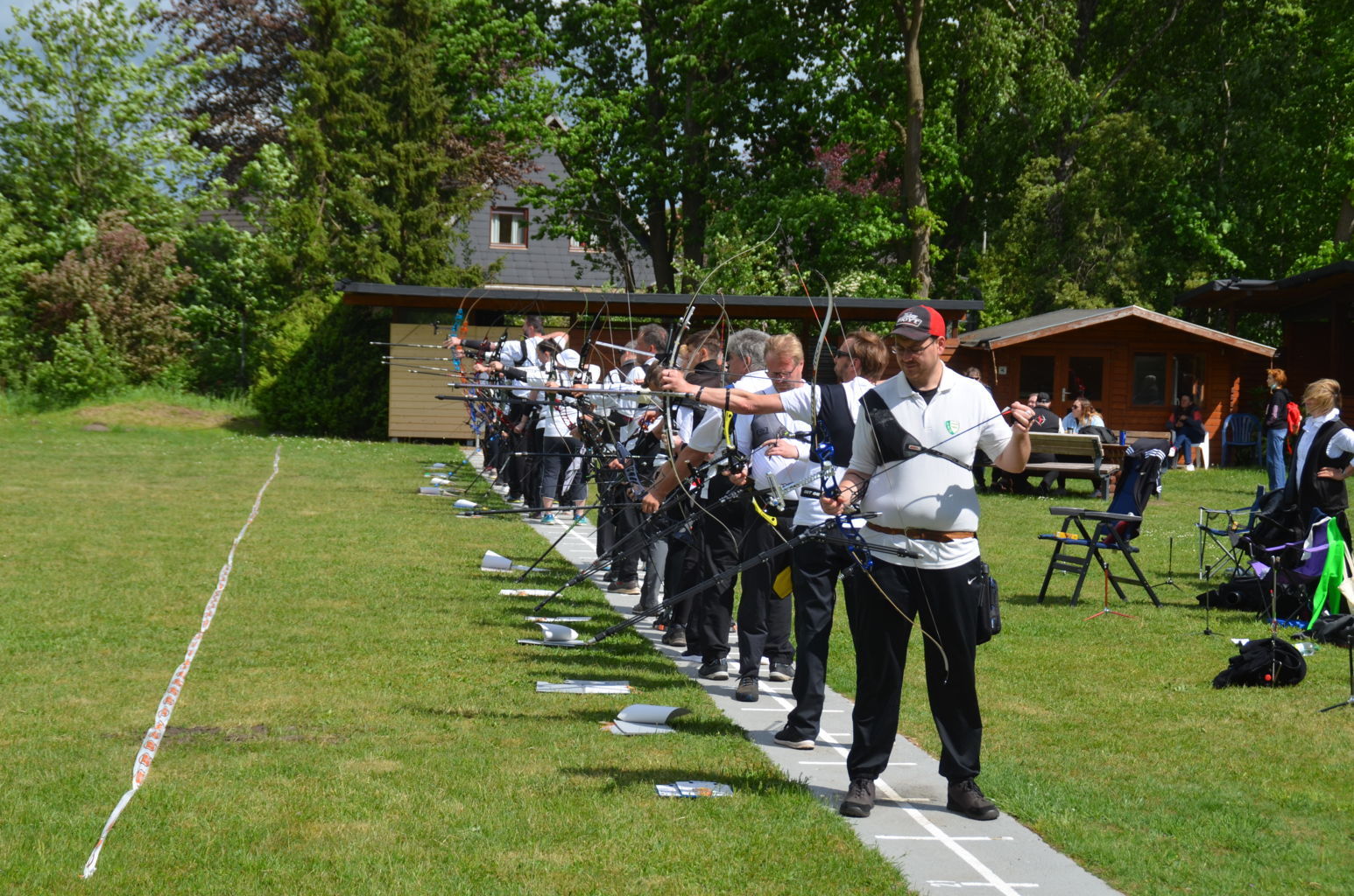 | Distanz 70 m: hier schießen Recurve Herren (Adrian) und Junioren (Paul). Auch Paul hatte vorgeschossen, so dass er auf keinen Bildern zu finden ist. |
