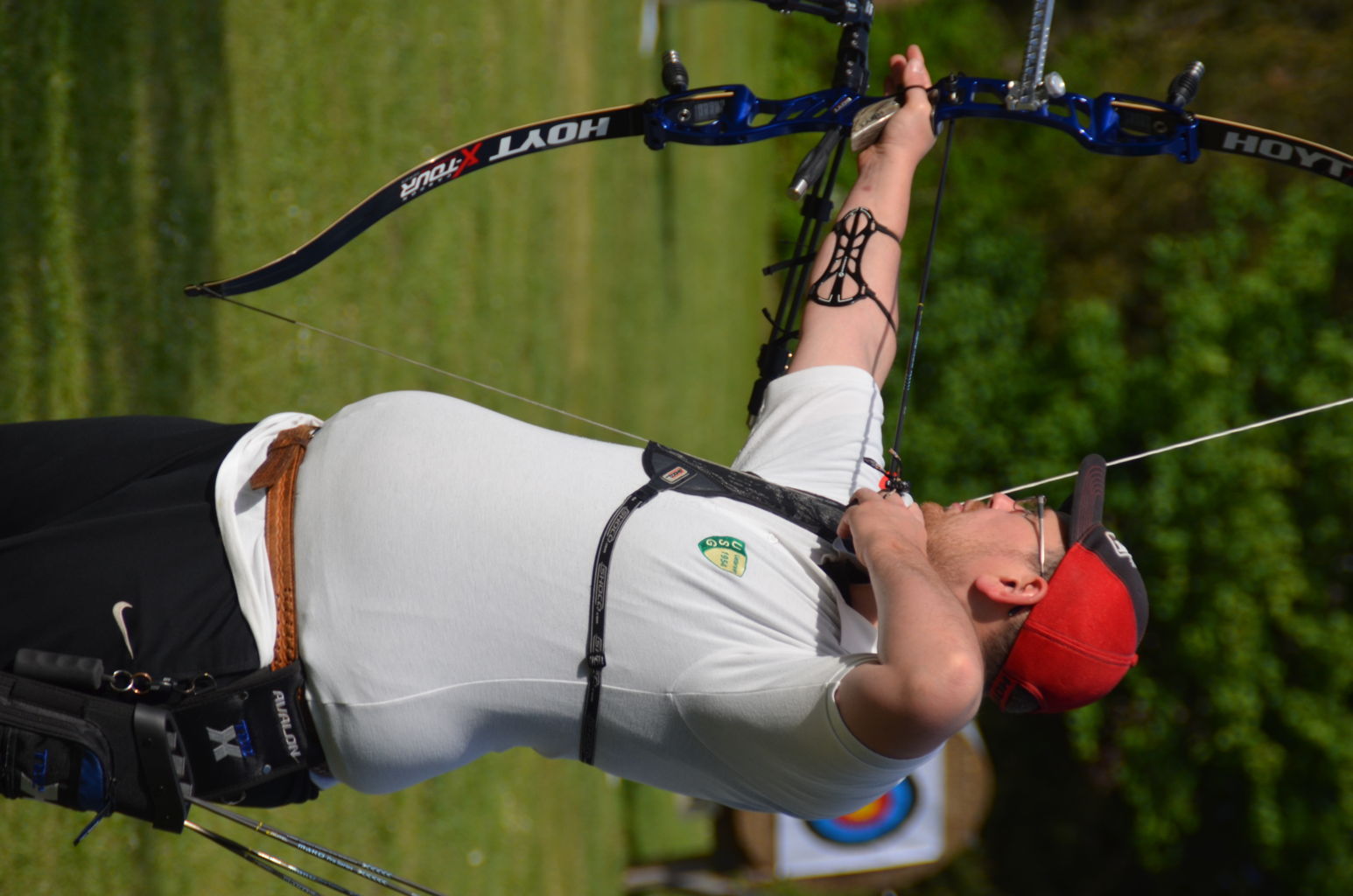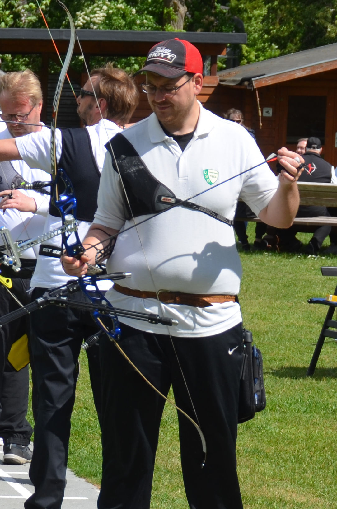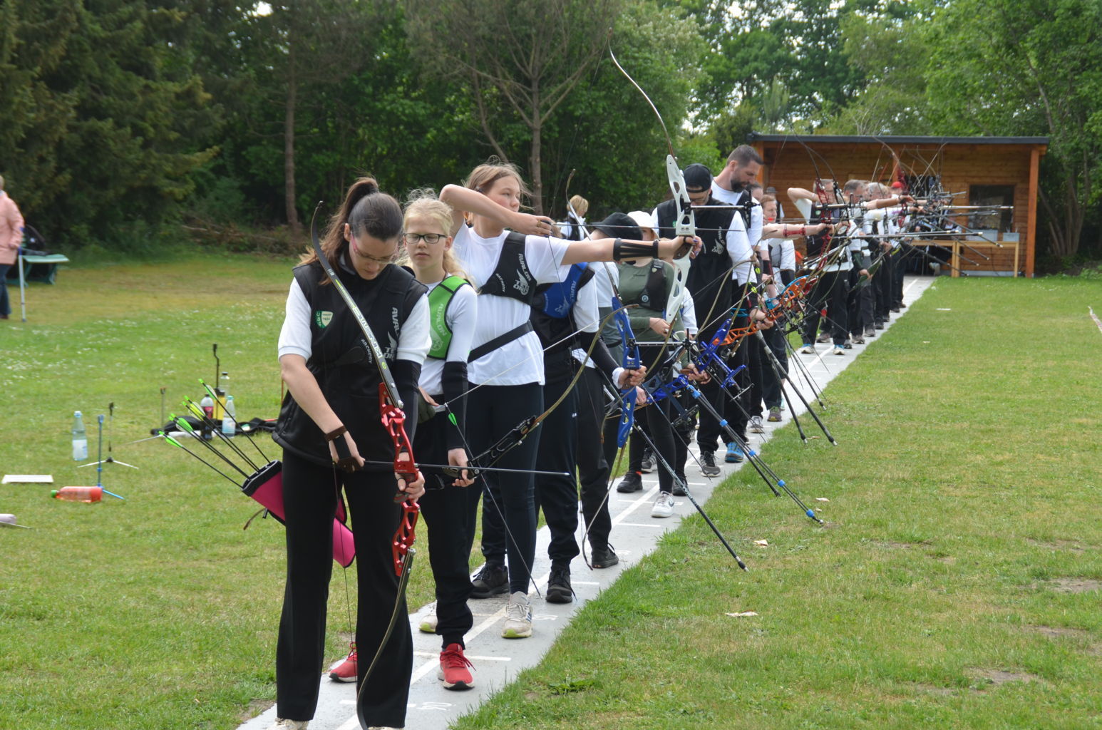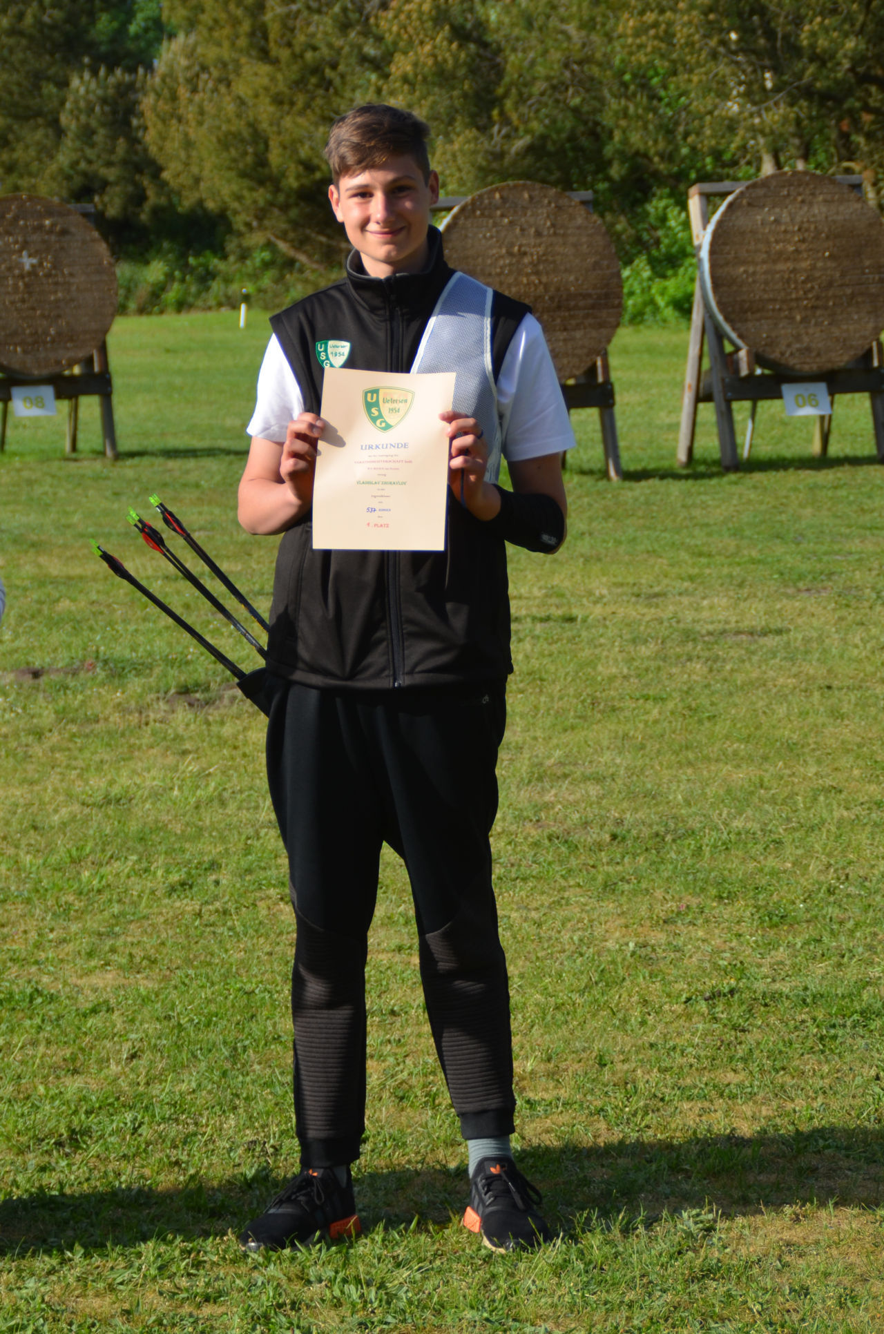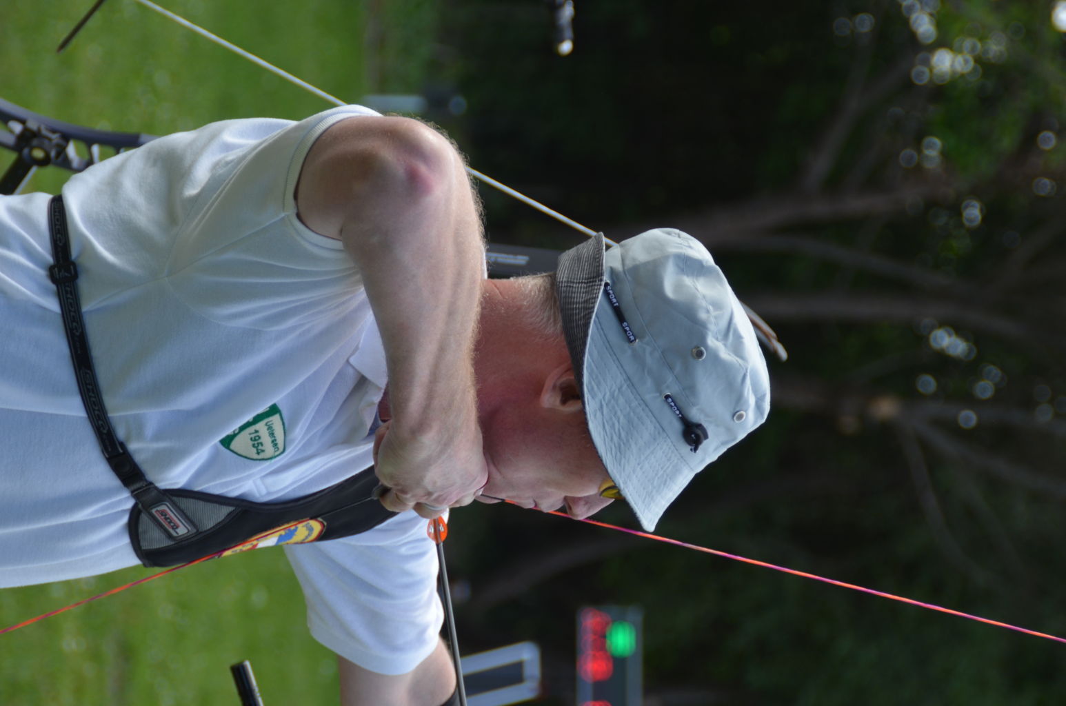 | Distanz 70 m: hier schießen Recurve Herren (Adrian) und Junioren (Paul). Auch Paul hatte vorgeschossen, so dass er auf keinen Bildern zu finden ist. |