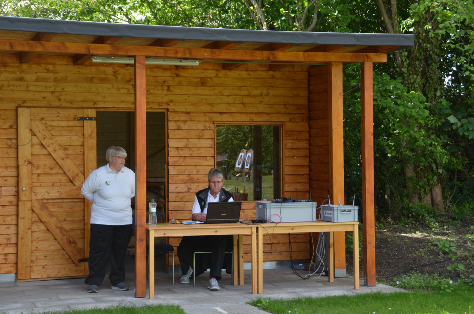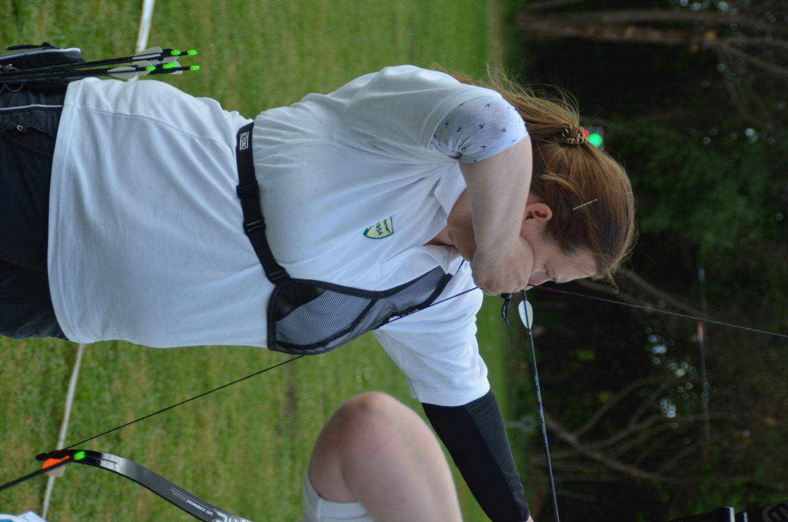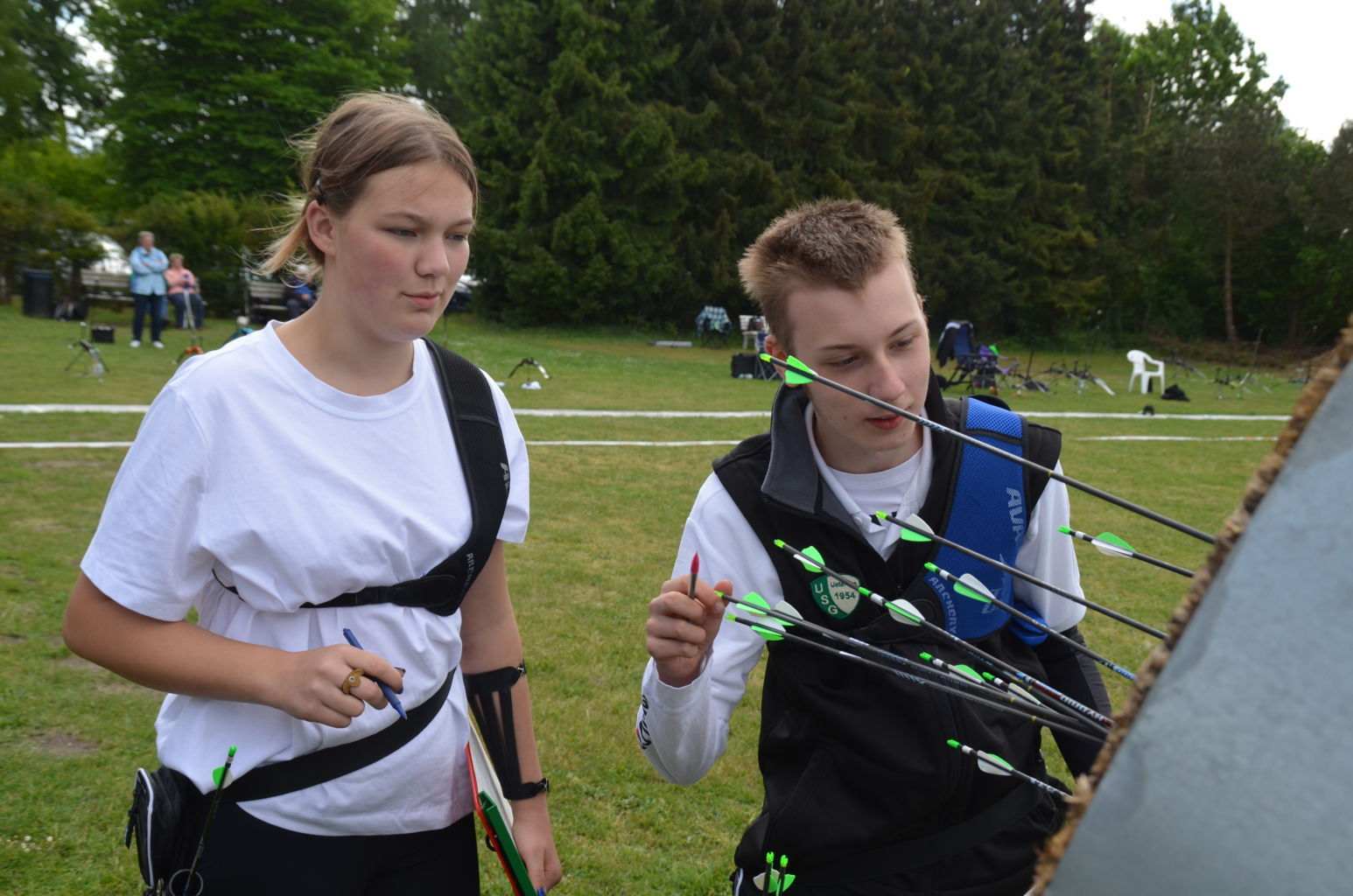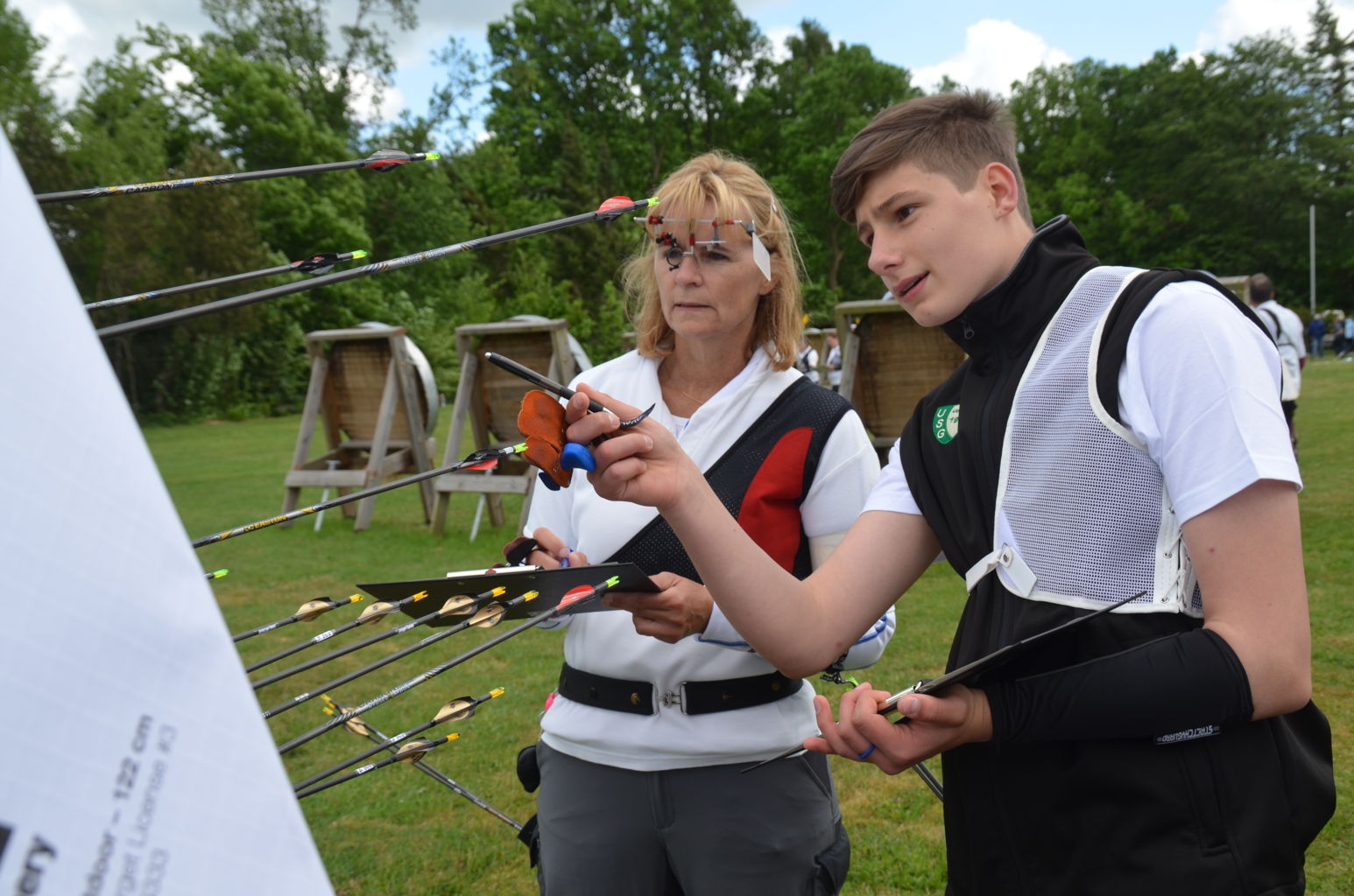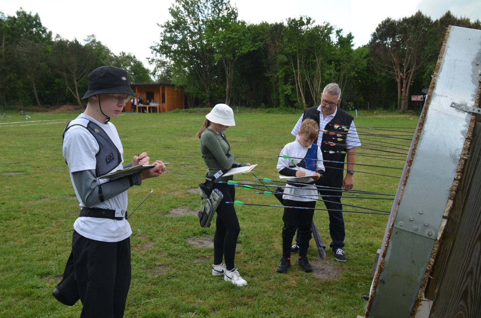 | Distanz 70 m: hier schießen Recurve Herren (Adrian) und Junioren (Paul). Auch Paul hatte vorgeschossen, so dass er auf keinen Bildern zu finden ist. |