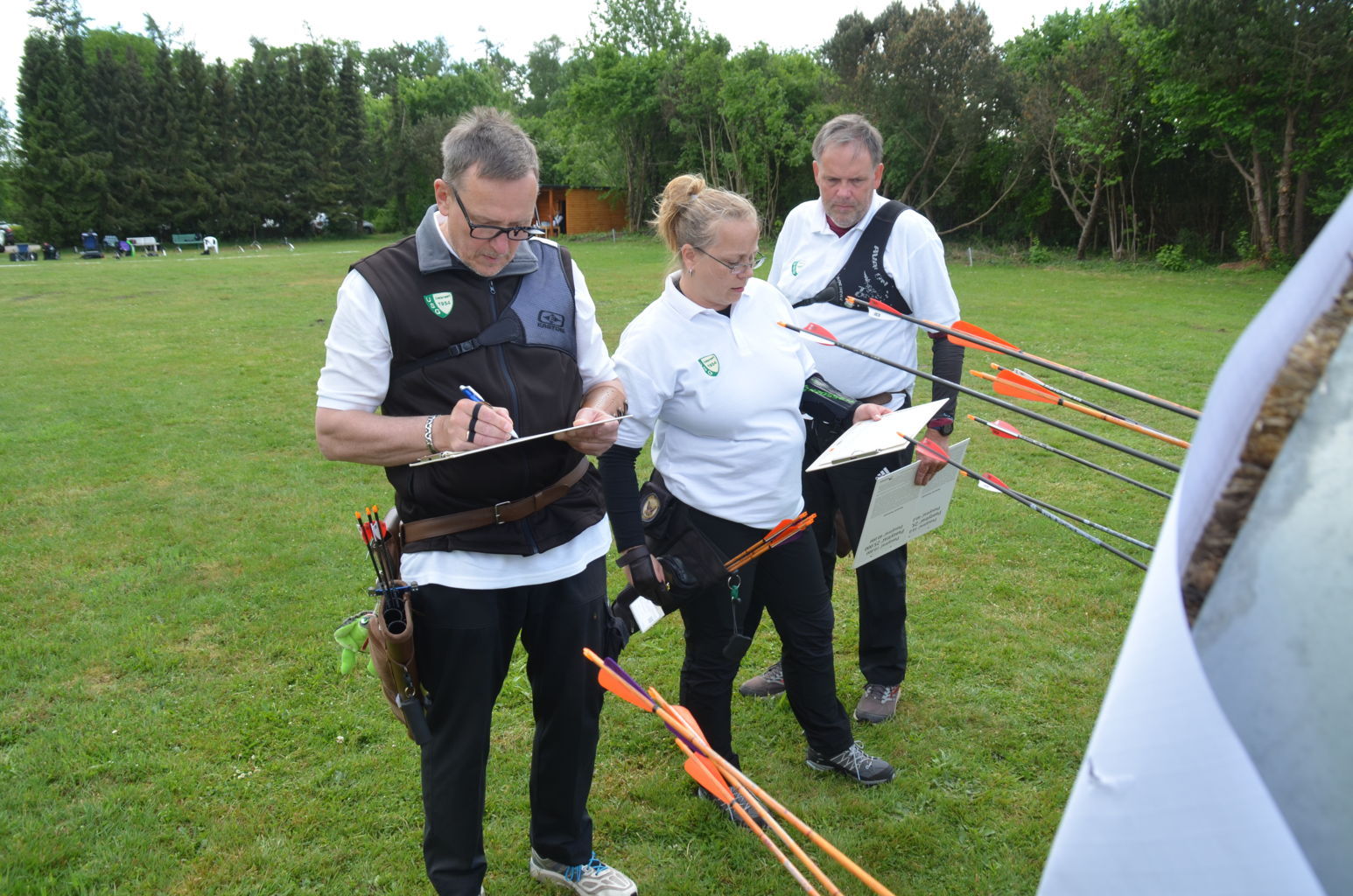 | Distanz 50 m: auf dieser offiziellen Meisterschaftsdistanz schießen Blankschützen (Doreen, Frank und Andreas) und Recurve Senioren. Rainer (Senior) hatte vorgeschossen und ist daher auf keinen Bildern. |
