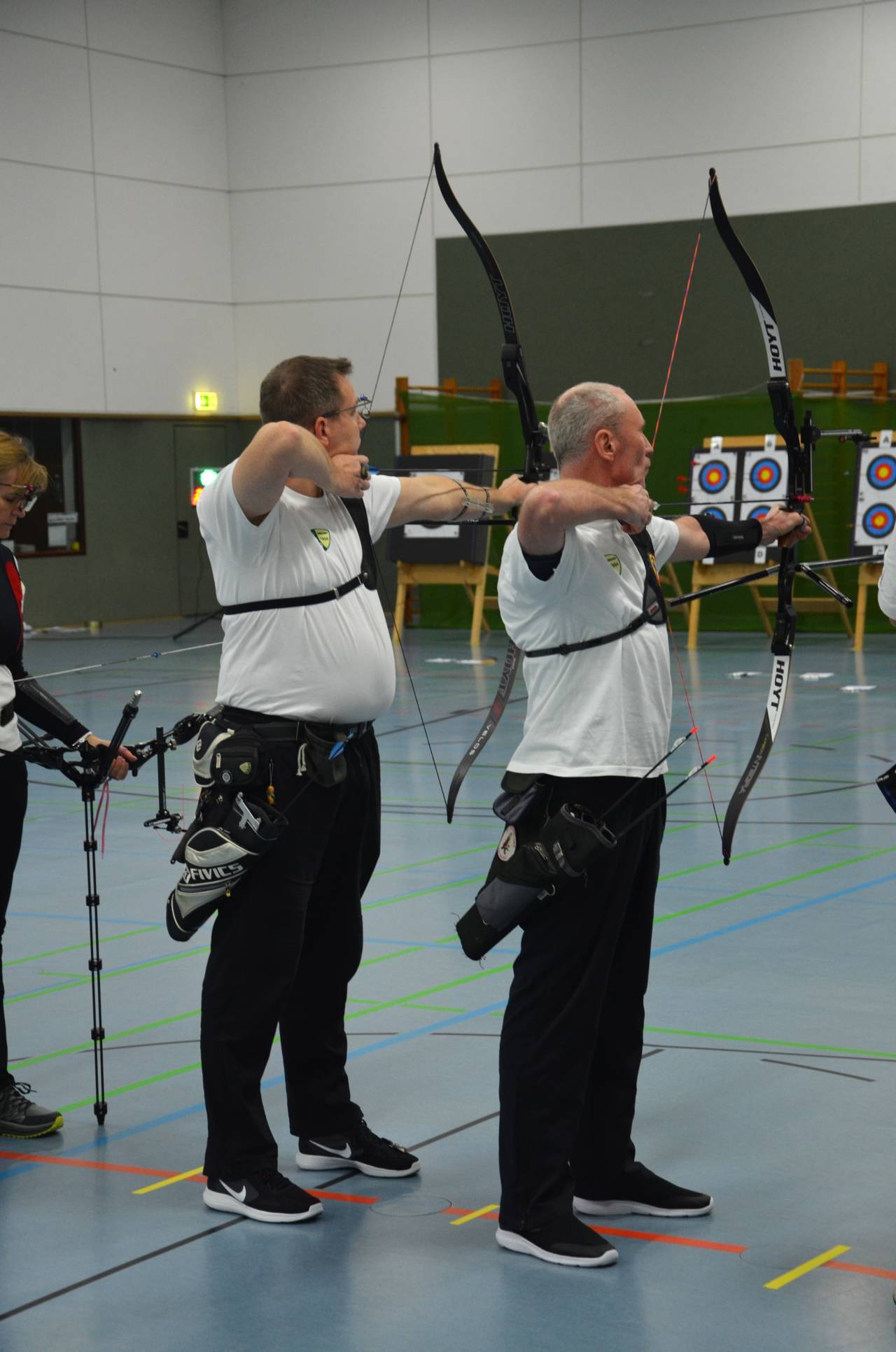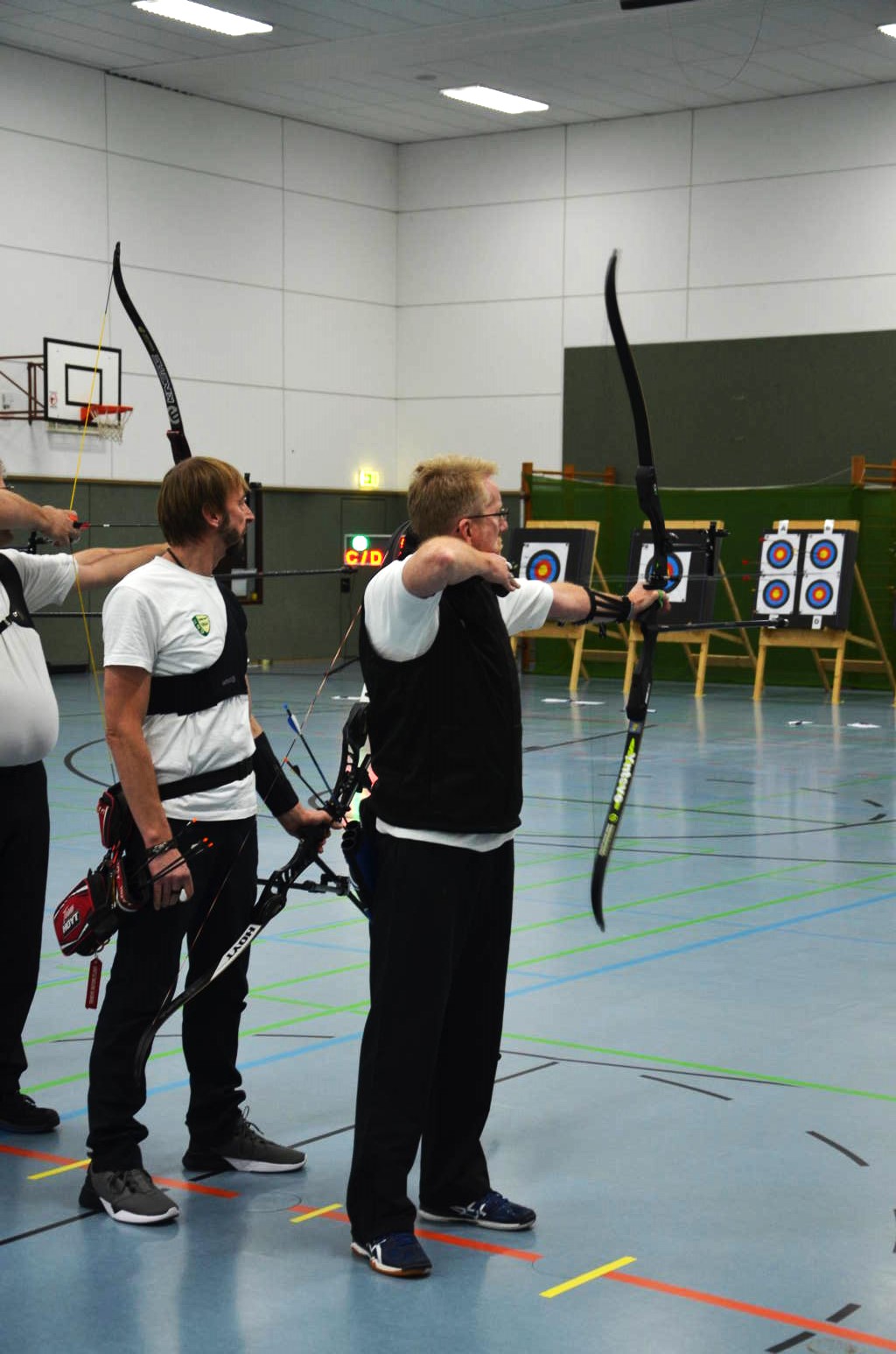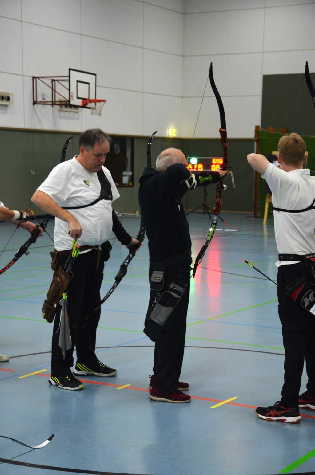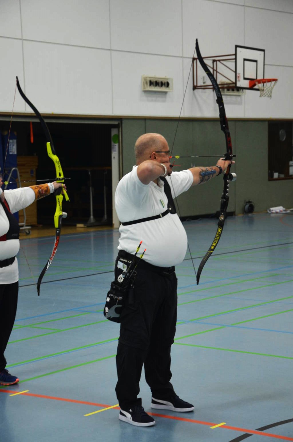 Vereinsmeisterschaft Bogen Halle 2024 Am 25. November 2023 wurde die Vereinsmeisterschaft Bogen Halle 2024 geschossen. Statt des Trainings in der Sporthalle Birkenallee fand dort das Turnier statt. Mit 28 Schützen war die Beteiligung in diesem Jahr nicht besonders hoch. Zwei neue Blankbogenschützen schossen dabei auf eine 60 cm Auflage, da sie noch nicht die Treffsicherheit hatten, um auf eine kleinere Auflage zu schießen, wie es in ihrer Bogen- und Altersklasse erforderlich gewesen wäre. Nicht alle Schützen werden auch zur Kreismeisterschaft antreten, die am 12. Dezember in Tornesch von unserem Verein ausgerichtet wird. Wir wünschen allen teilnehmenden Schützen hierzu 'Alle ins Gold'. Ein paar Bilder geben einen Einblick über den Verlauf des Turniers. |