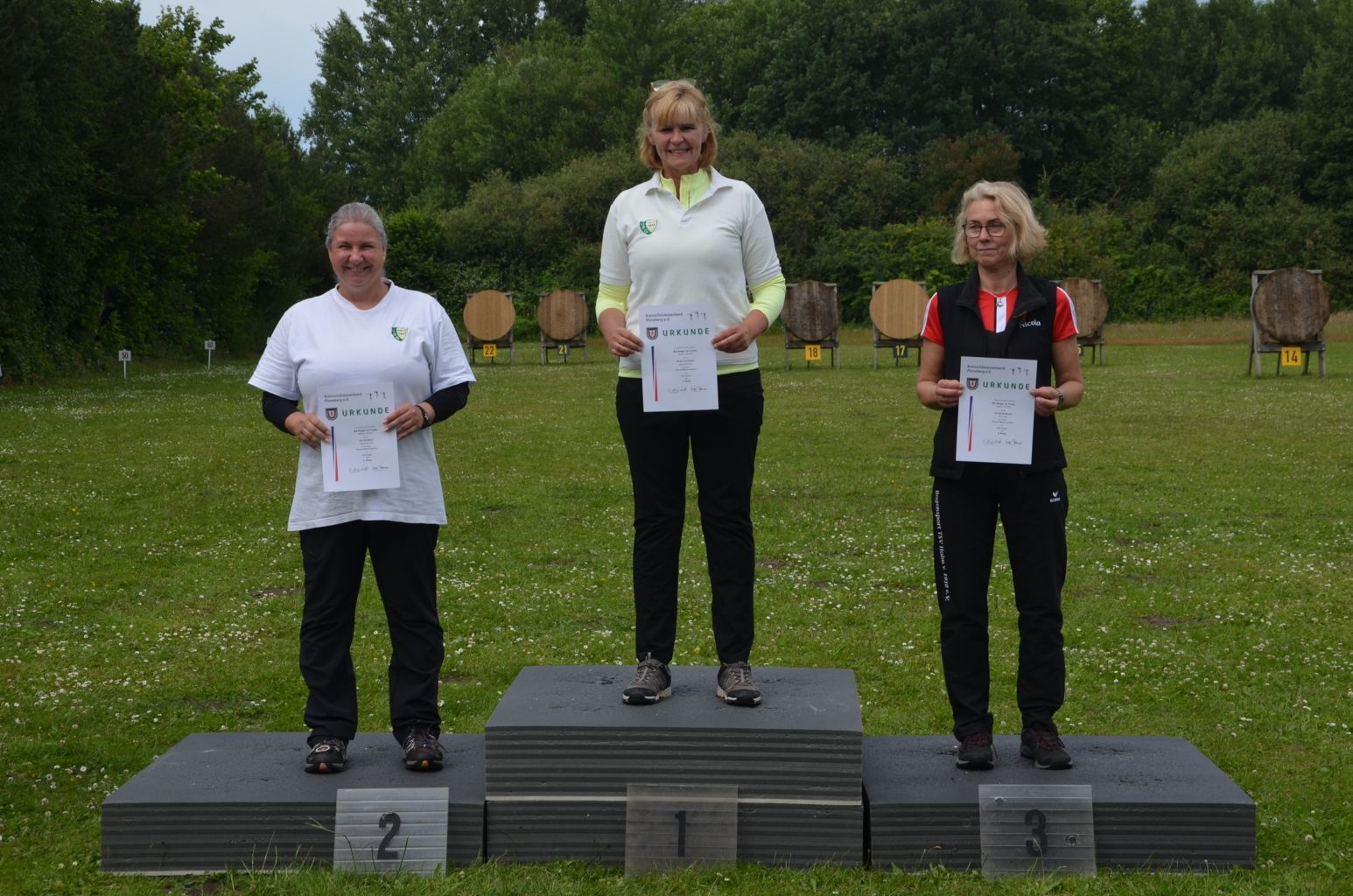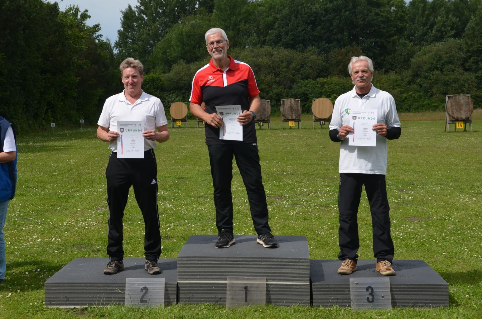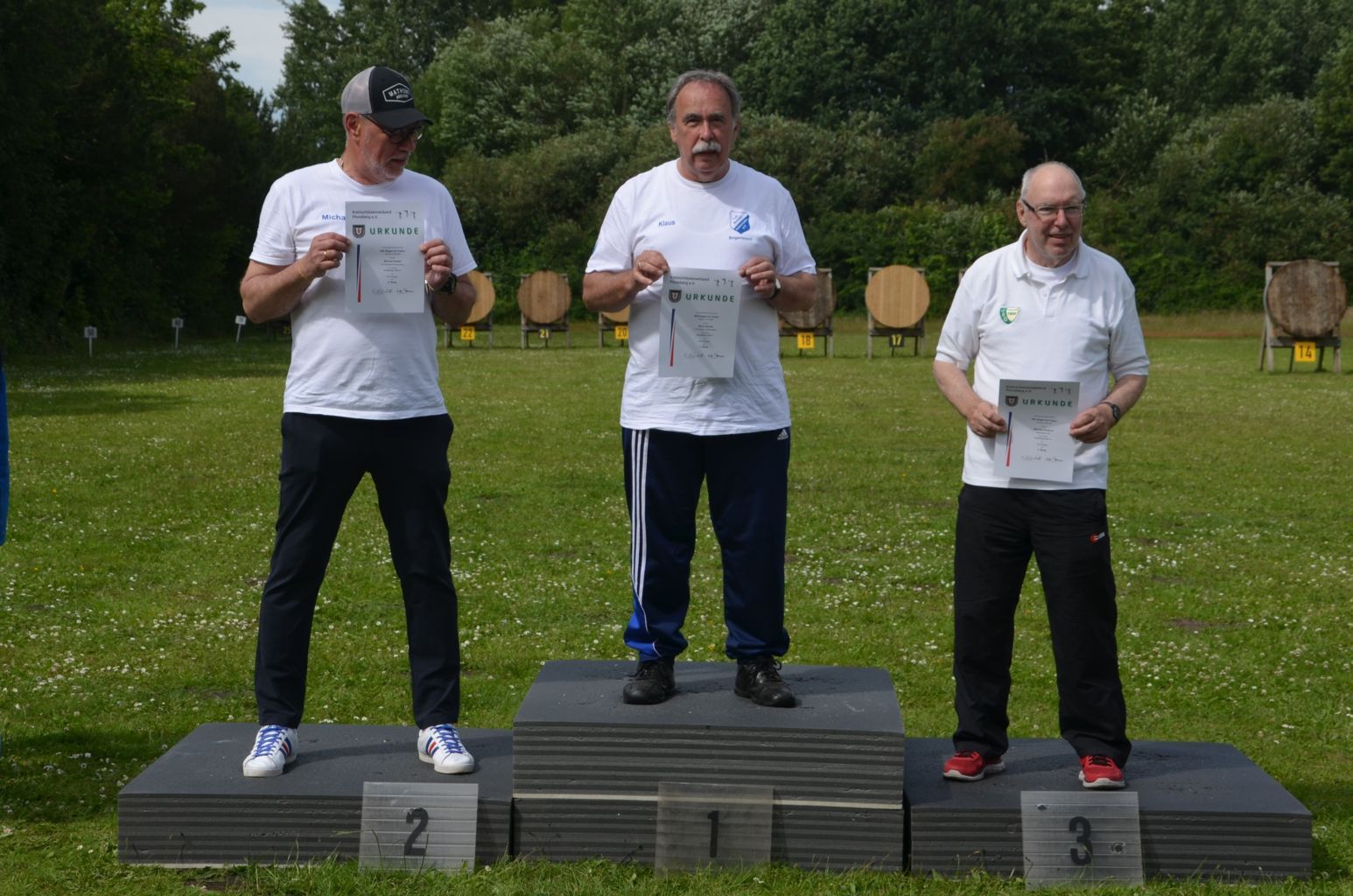 | Distanz 30 m - Scheiben 11 bis 13 in dieser Distanz schießen Recurve- oder Blankschützen in einer Kreisklasse 30m (Manfred, Marek und Andreas) |