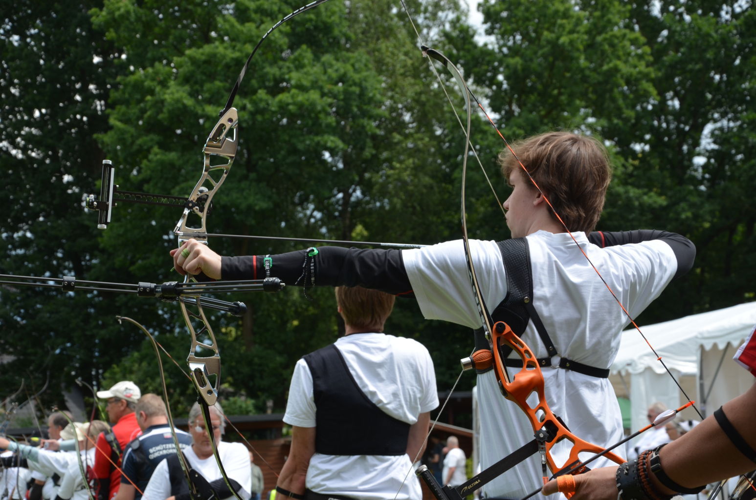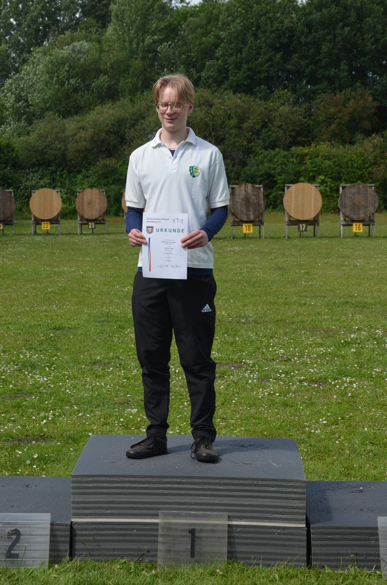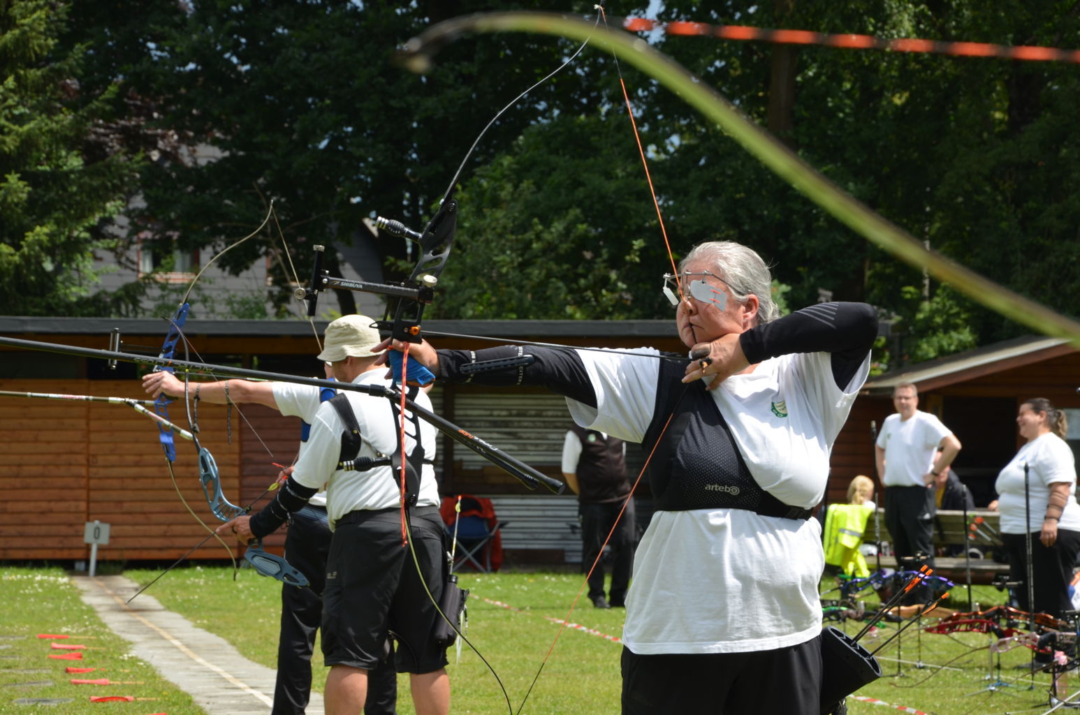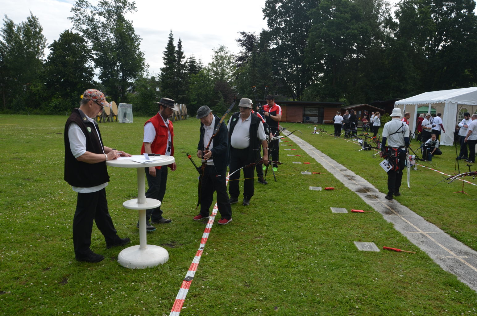 Am16. Juni 2024 wurde die Kreismeisterschaft Bogen im Freien durch unseren Verein ausgerichtet. 60 Schützen nahmen an dieser Meisterschaft teil, davon waren allein 1/3 aller Teilnehmer Schützen der USG. Dank einer Änderung der Bedingungen in der Ausschreibung nutzten bei dieser KM auch erstmals 13 Schützen aus vier Vereinen die Möglichkeit, in neuen Kreisklassen auf 30 m oder 50 m mitzuschießen. Mit dieser Regelung wird neuen wie auch älteren Schützen eine Teilnahme an der KM ermöglicht, die noch nicht oder nicht mehr die größeren Distanzen schießen können, die in ihrer Alters- und Bogenklasse erforderlich wären. Diese neuen Kreisklassen lassen allerdings keine Teilnahme an der folgenden Landesmeisterschaft zu. Das Wetter war sonnig und bewölkt, Regen und sogar Gewitter für den Nachmittag waren angesagt. Doch außer einem kurzen Schauer konnte das Turnier problemlos durchgeschossen werden. Nur ein einzelnes Grollen deutete auf eine Gewitter hin, dass in weiterer Ferne vorbeizog.Ein paar Bilder geben einen Eindruck von diesem Tag auf unserem Bogengelände. |