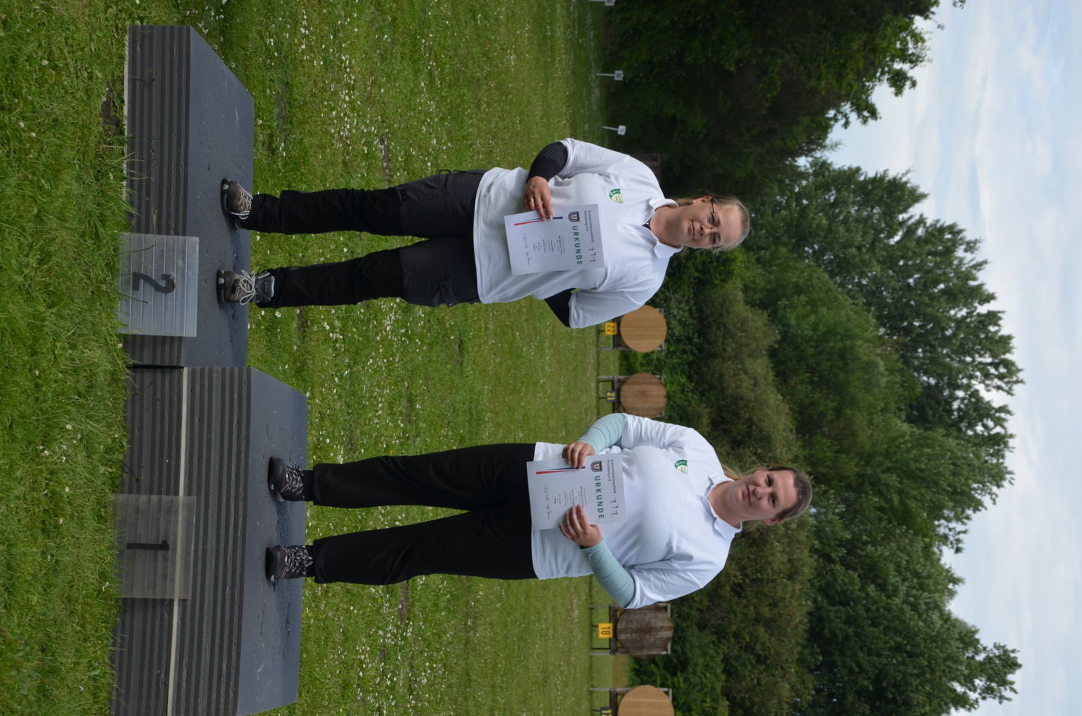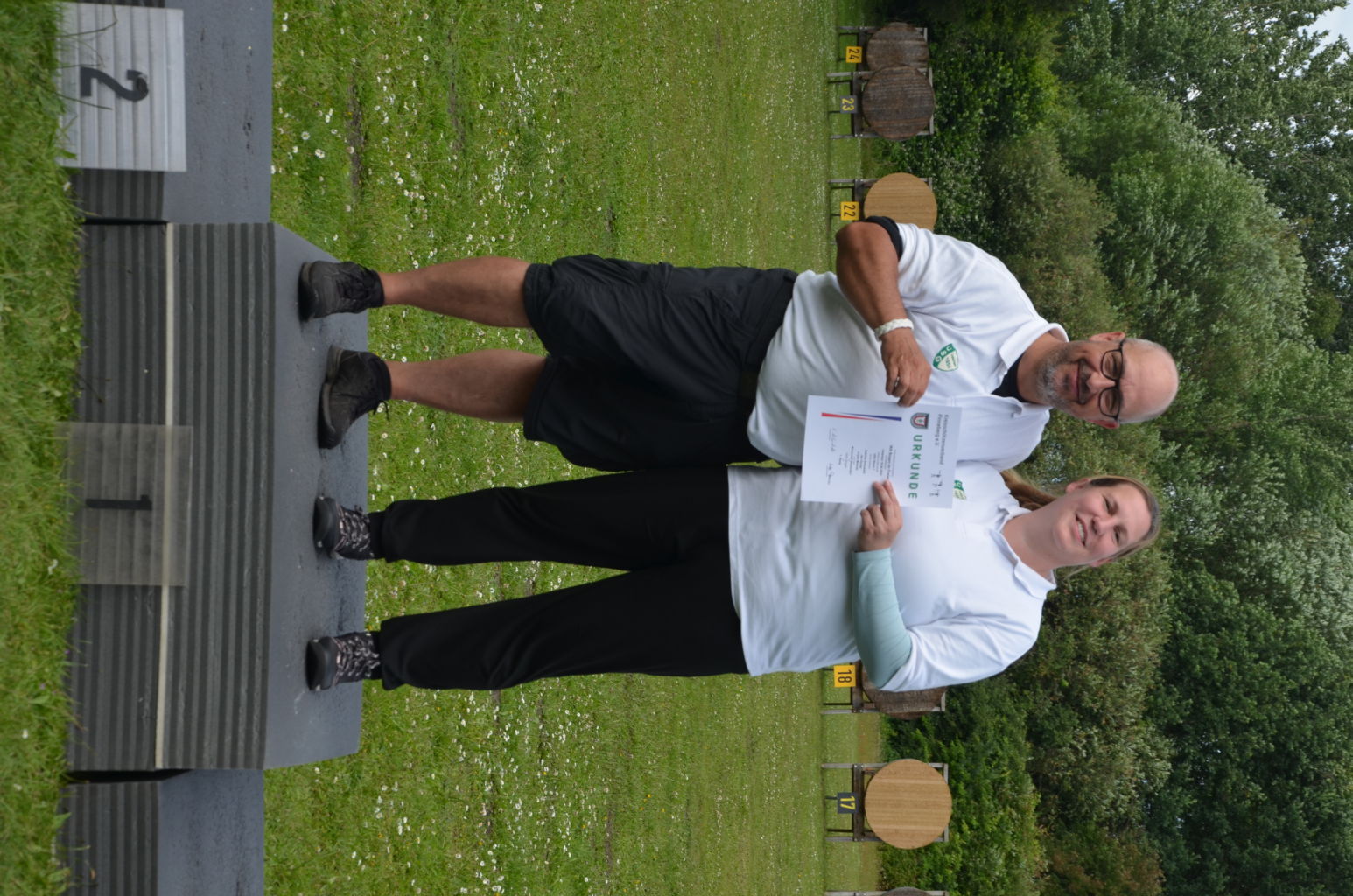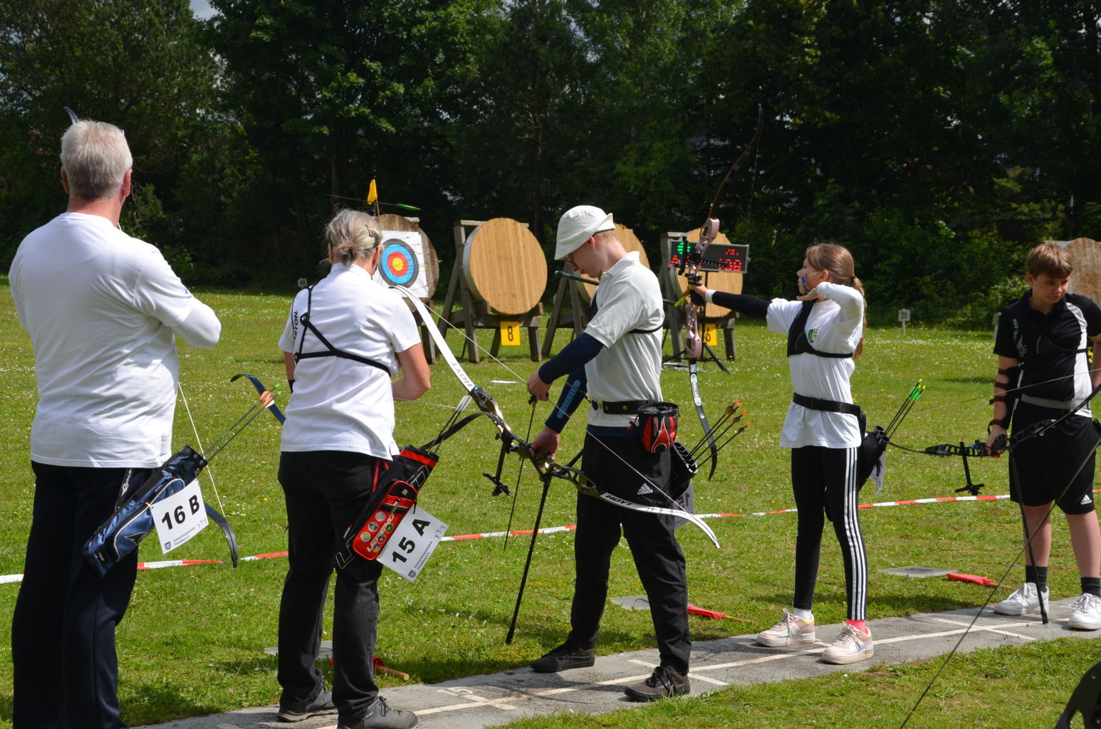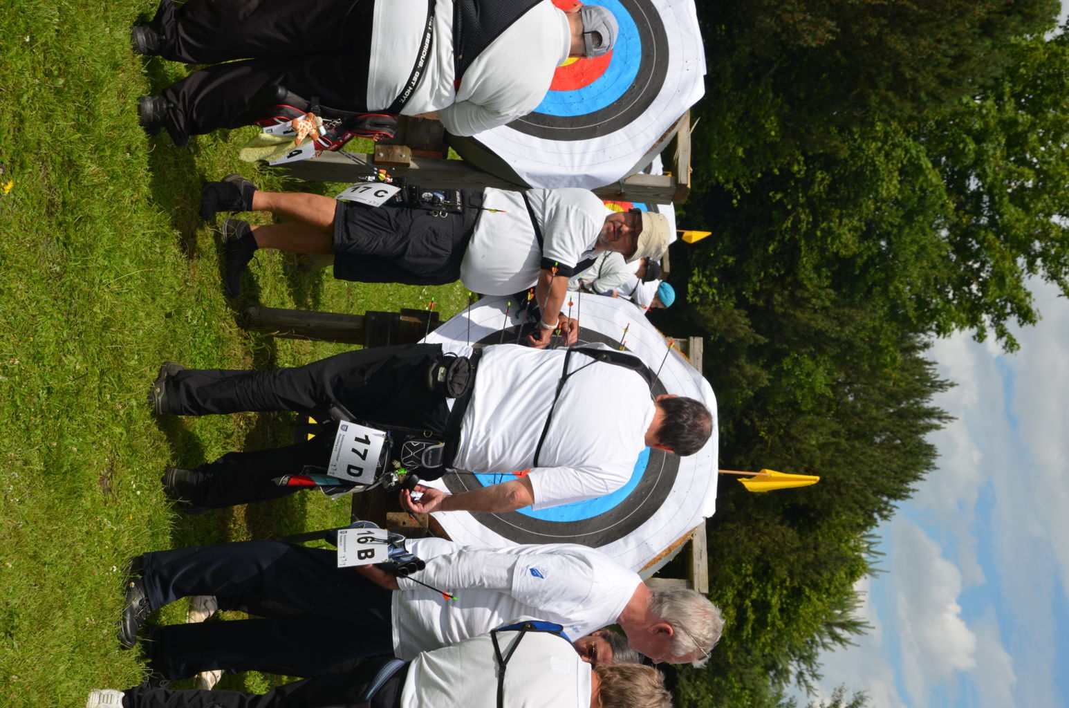 | Distanz 50 m - Scheiben 15 bis 22 dies ist die Distanz der Blankbogenschützen (Sabrina, Doreen, Cordula, Jan und Frank), der Recurve- Senioren (Ingo) und eine Kreisklasse 50m (Jayden) |