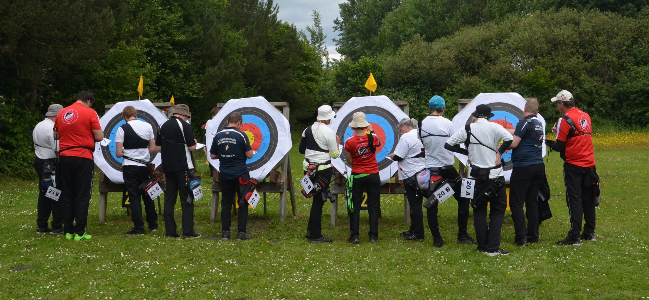 | Distanz 60 m - Scheiben 20 bis 23 auf dieser Distanz schießen die Recurve-Master (Olaf, Josef, Ute und Birgit) und Recurve-Jugend (Wibe und Vlad) |